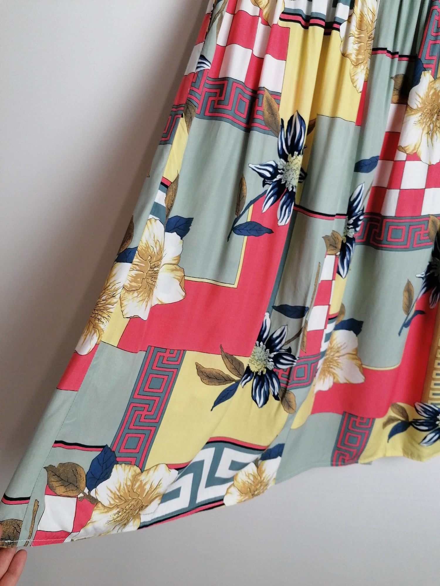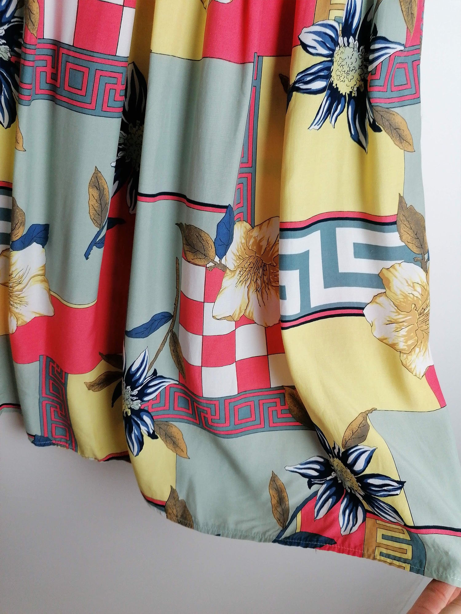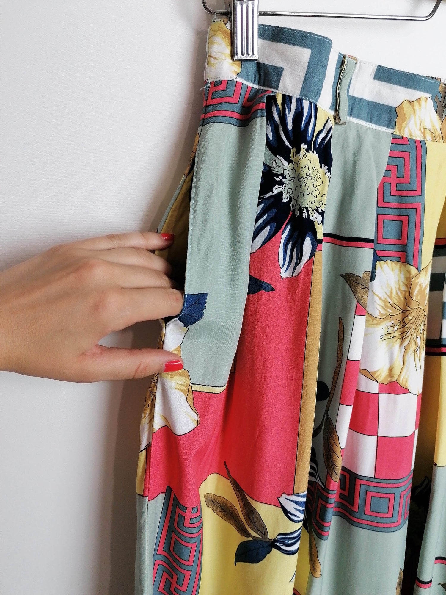 Gorgeous vintage 80's 90's scarf print skirt, light viscose, side pockets, partially elastic waist.