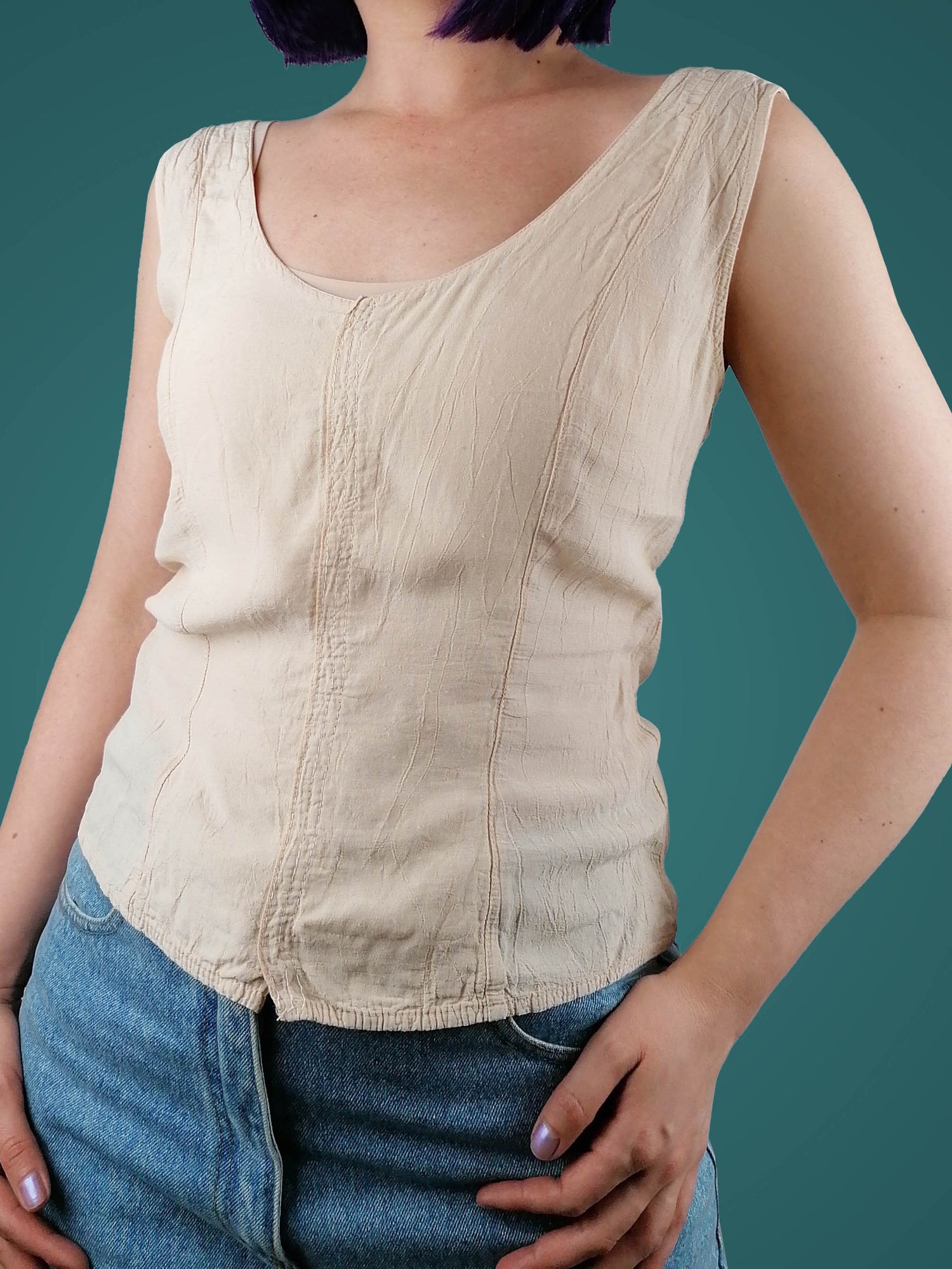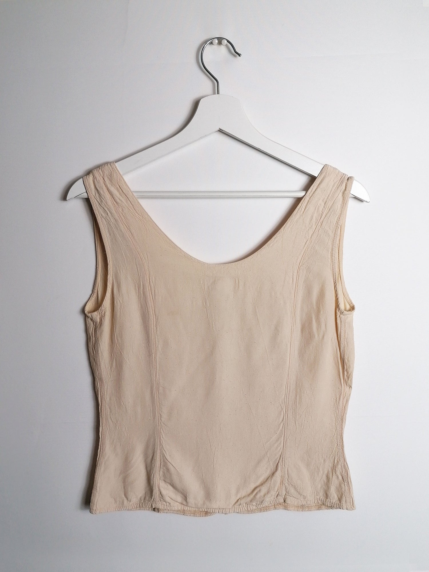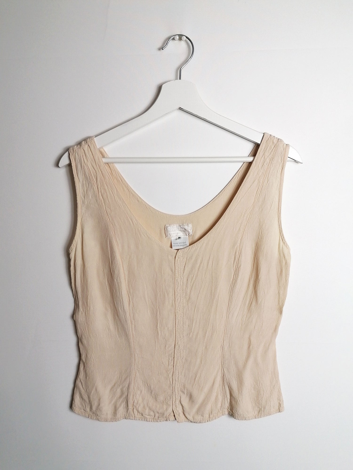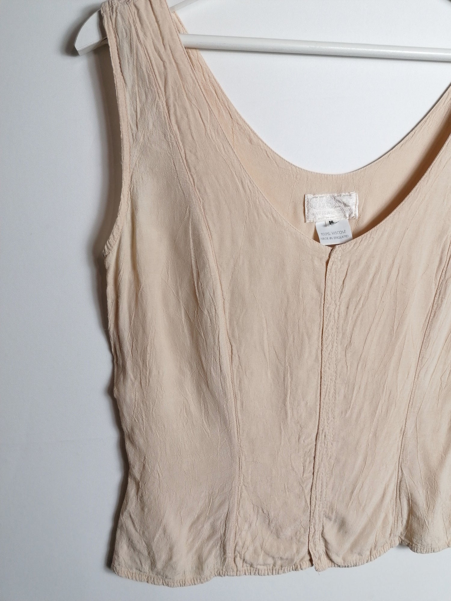 Vintage Ghost by Andrea Sargeant viscose summer top, light and flowy, peachy beige. Made in England.