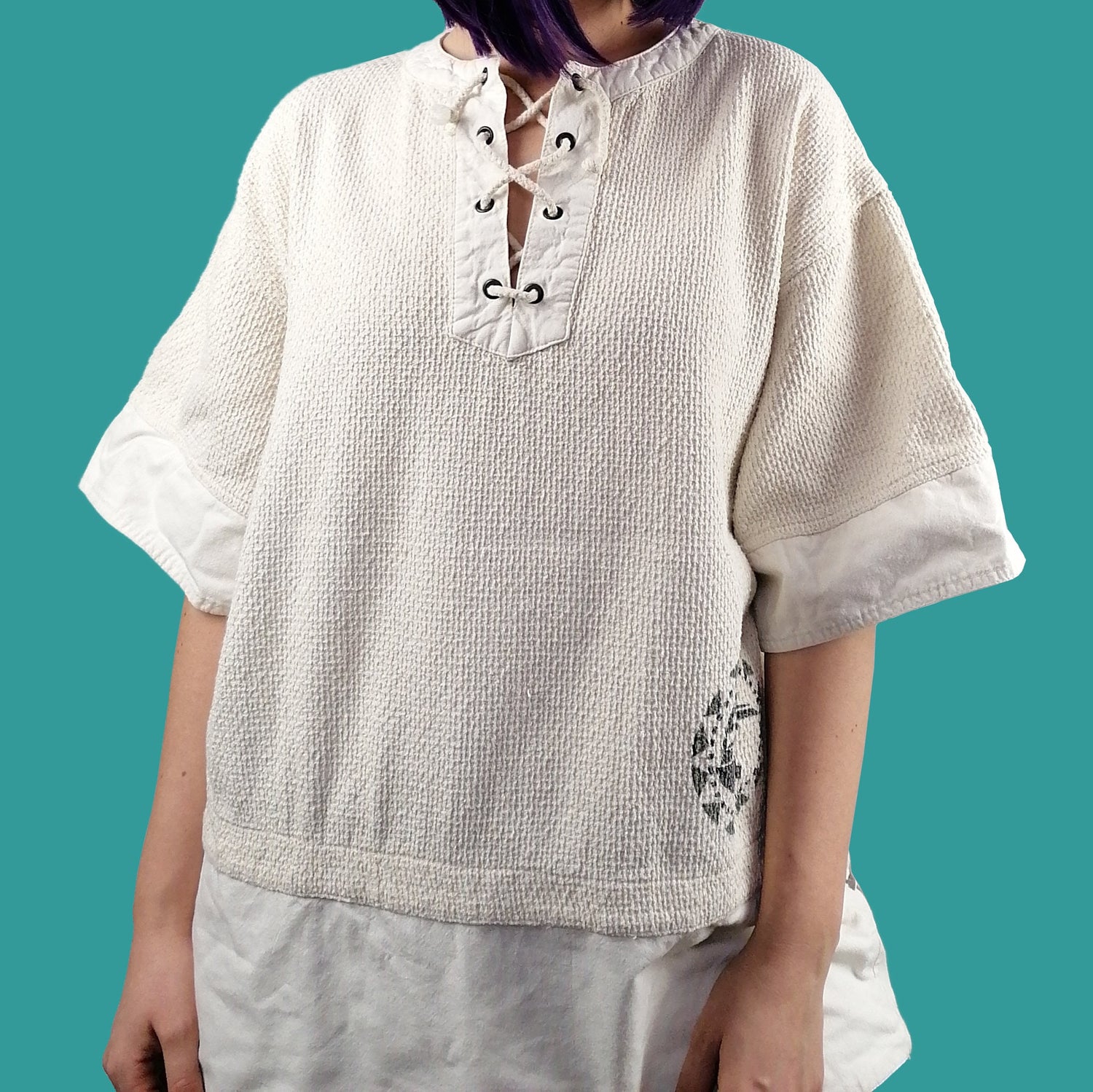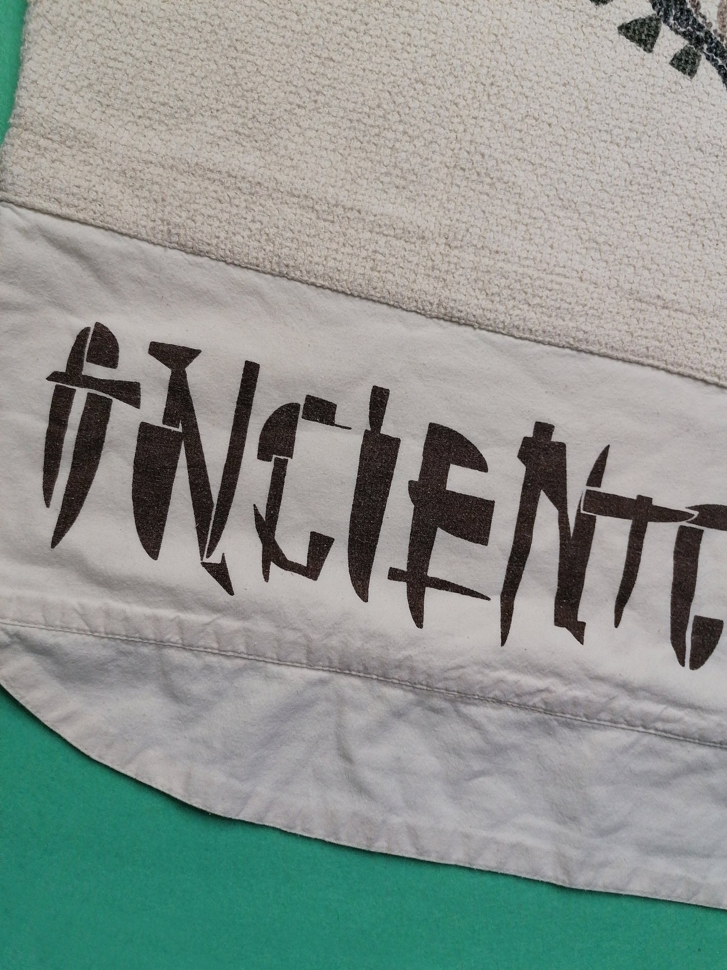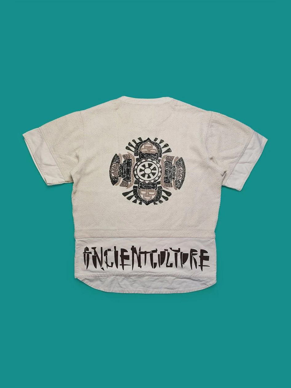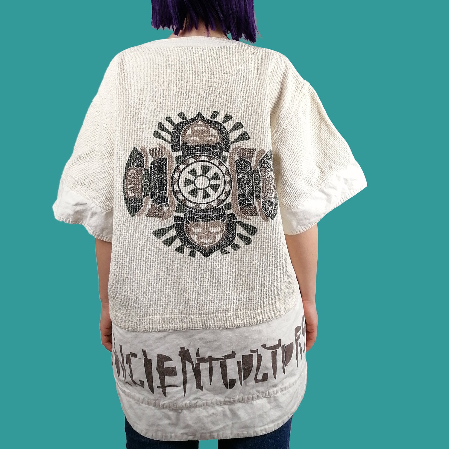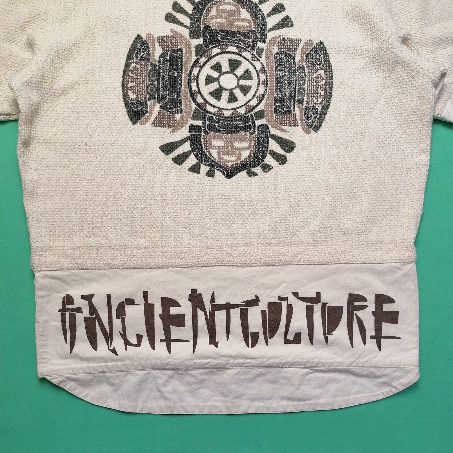 Gorgeous 90's Gin Tonic oversized unisex t-shirt, large print on back, "Ancient Culture" spellout, textured cotton with brown speckles throughout.