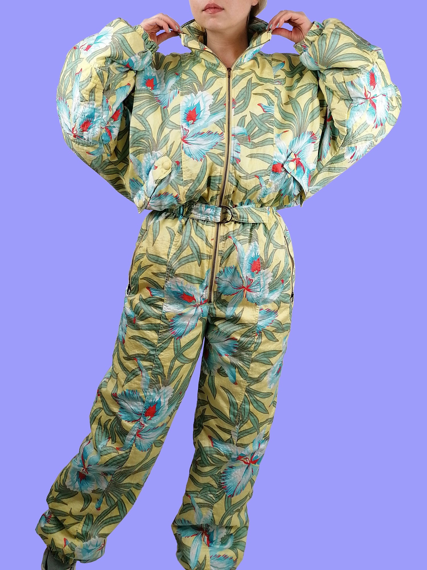 90's Ski Suit Crazy Print Tropical Flowers - size S-M