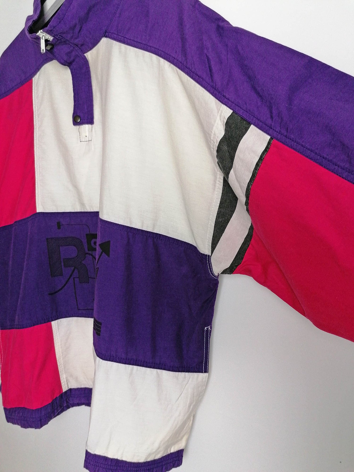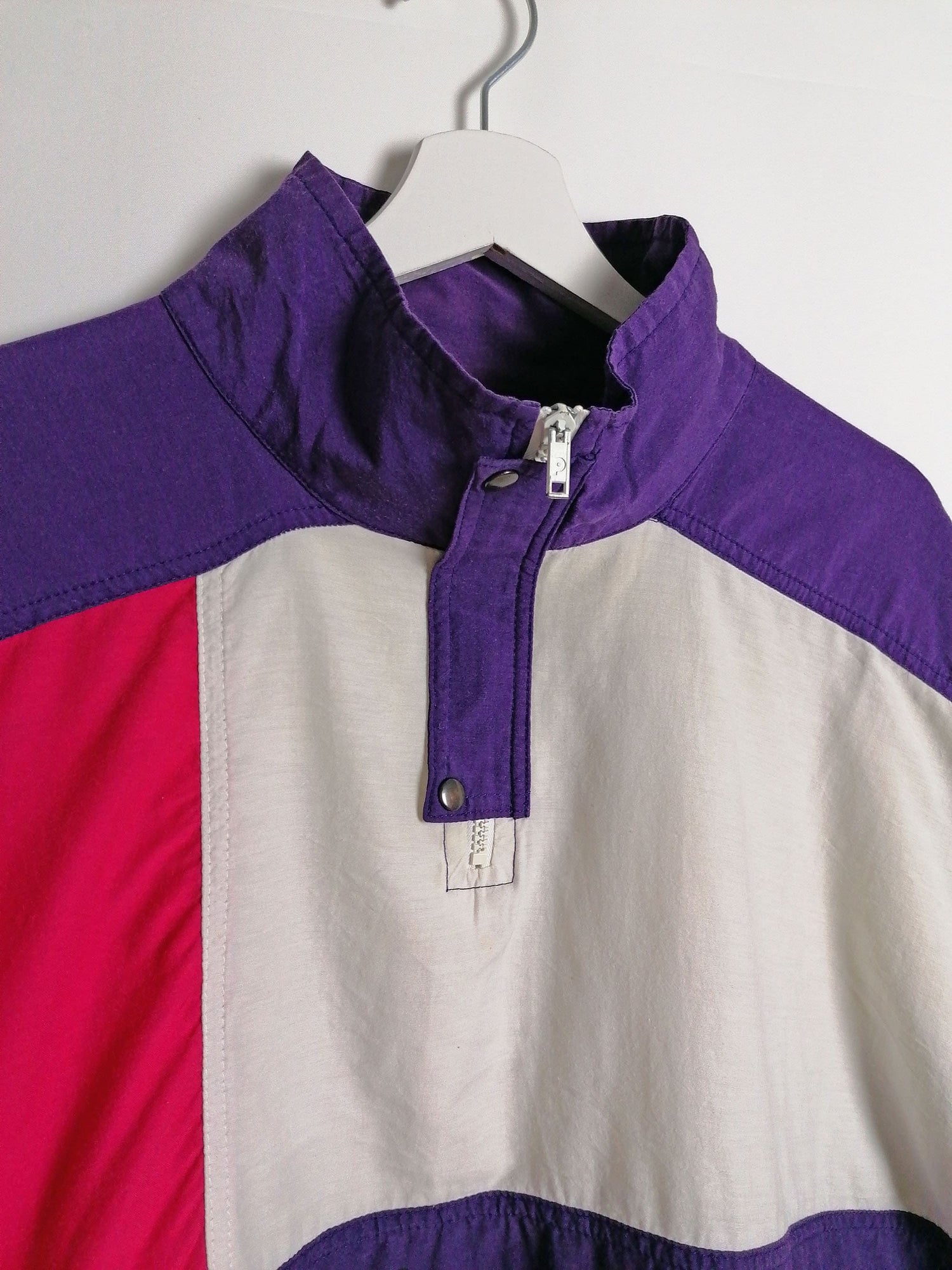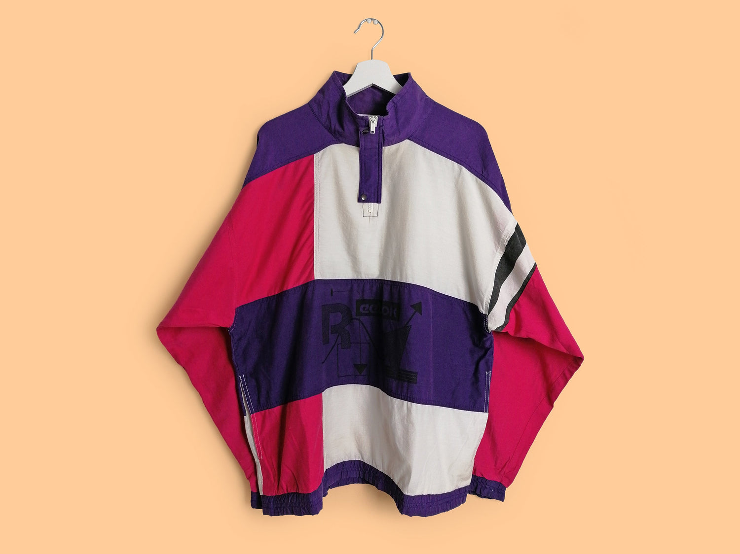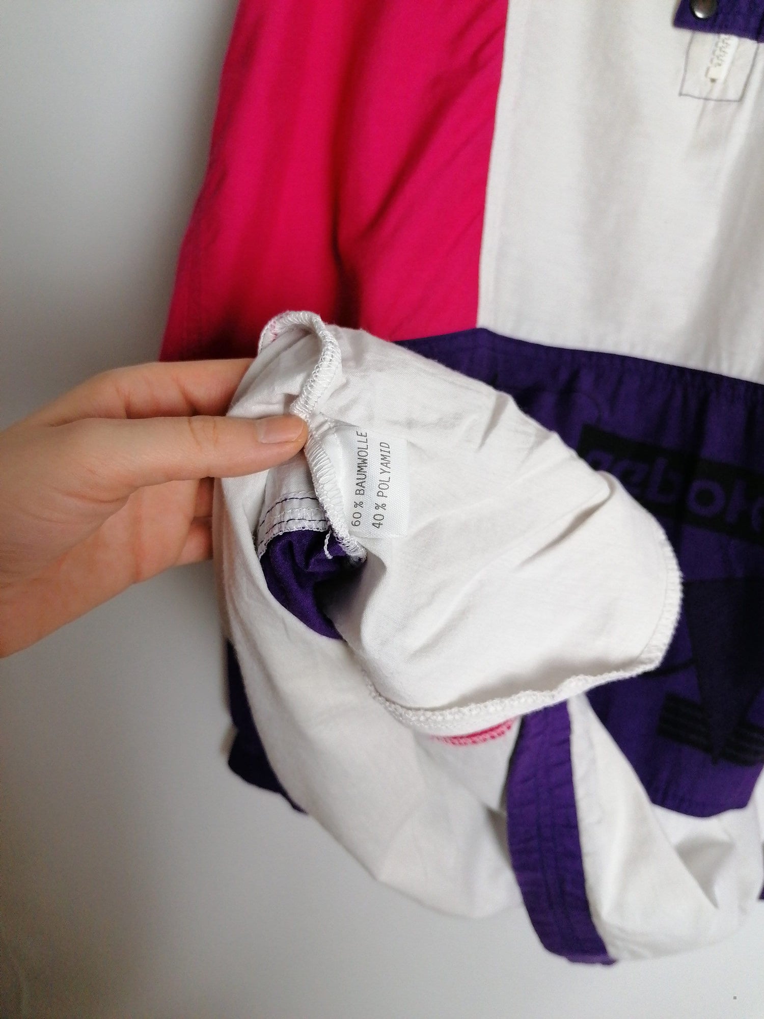 Gorgeous rare vintage 80's REEBOK long sleeve top, cotton, paper-thin, slightly sheer. Side pockets, 1/4 zipper, retro graphic logo on front.