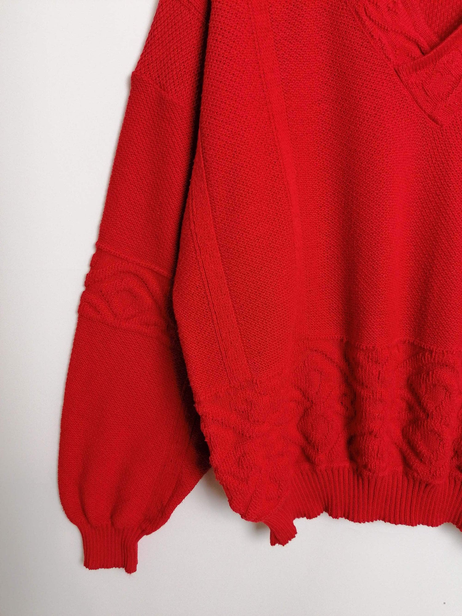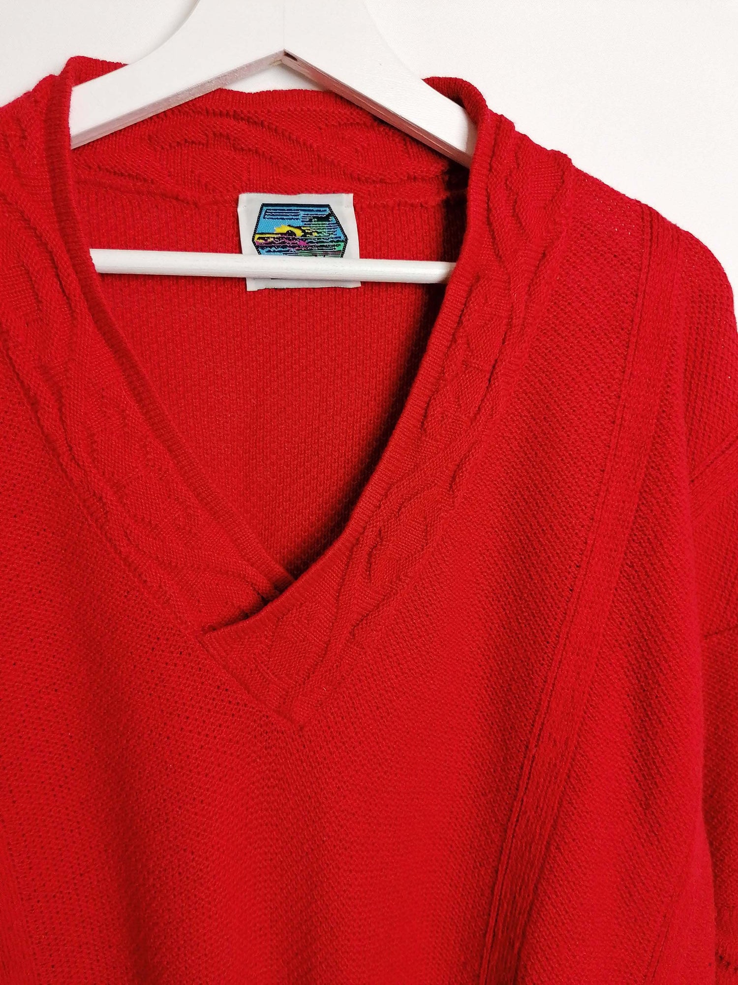 80's Retro V-neck Sweater Red
