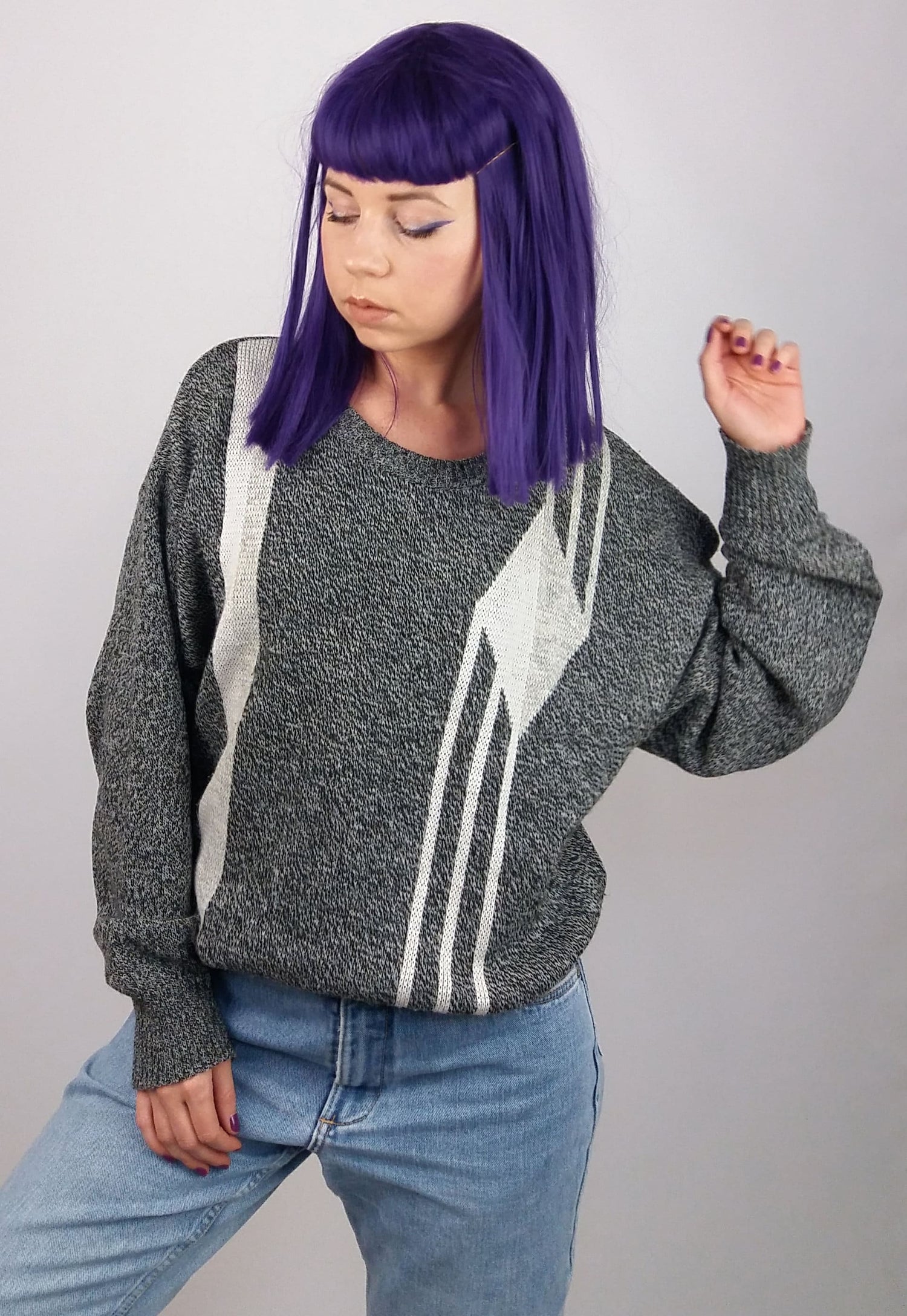 Vintage 80's unisex knit sweater. Warm and comfortable wool blend.