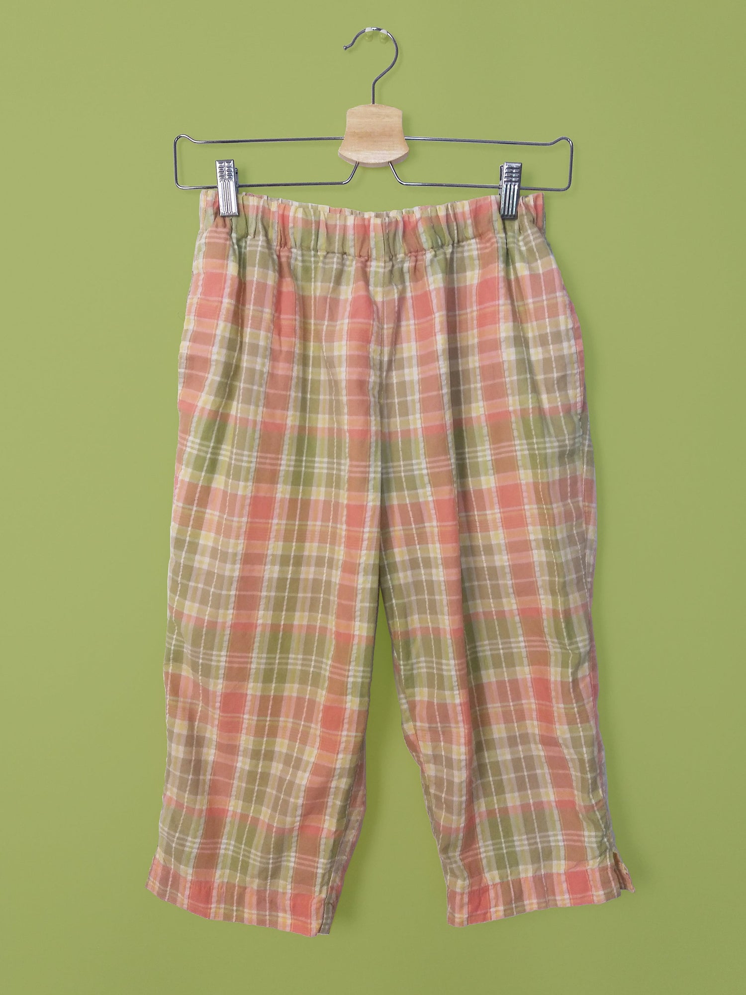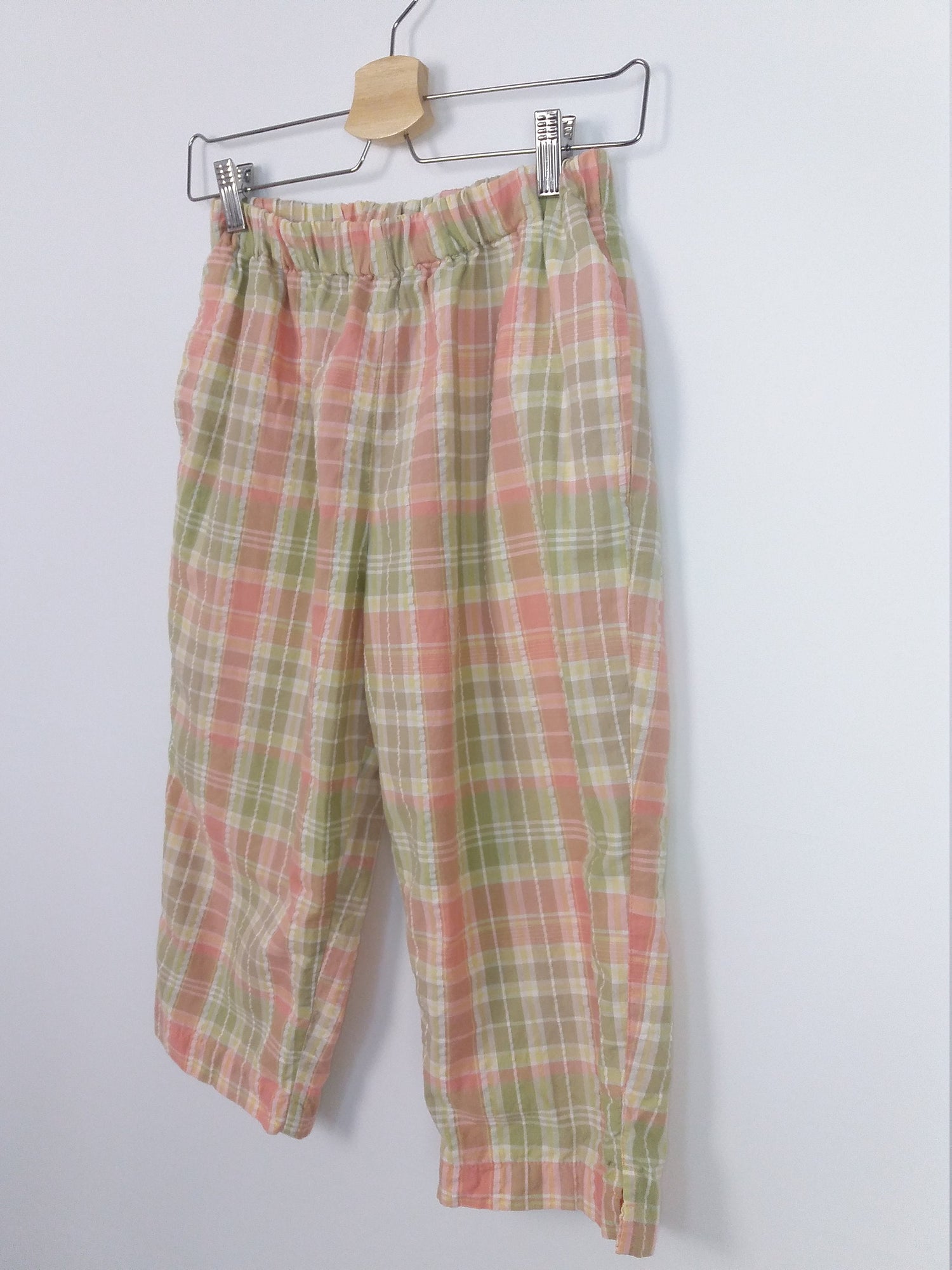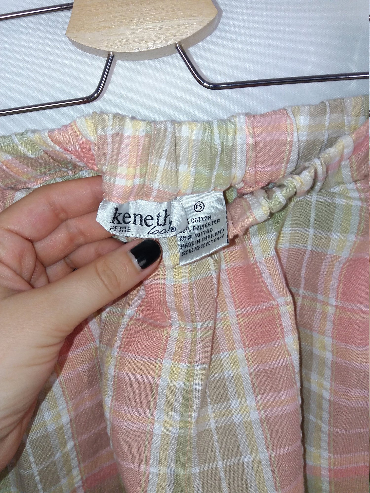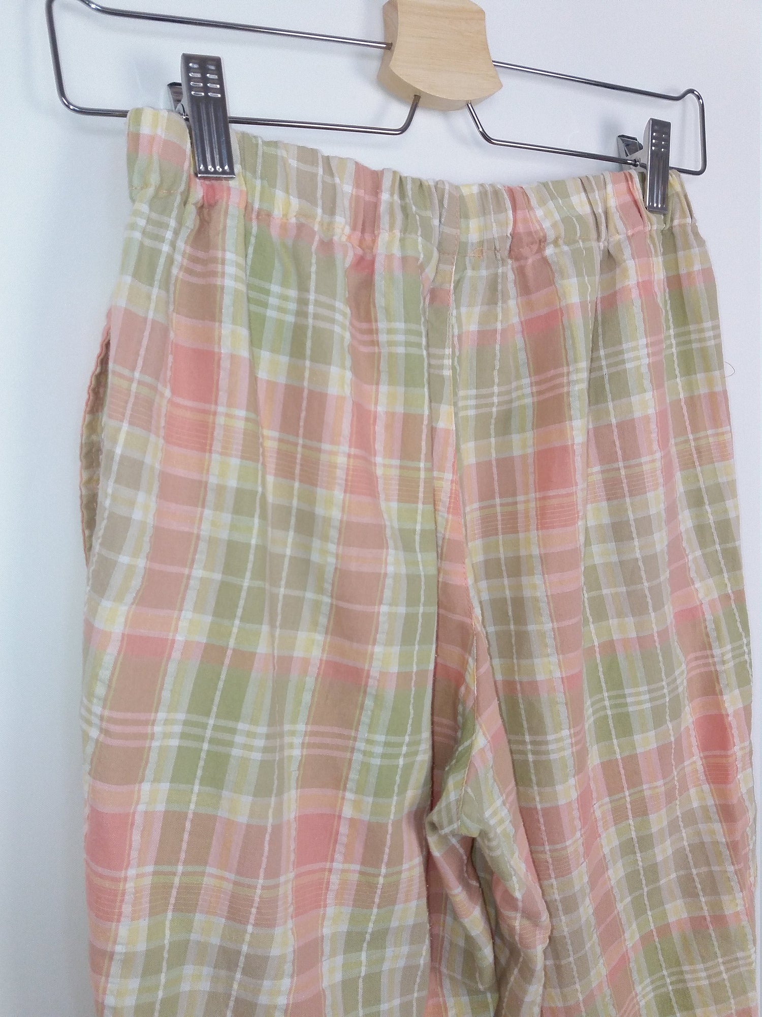 Gorgeous 80's 90's plaid patter capris, elastic waist, side pockets.