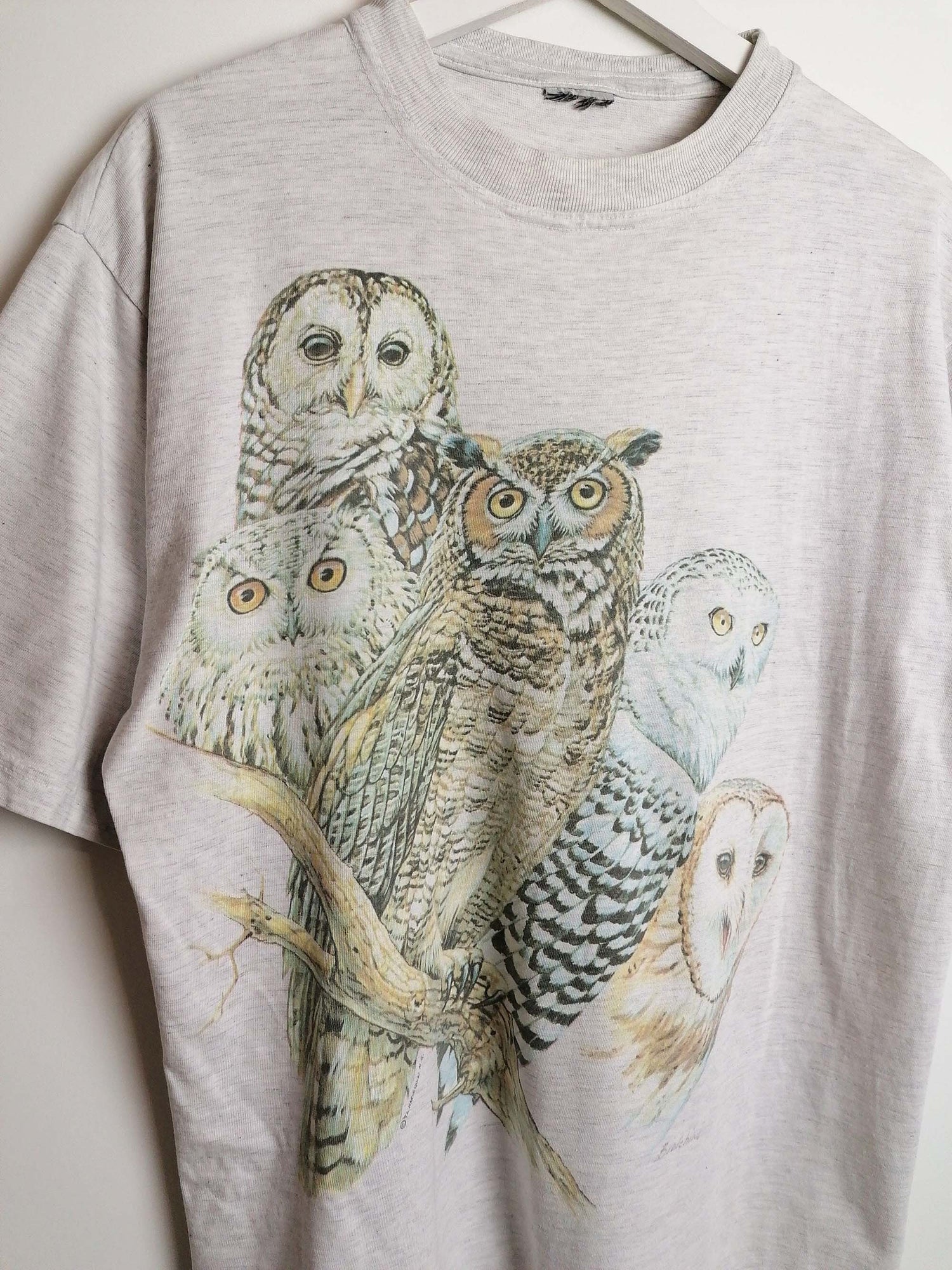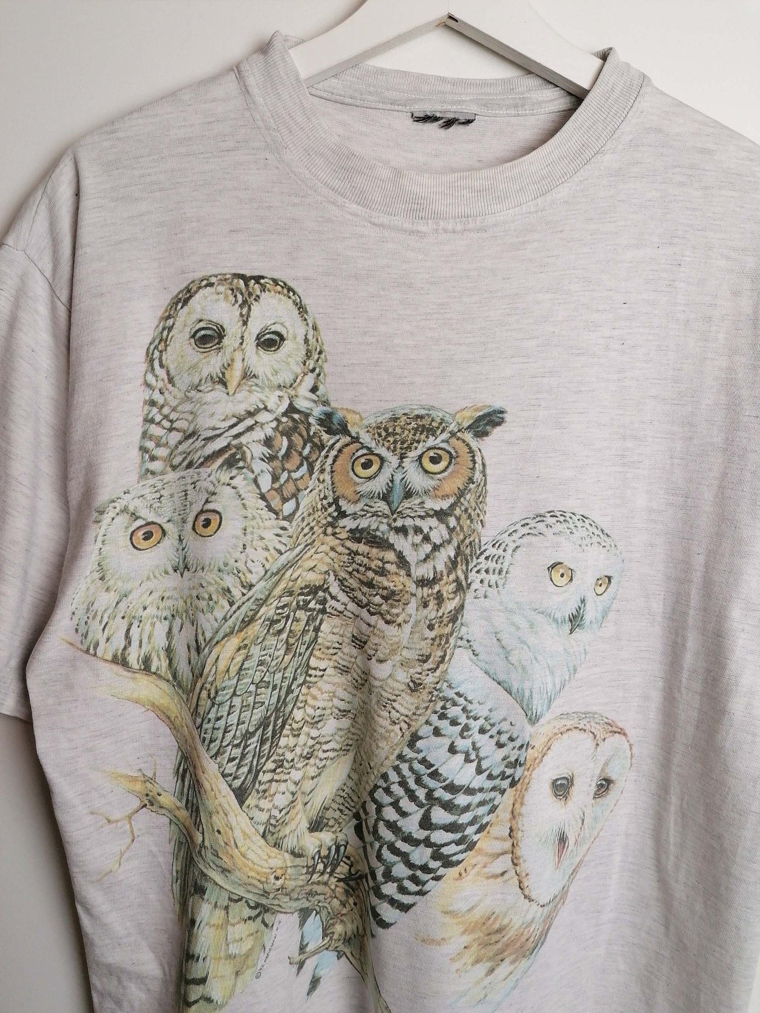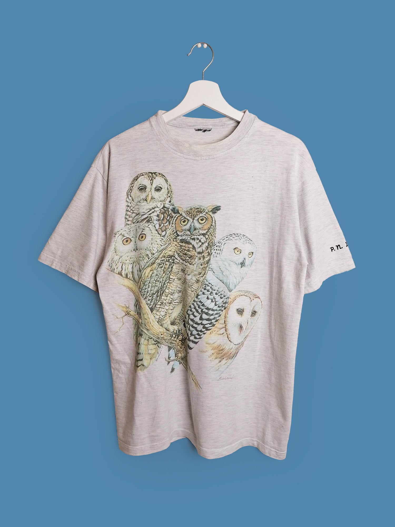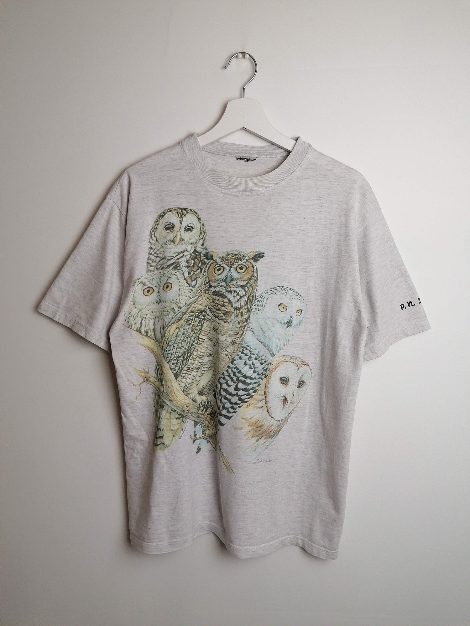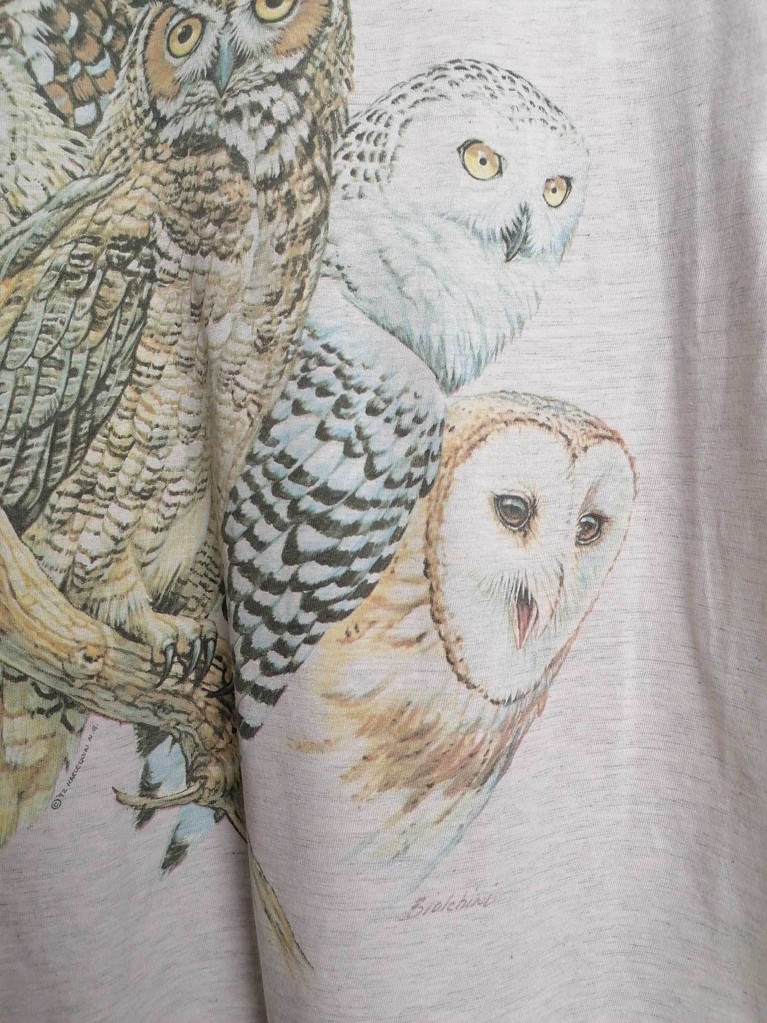 Vintage 90's BIOLCHINI Owls Print T-shirt - size M-L