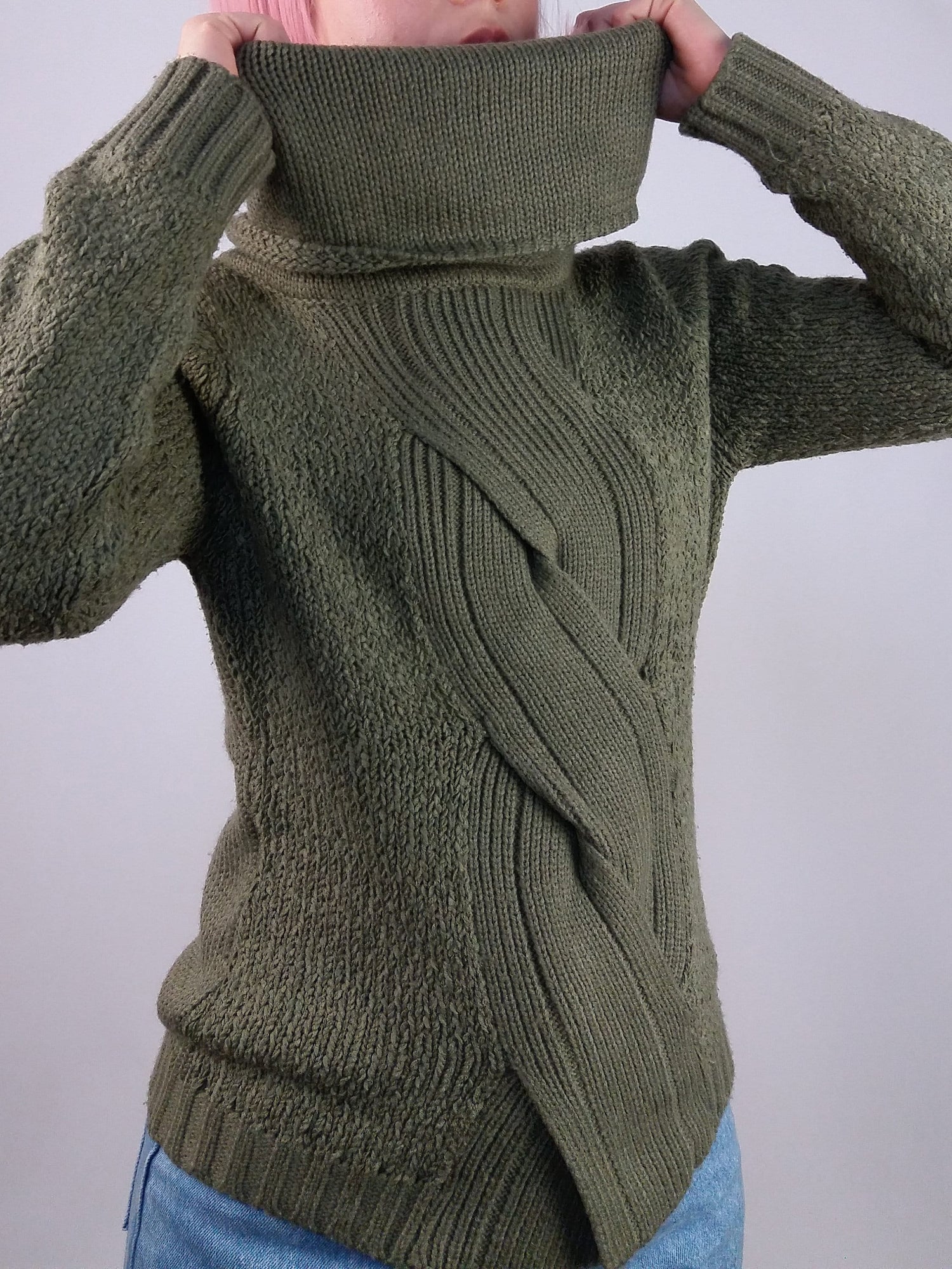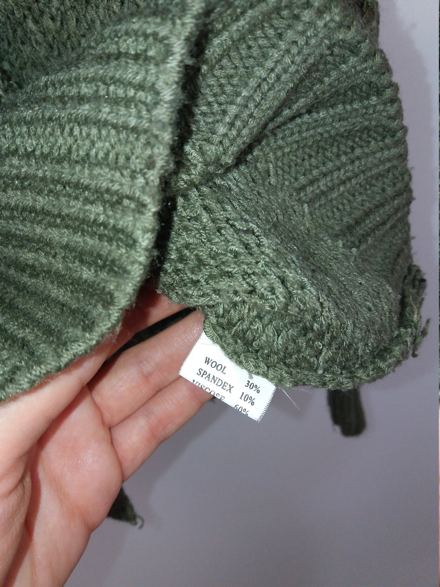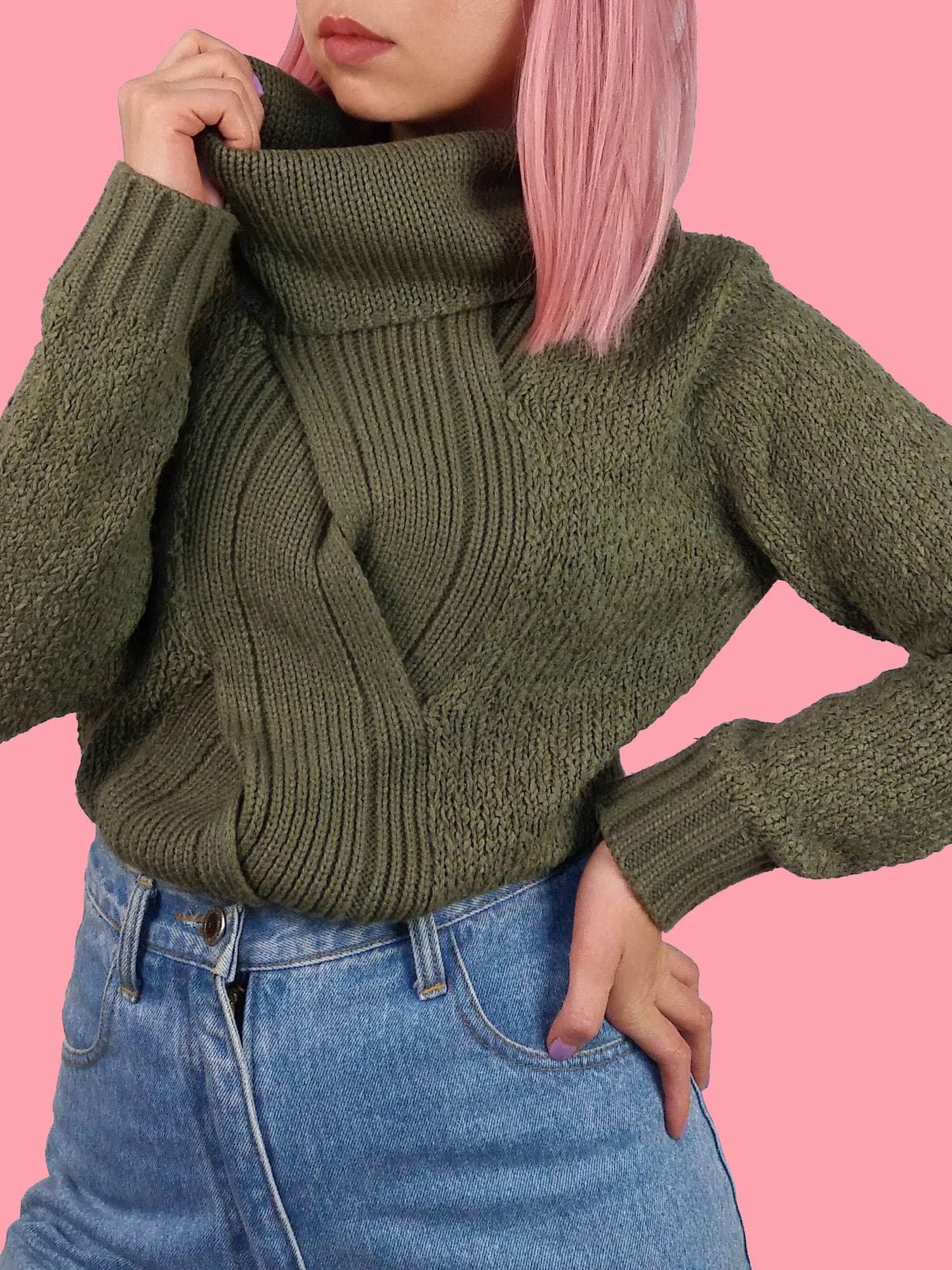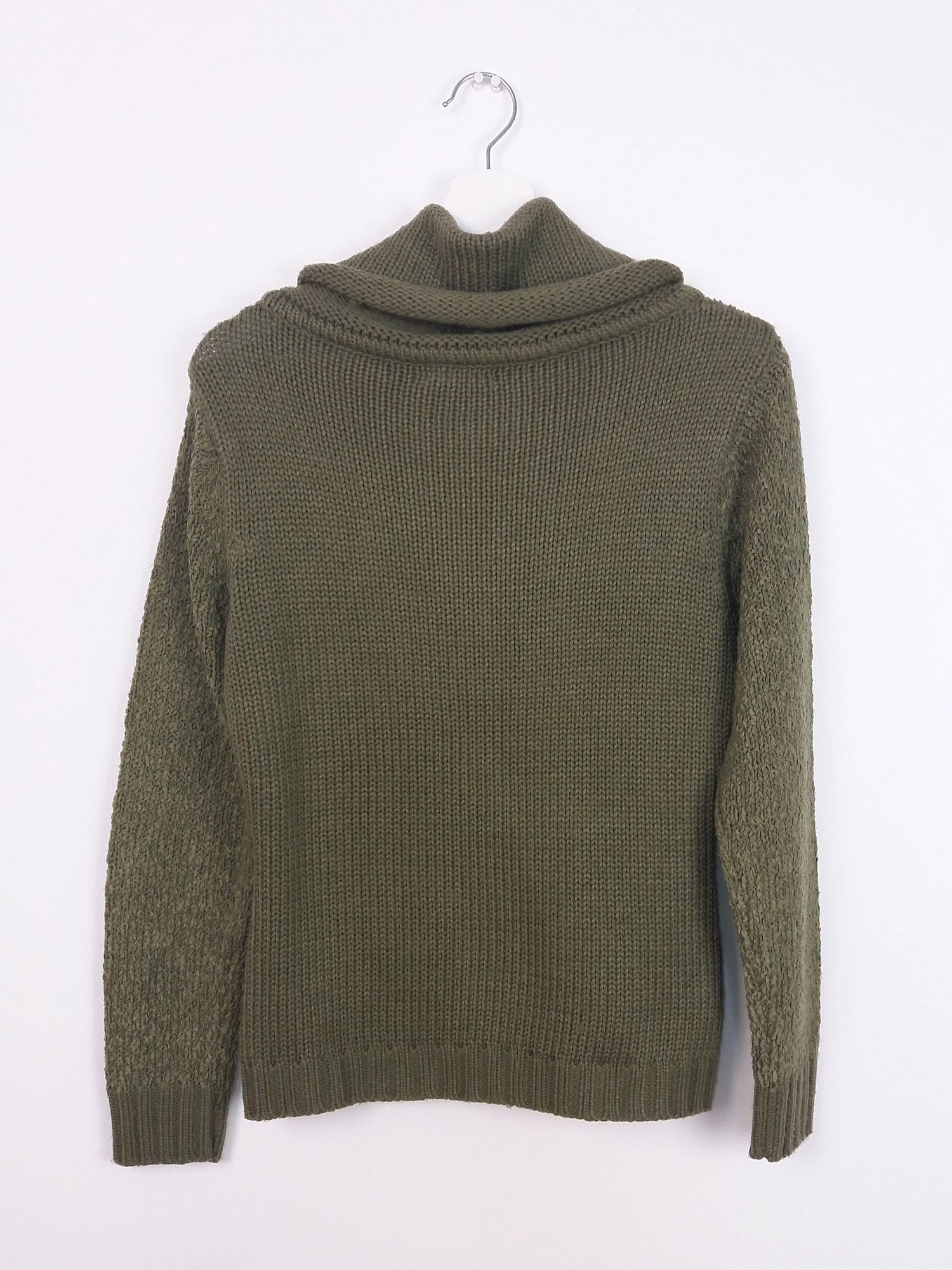 Cable Knit Large Cowl Neck Sweater Olive Green ~ size S-M