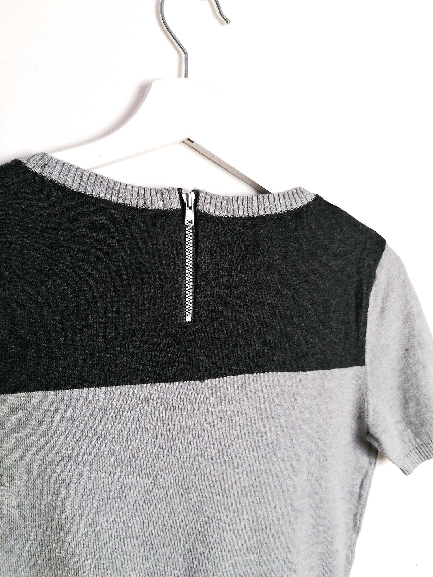 Gorgeous vintage 90's Campus cotton knit crop top, round collar, quarter zip on the back. Super soft fabric, lots of stretch.