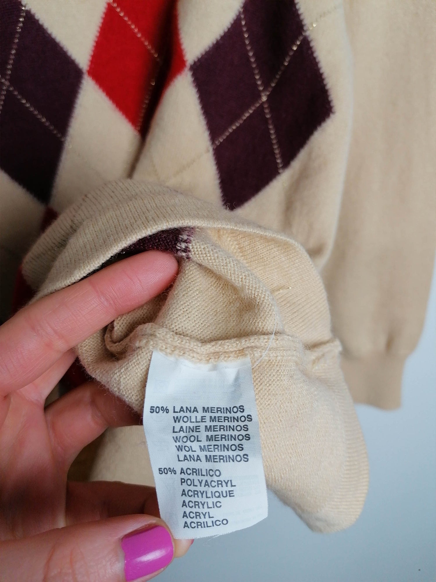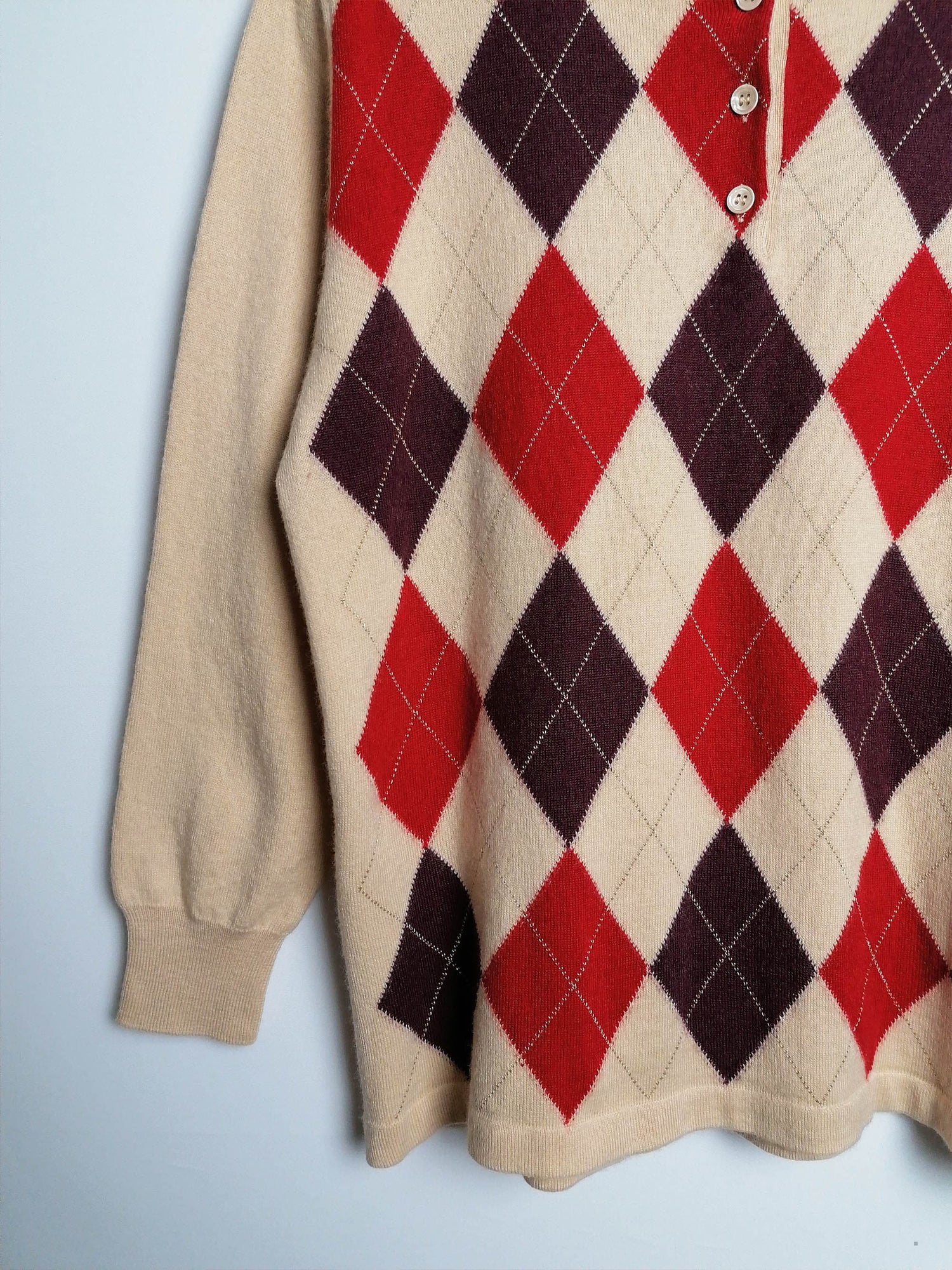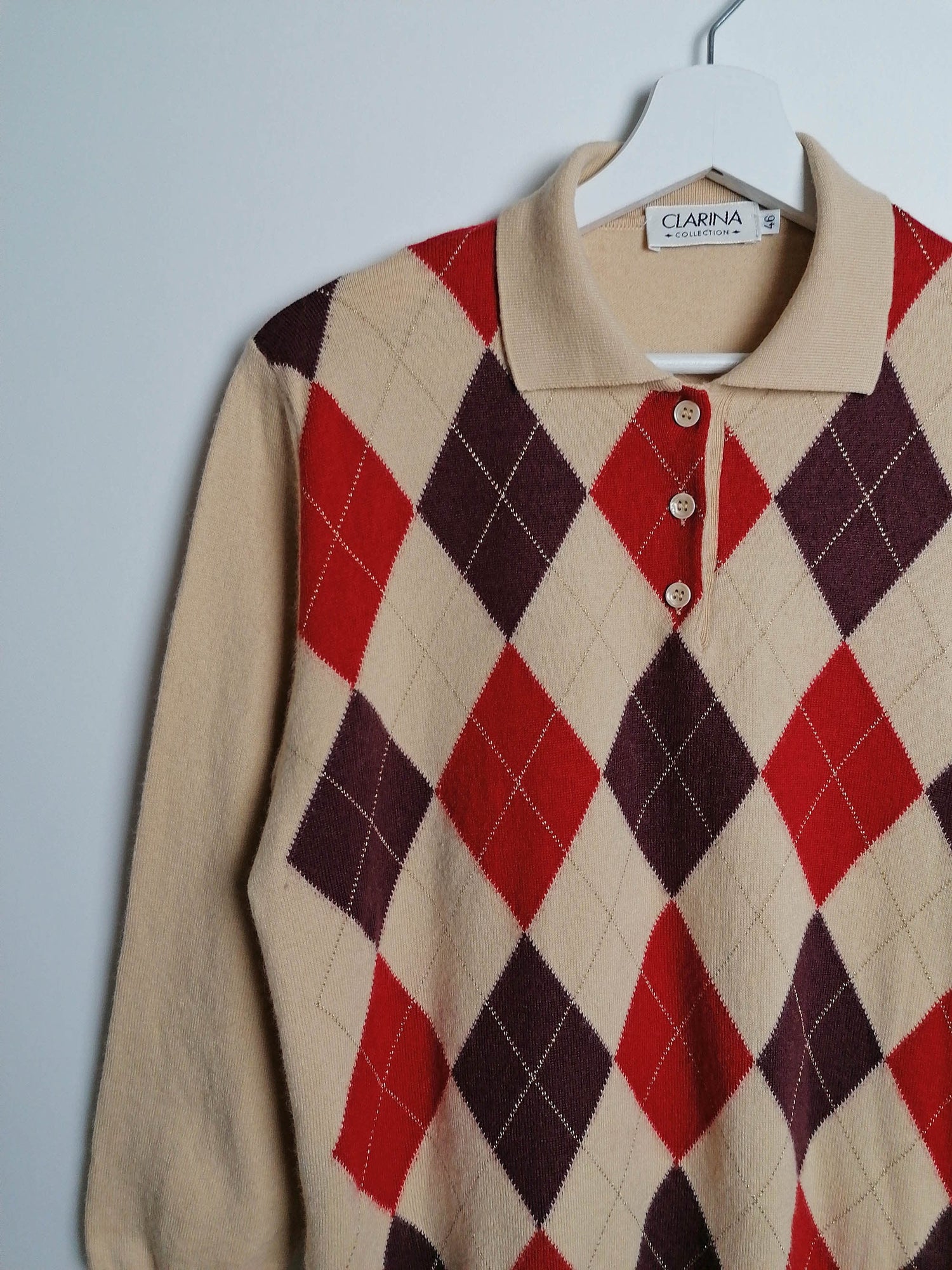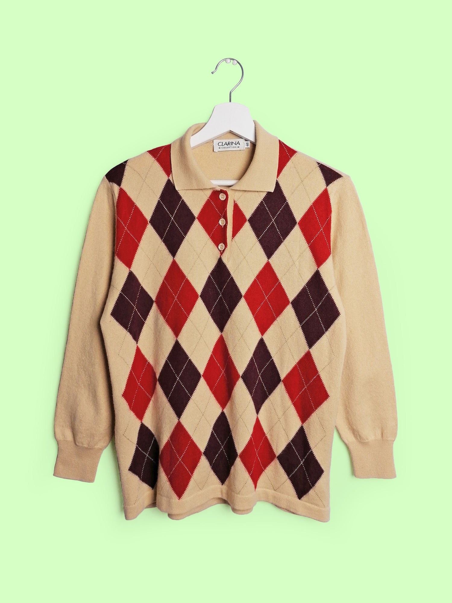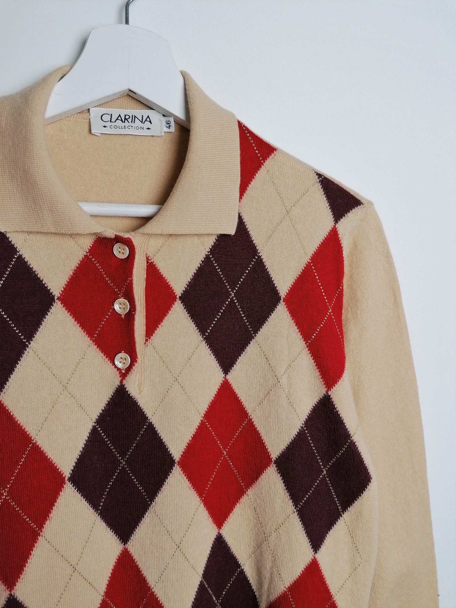CLARINA Merino Wool Blend Argyle Pattern Sweater - size M-L / 46