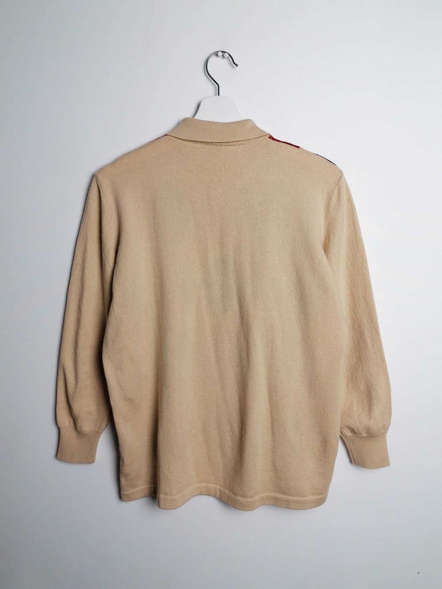 Gorgeous vintage 90's collared women's sweater, 3/4 sleeves, merino wool and acrylic. Brand Clarina.