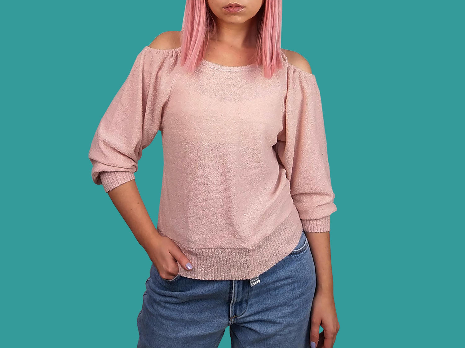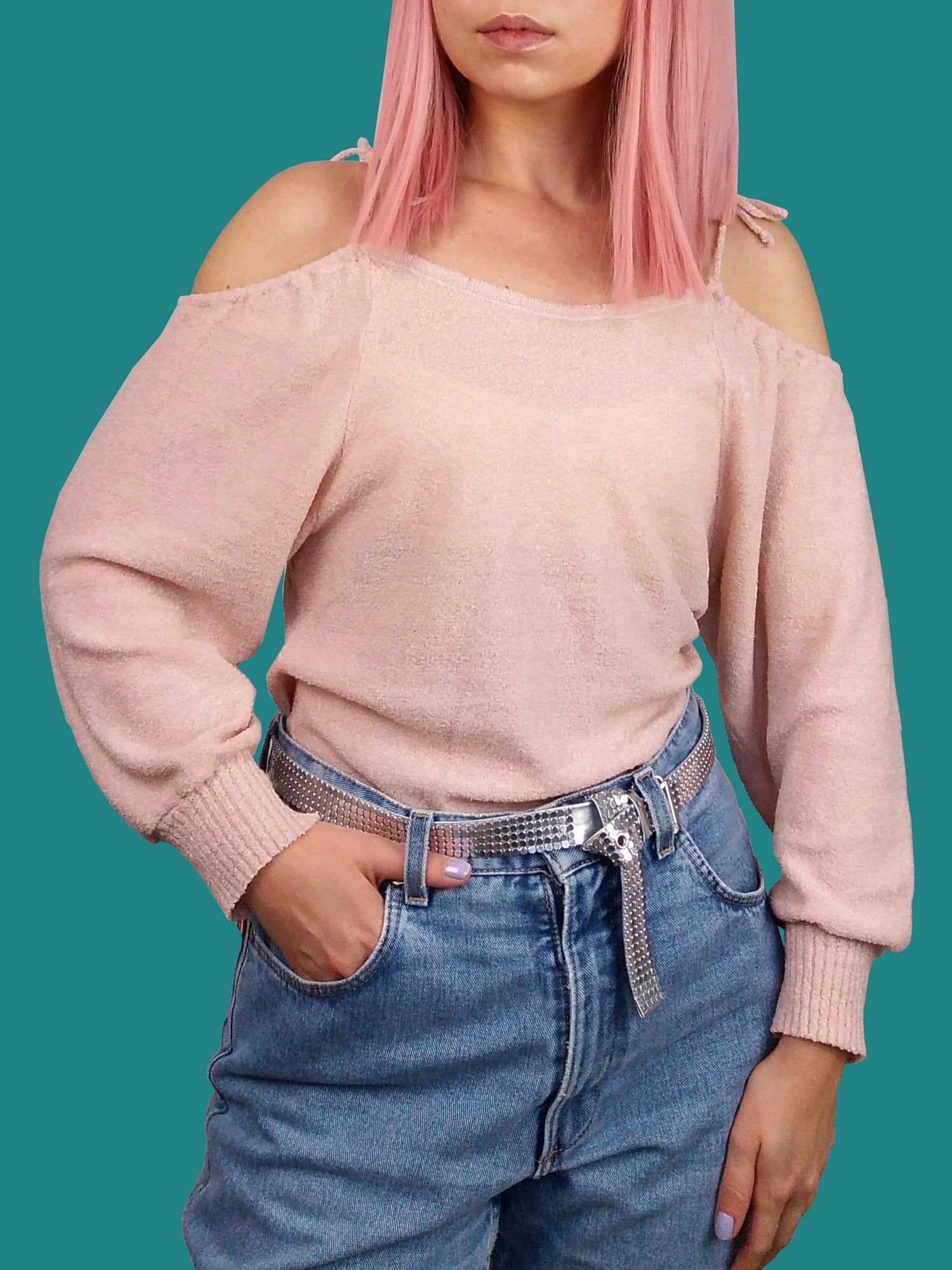 Beautiful soft fabric drop shoulders top, faded blush rose colour.