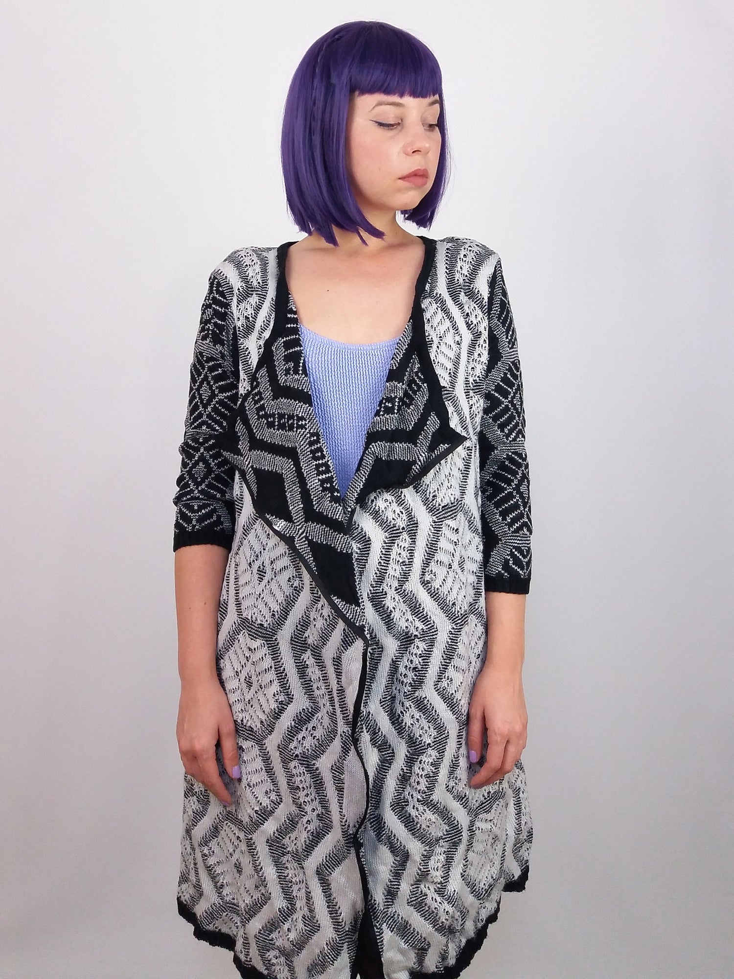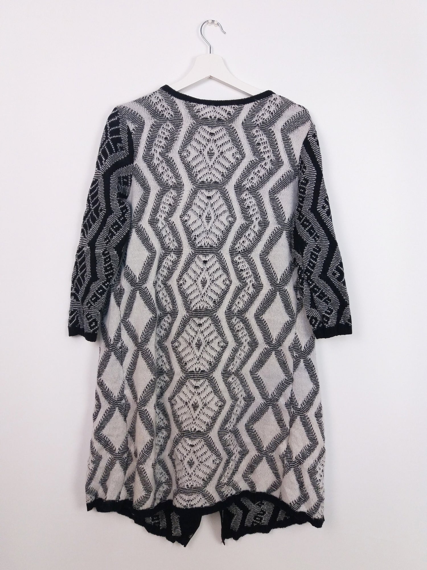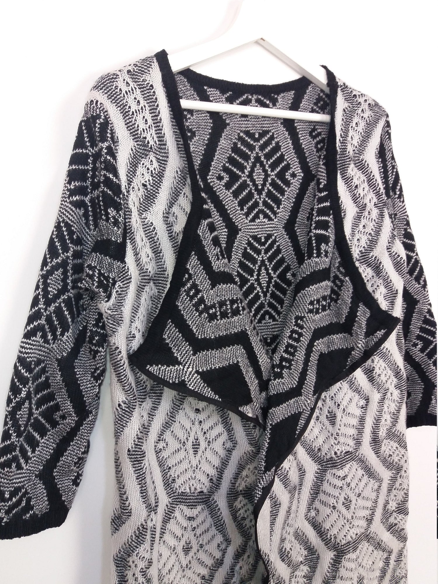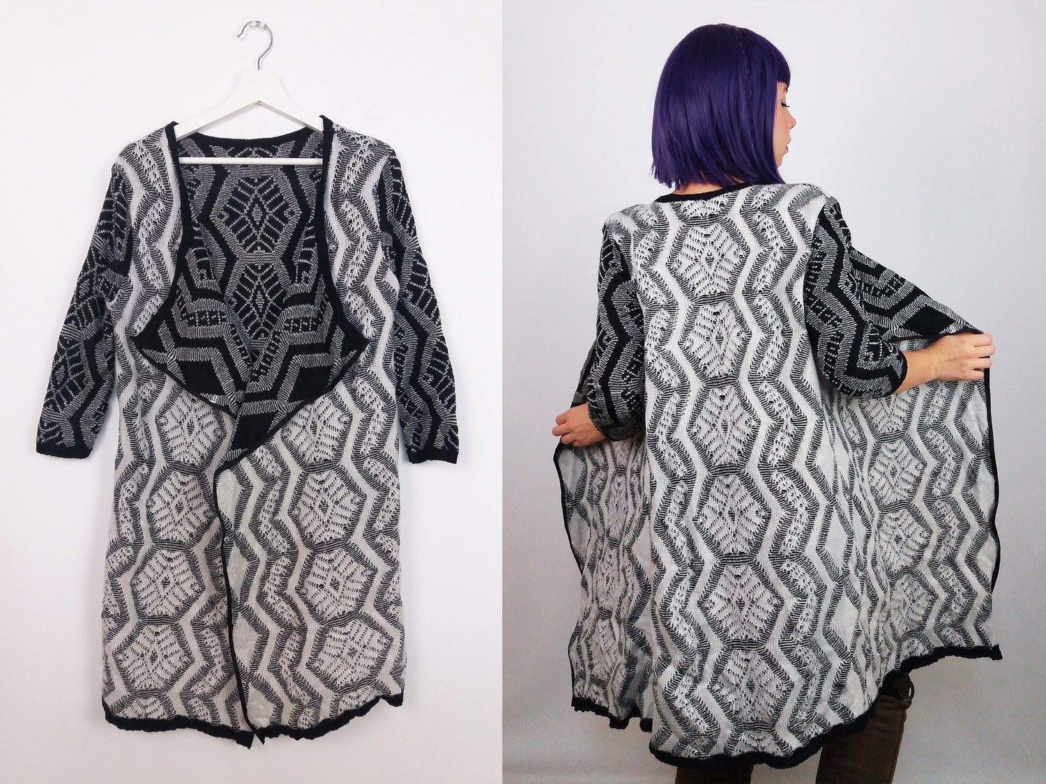 Gorgeous vintage knit cardigan, black and white geometric pattern knit, super soft and comfortable.
