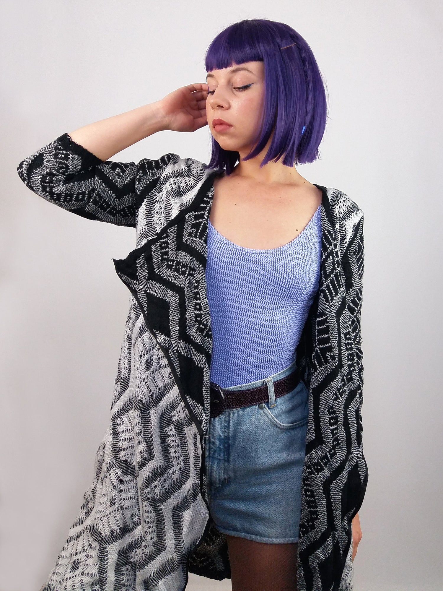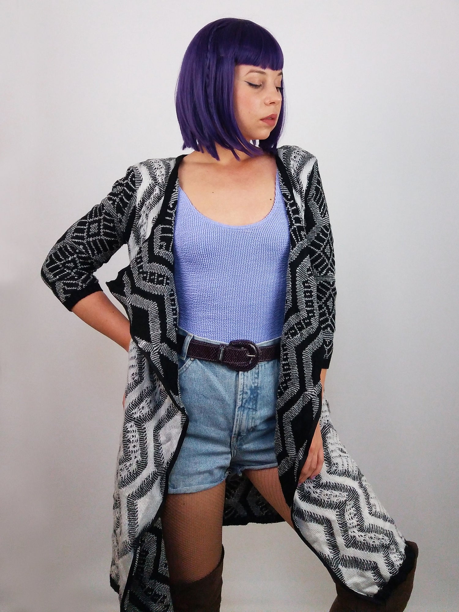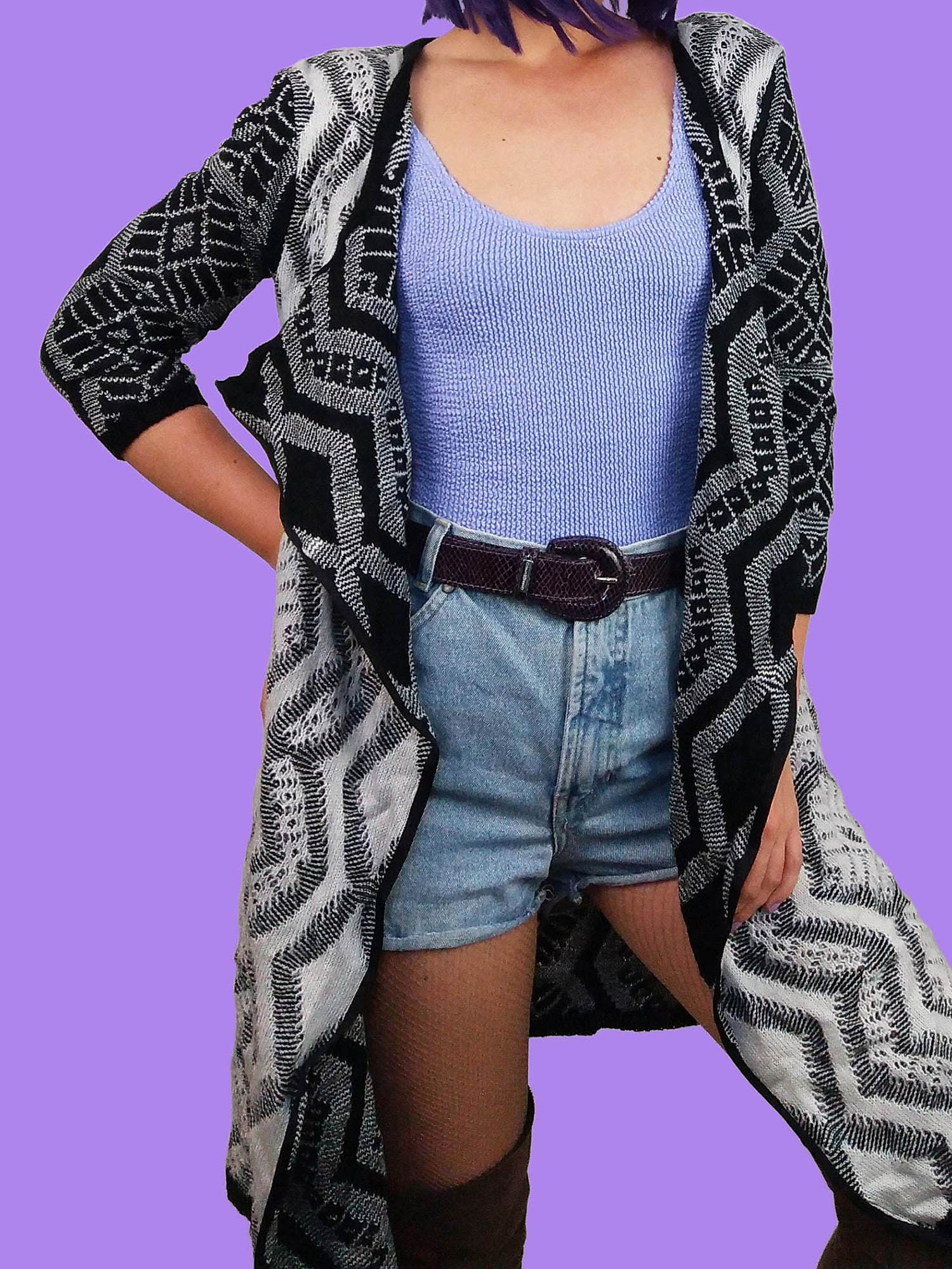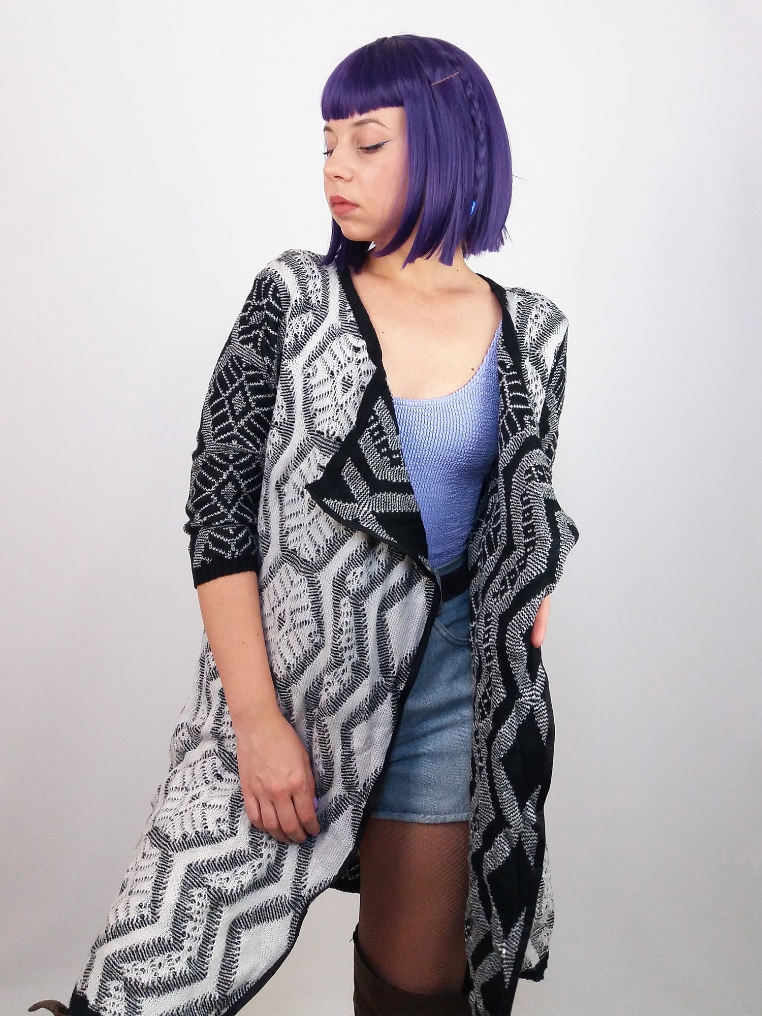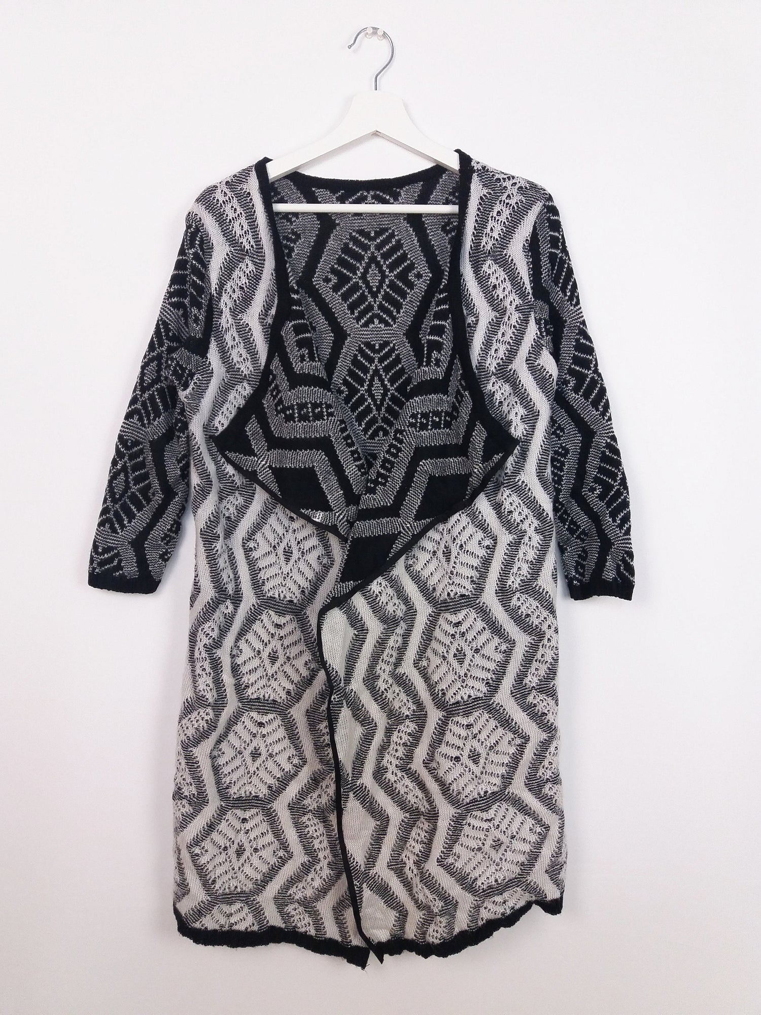 Gorgeous vintage knit cardigan, black and white geometric pattern knit, super soft and comfortable.