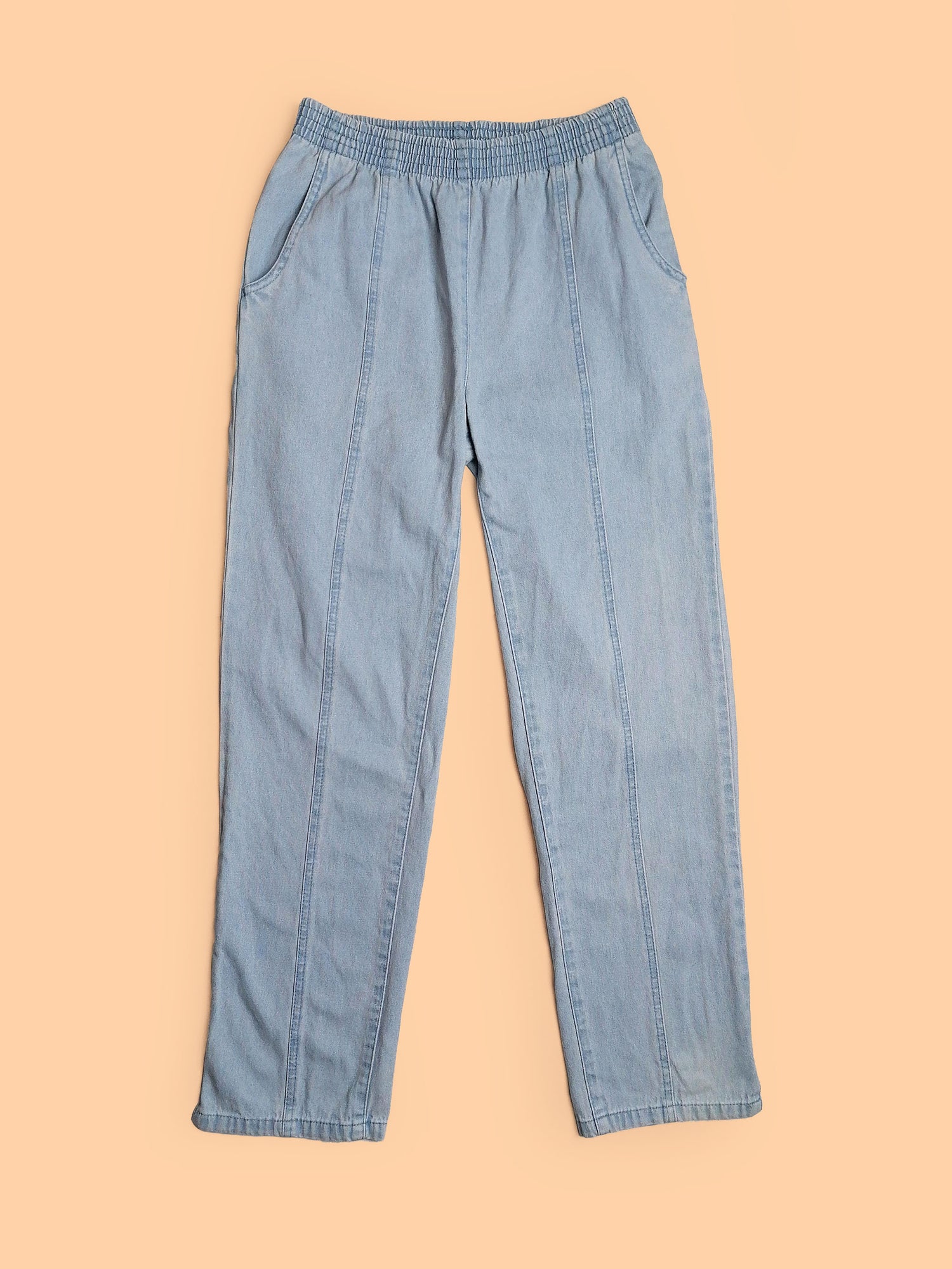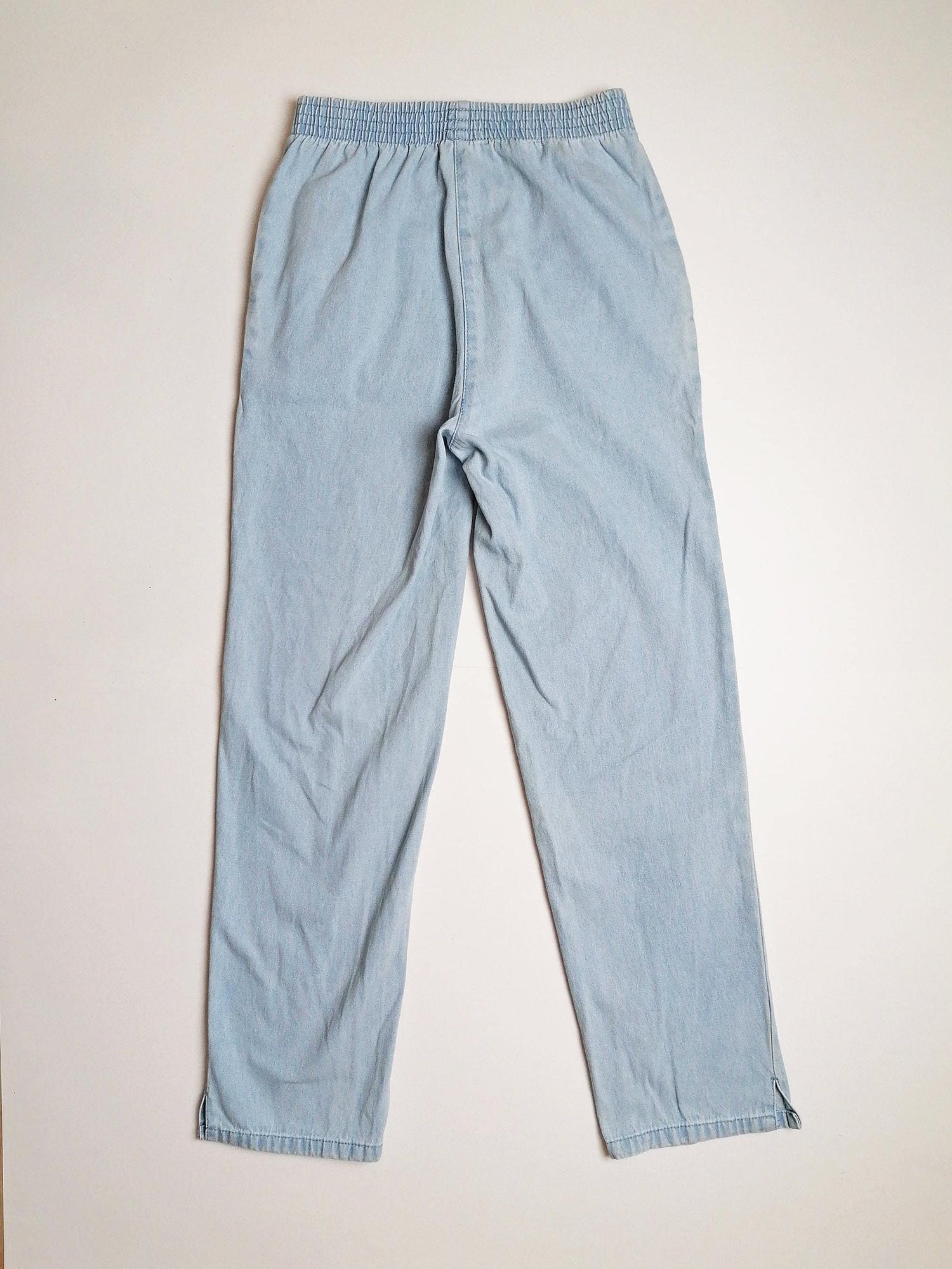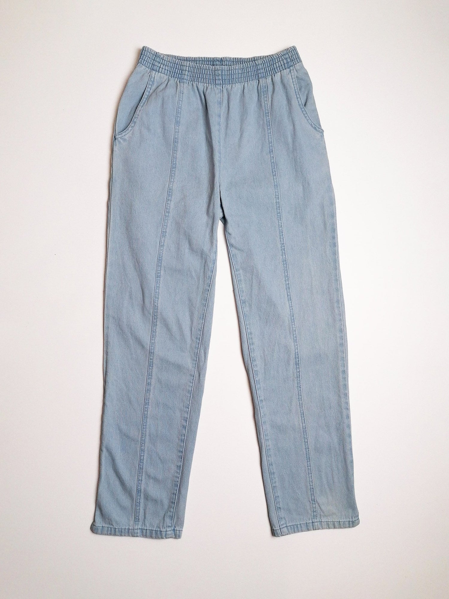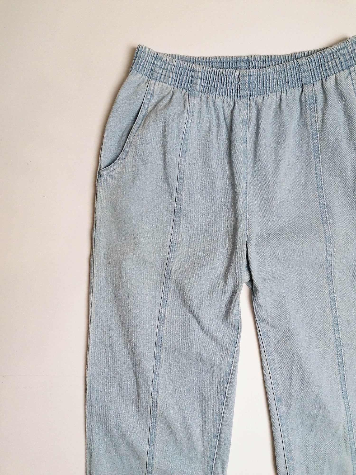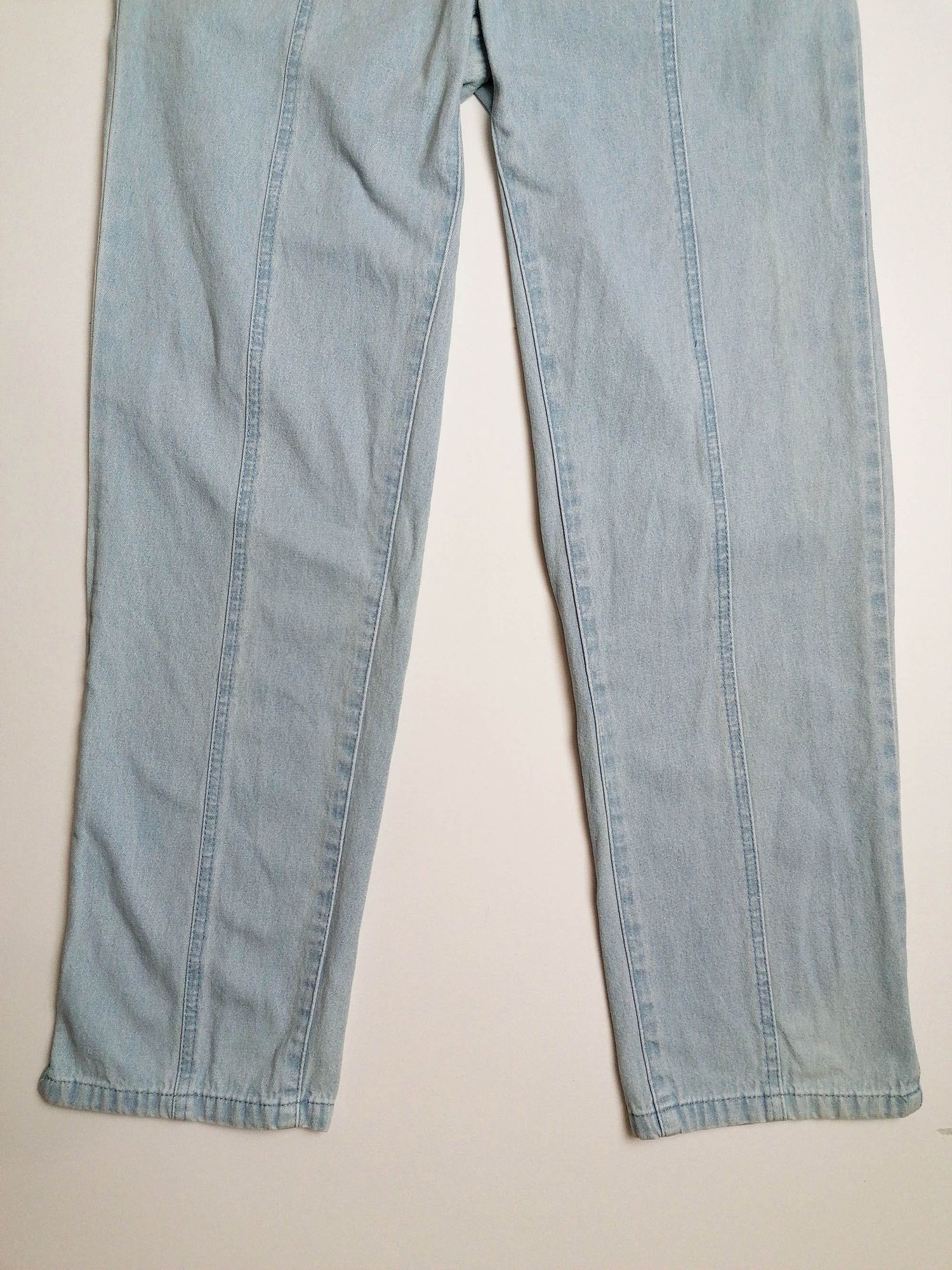 Vintage high waist mom jeans, tapered leg, light blue , slightly stretch denim.
