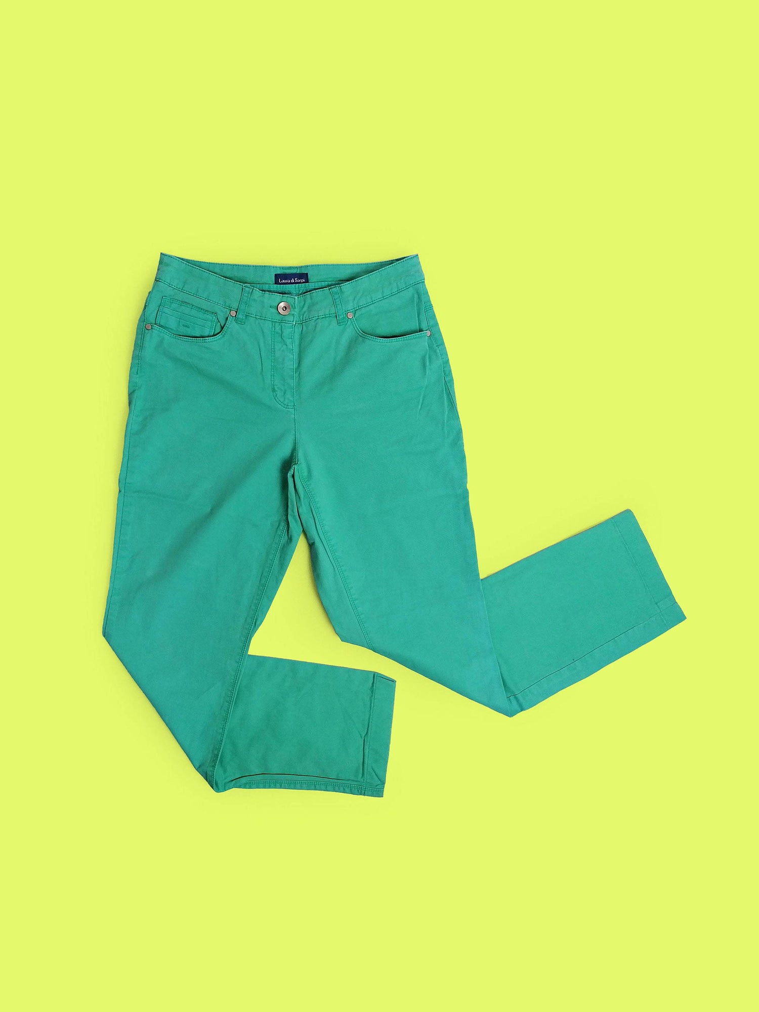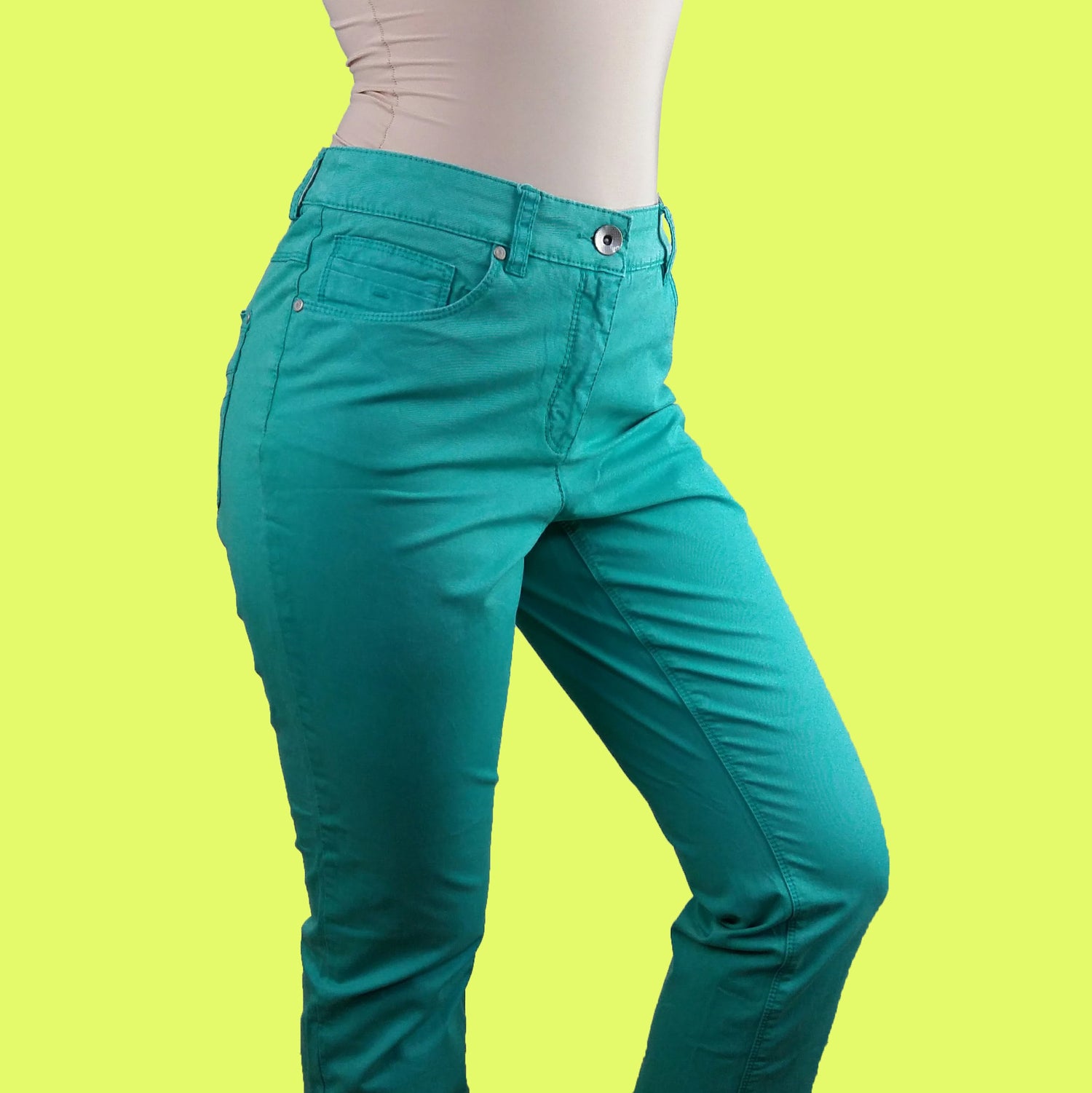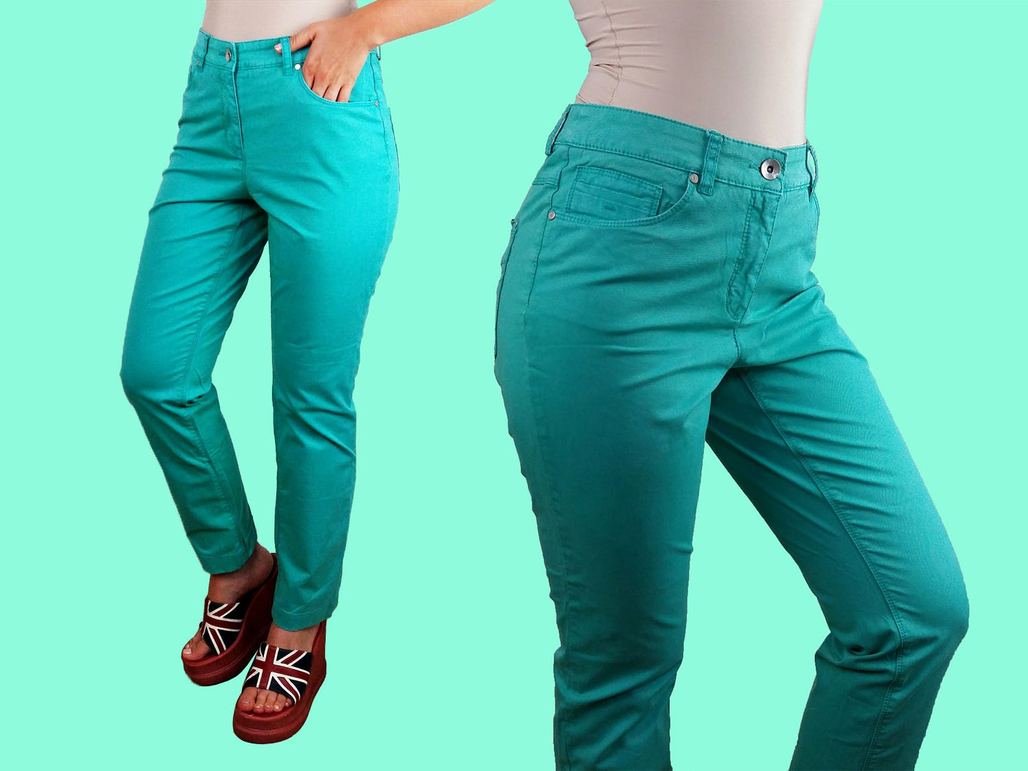 Lovely vintage 90's mom trousers, super comfortable and light stretch cotton, gorgeous turquoise colour. Brand Laura di Sarpi. Excellent vintage condition, flawless.