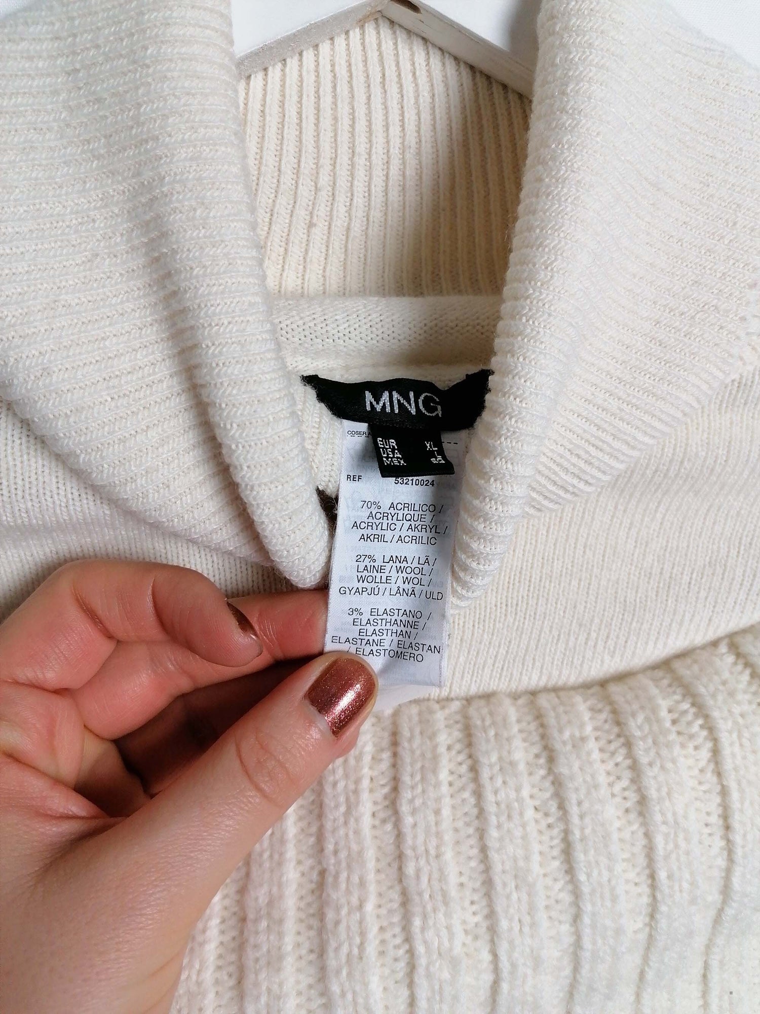 Brand Mango. 70% acrylic, 27% wool, 3% elastane.