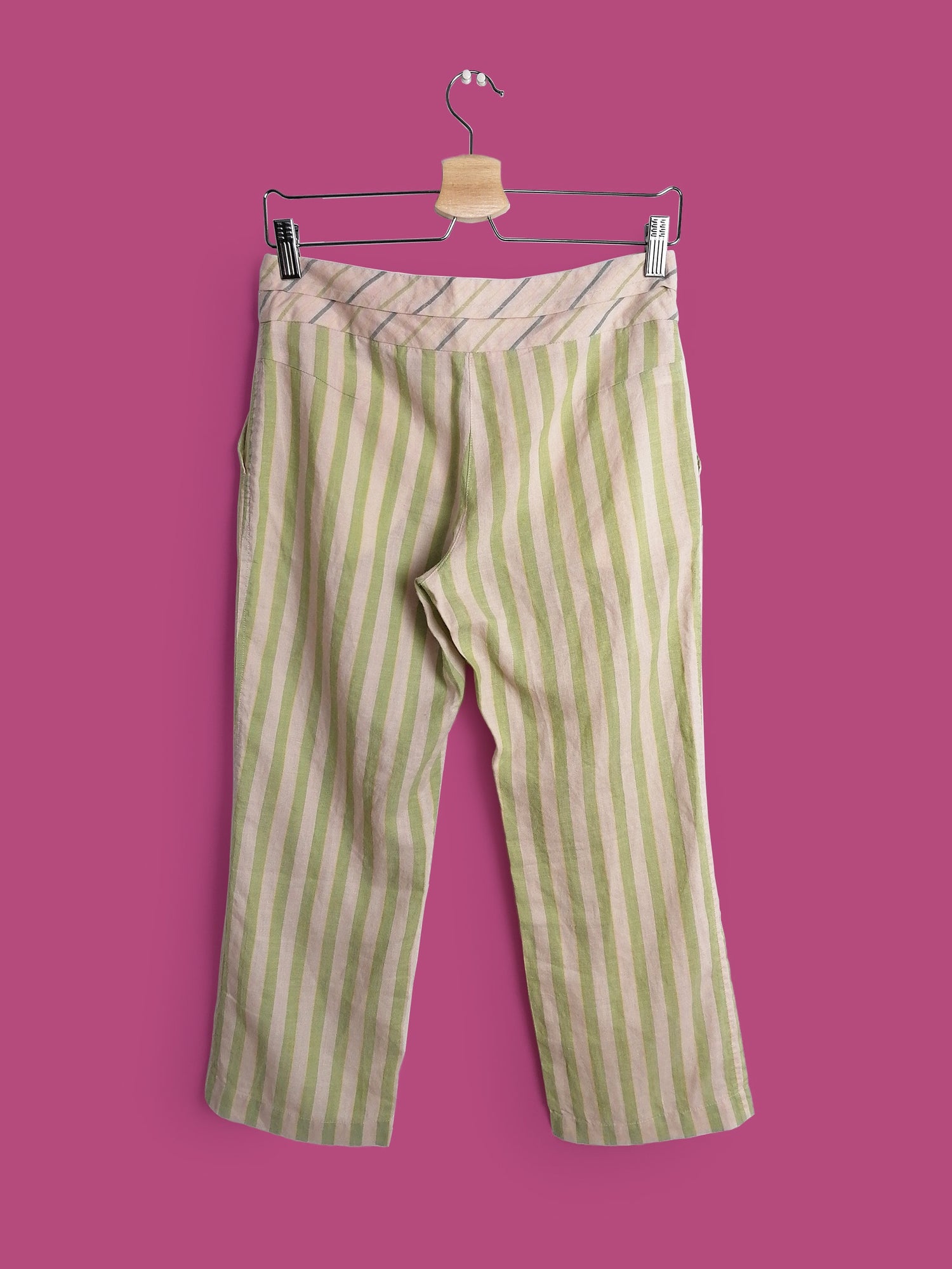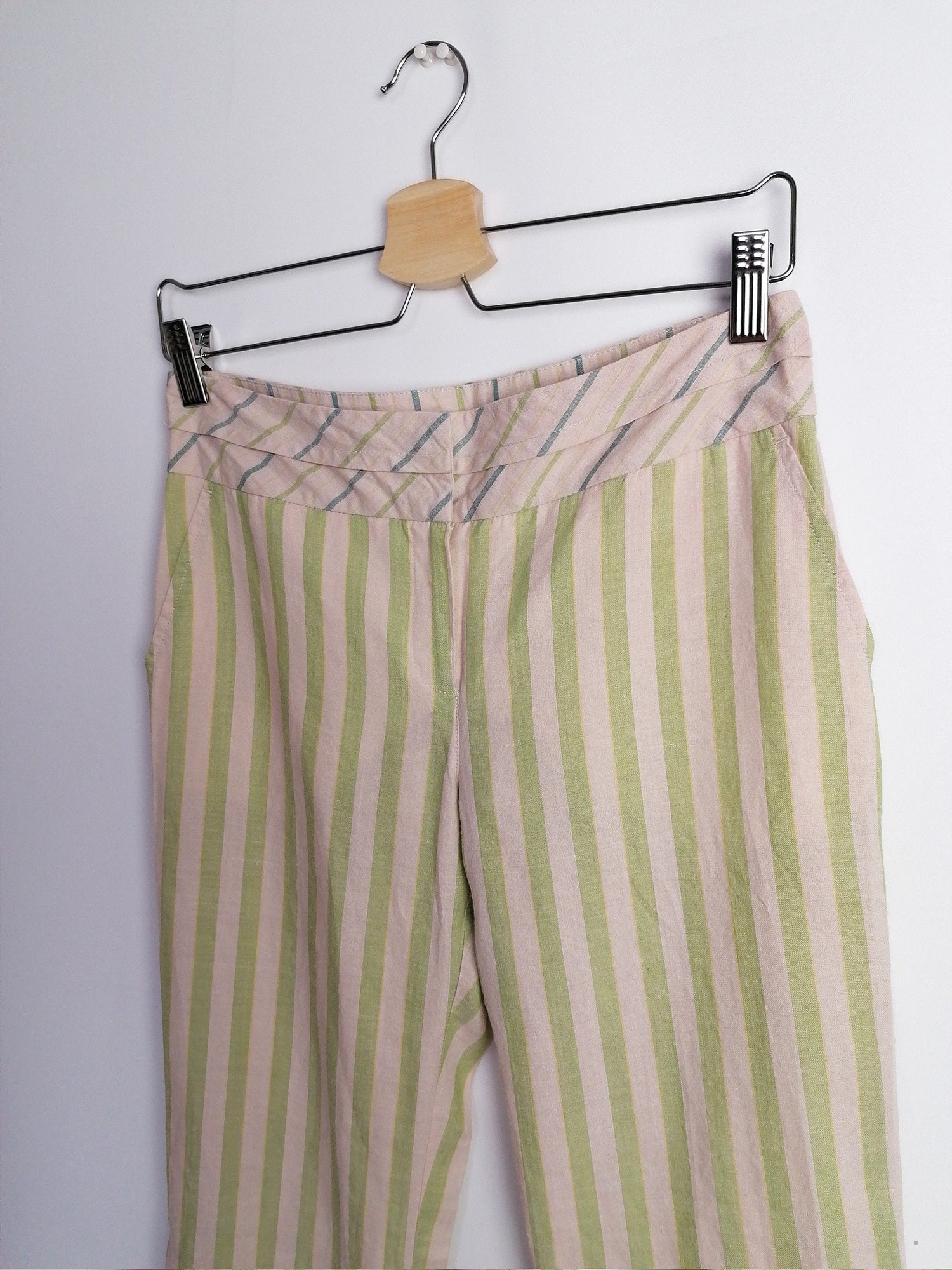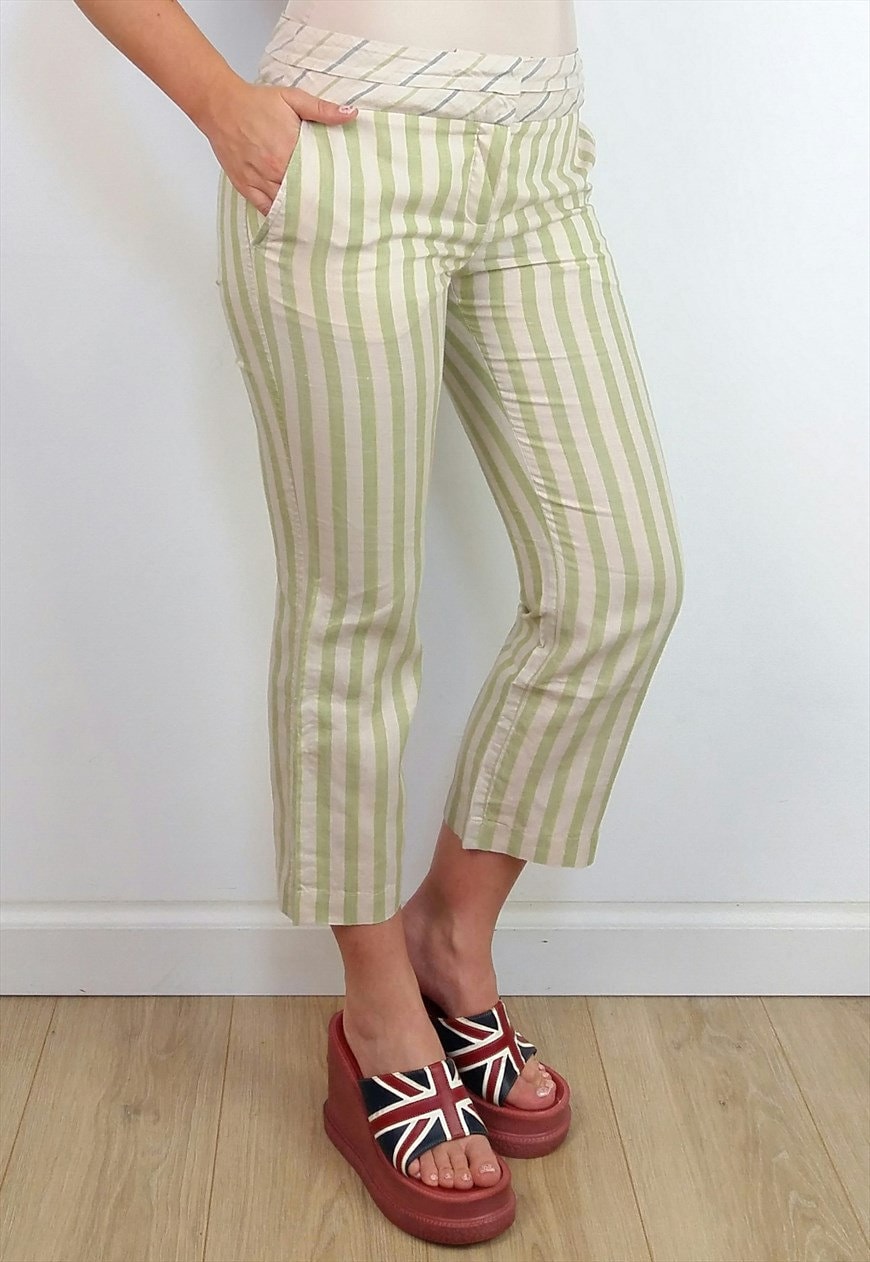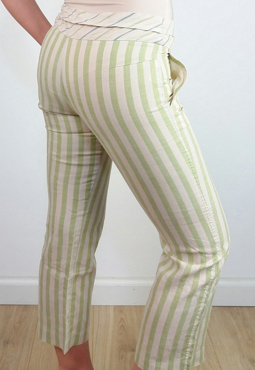 Gorgeous 90's slim fit low waist striped capris, slightly flared leg. Brand Mango Casual. Quality linen-like natural fabric, 100% ramio. Excellent vintage condition, flawless. Would fit size XS-S, size tag reads EU 36 / USA 4 / Mex 3.
