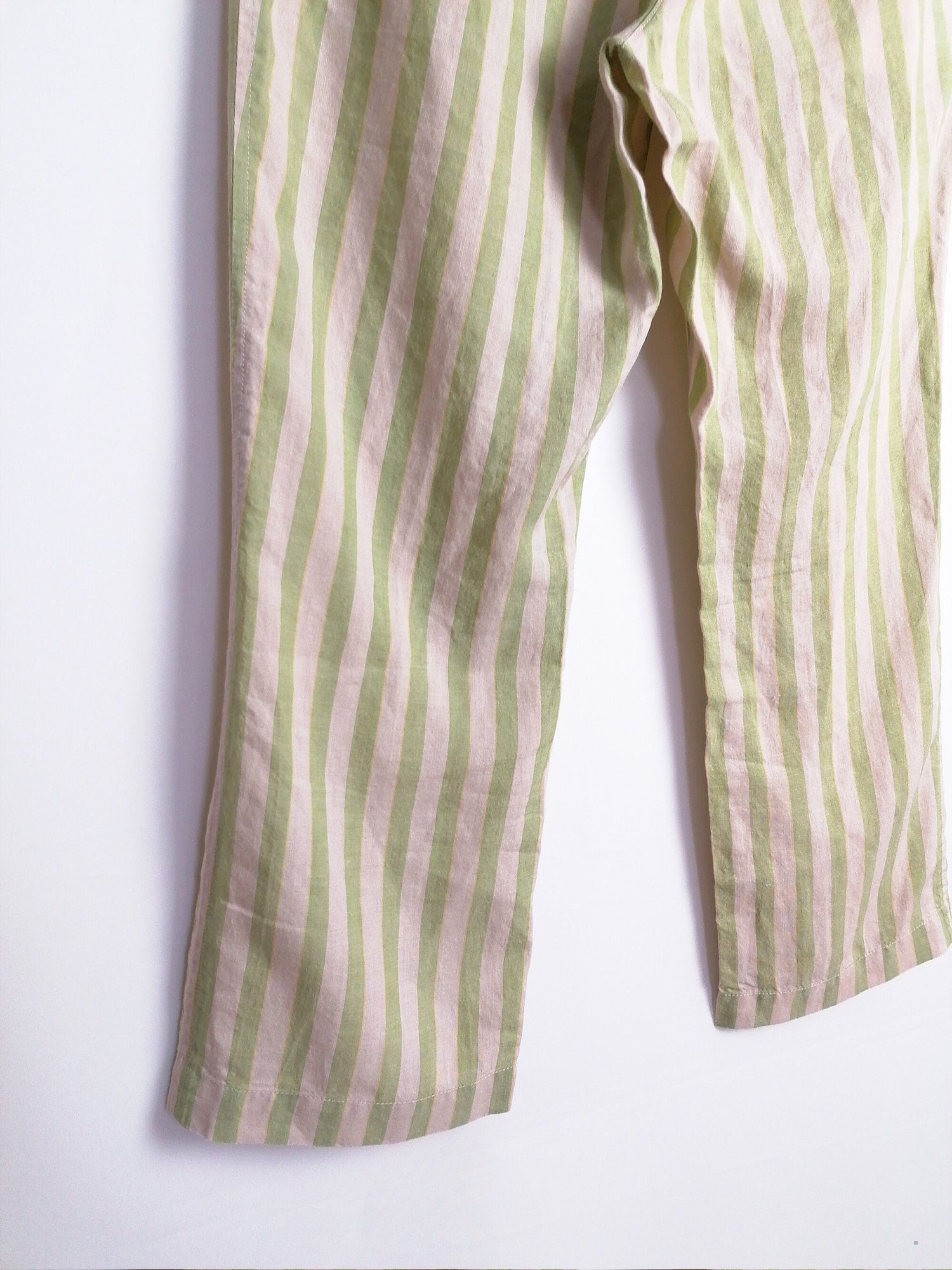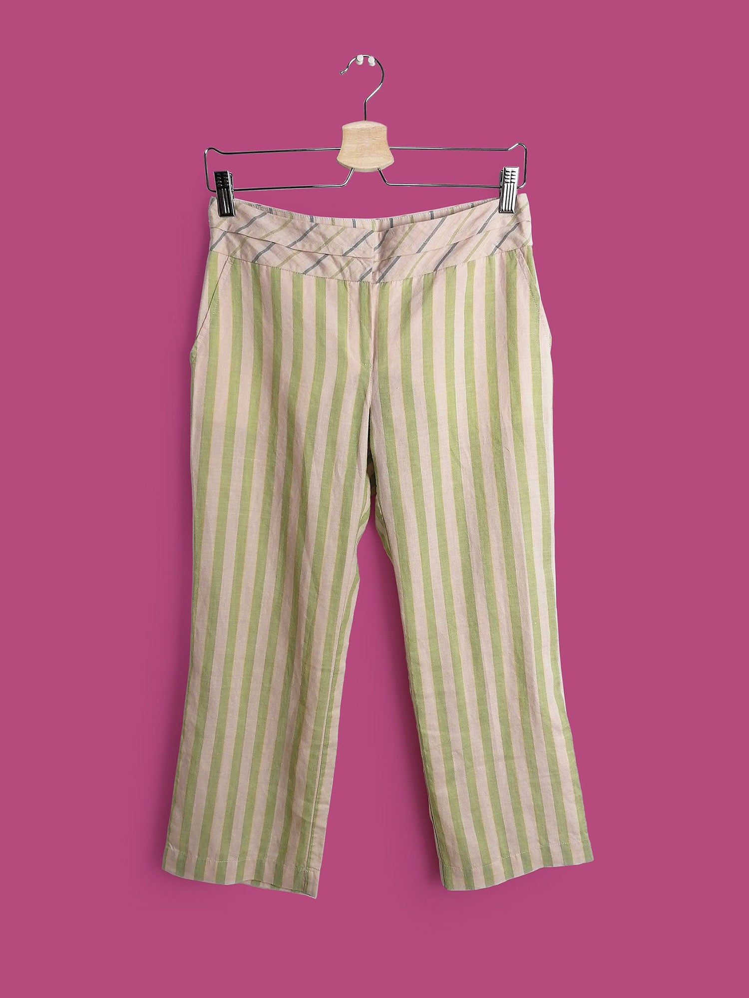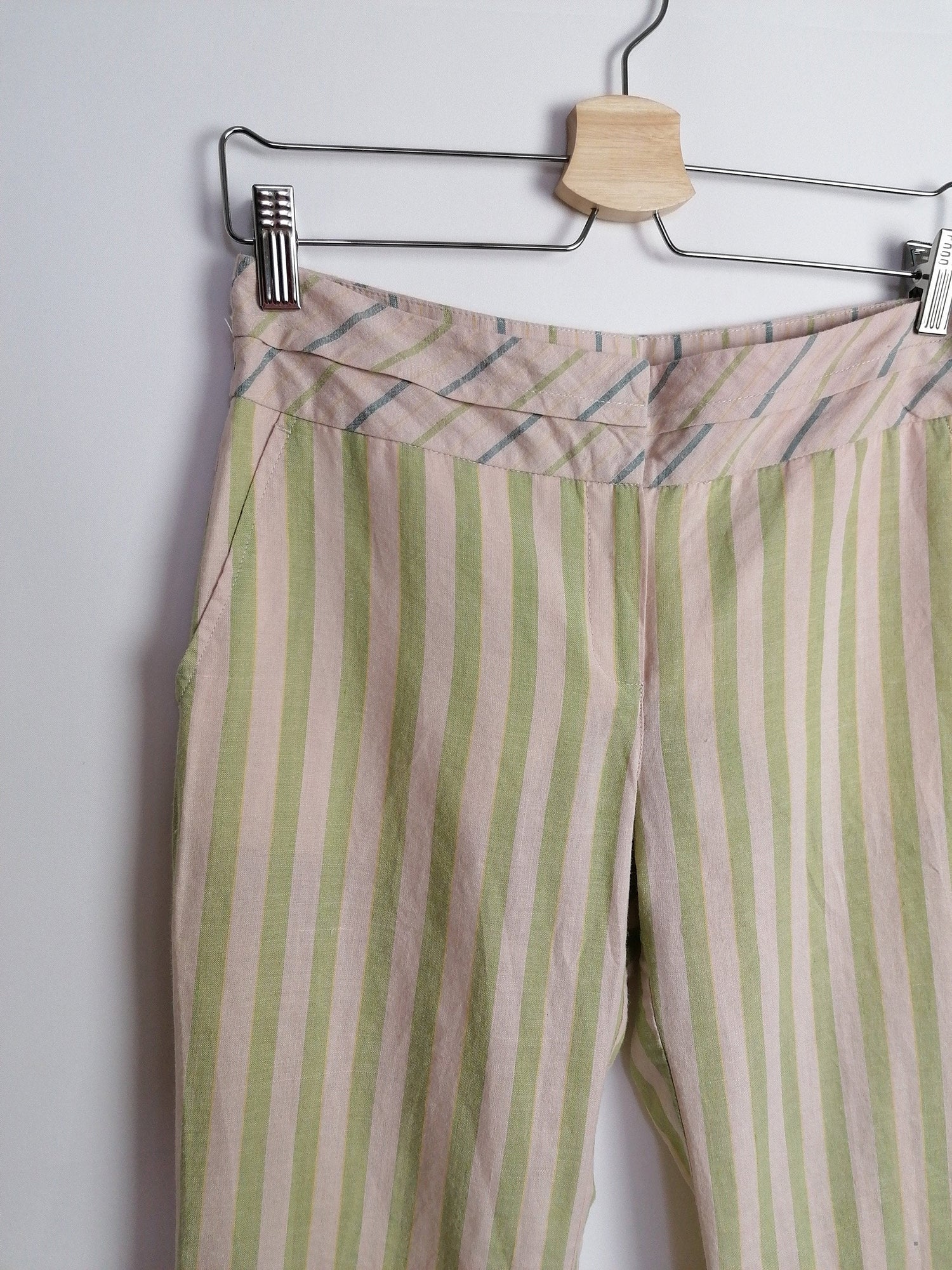 Gorgeous 90's slim fit low waist striped capris, slightly flared leg. Brand Mango Casual. Quality linen-like natural fabric, 100% ramio. Excellent vintage condition, flawless. Would fit size XS-S, size tag reads EU 36 / USA 4 / Mex 3.