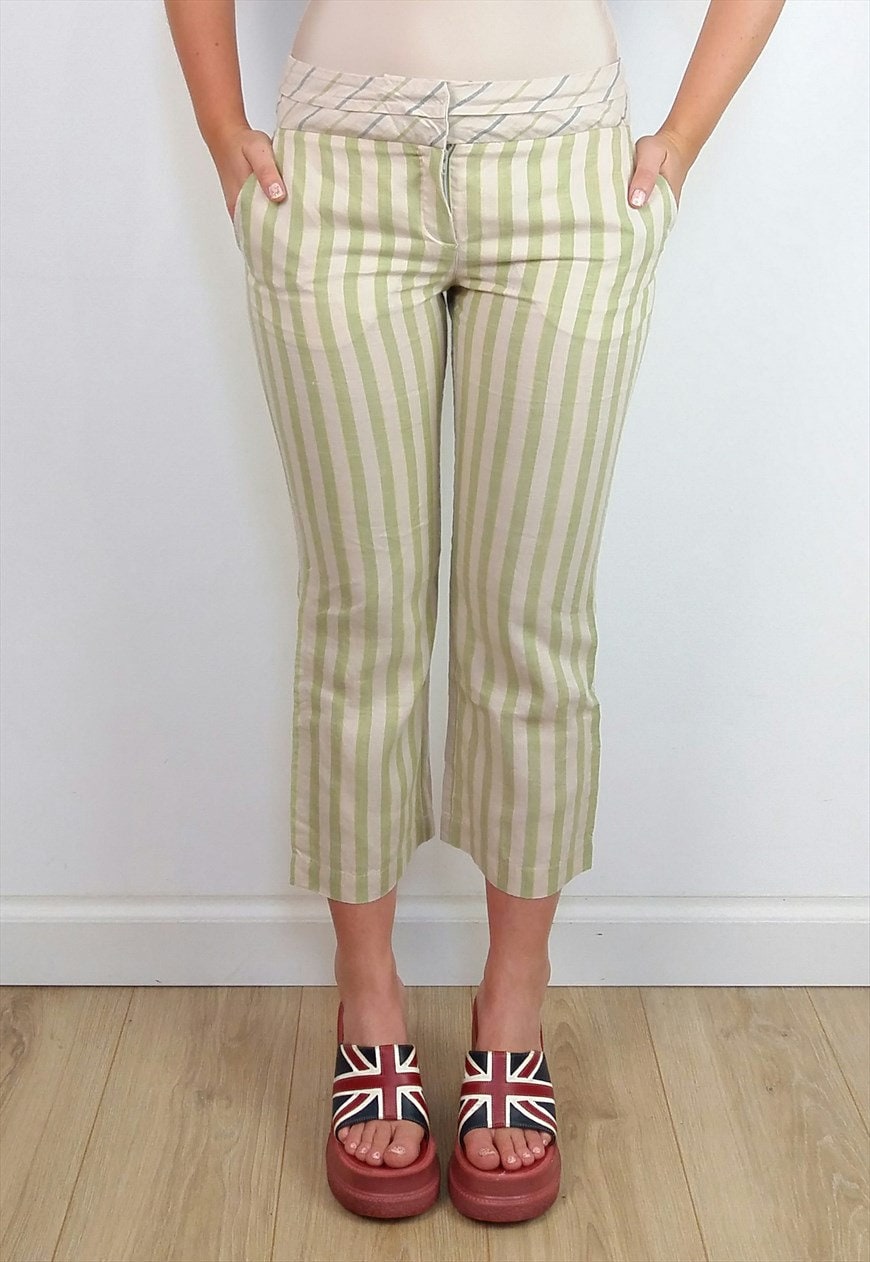 Y2K MANGO Striped 3/4 Flared Linen Capris - size XS