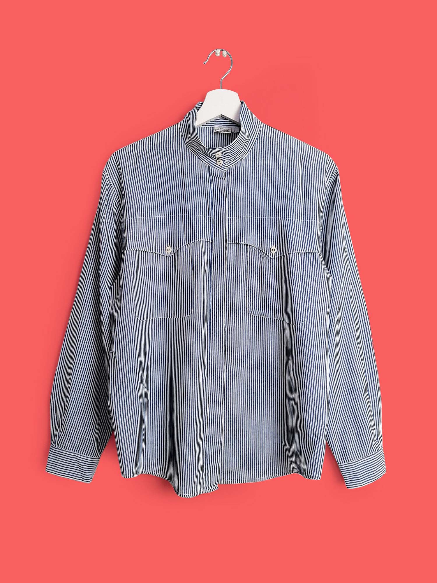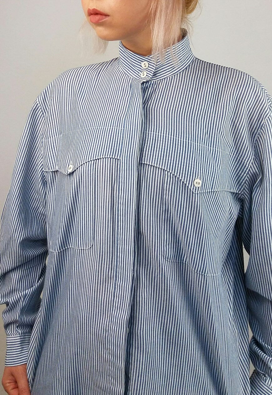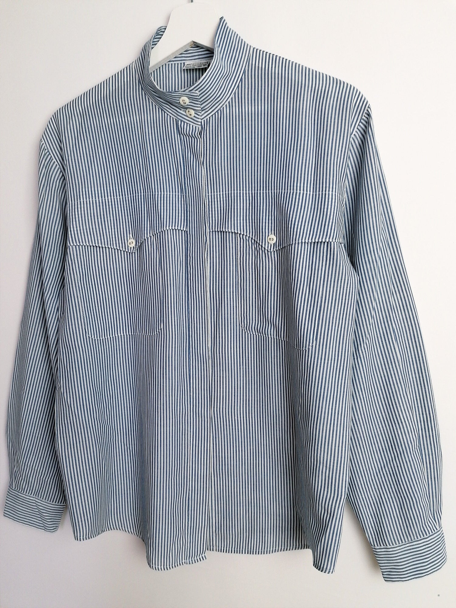 Exquisite vintage 90's softest cotton blend long sleeve shirt. Beautiful minimalist cut, hidden buttons closure, tailored pocket details.