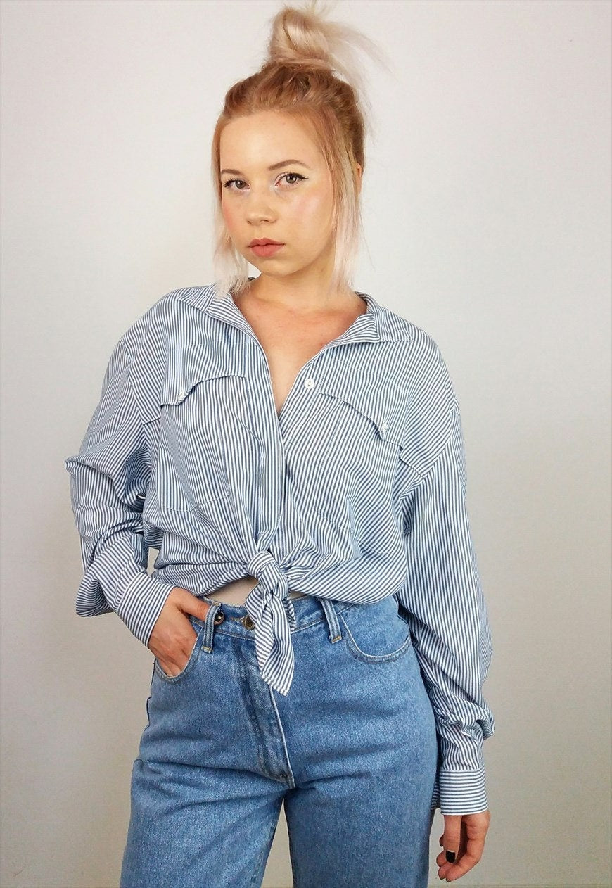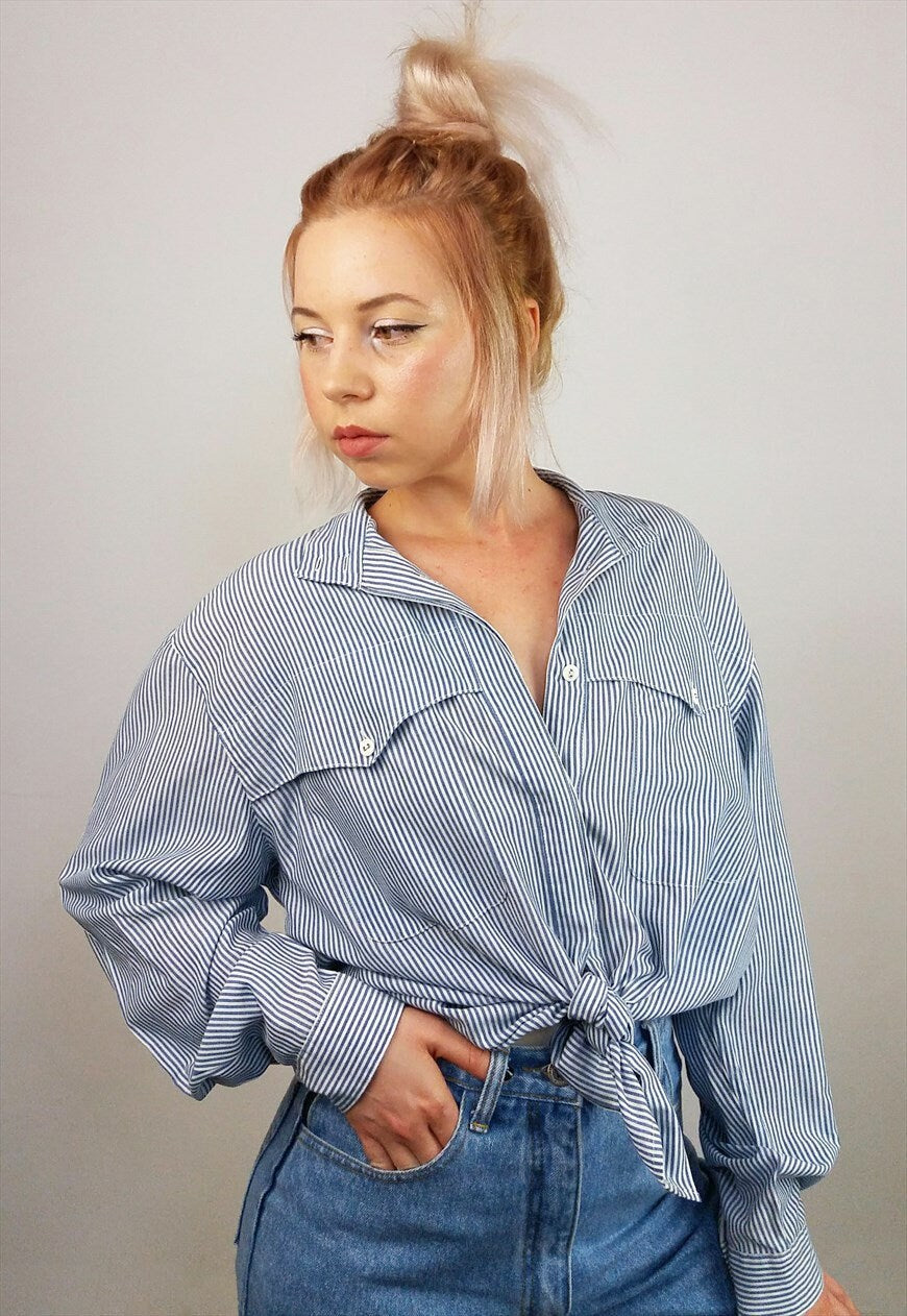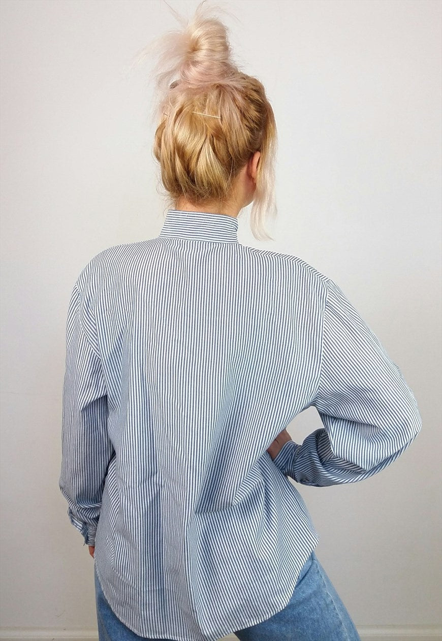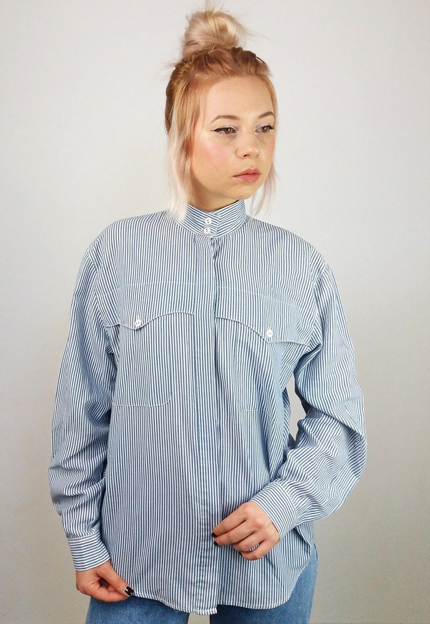 Exquisite vintage 90's softest cotton blend long sleeve shirt. Beautiful minimalist cut, hidden buttons closure, tailored pocket details.