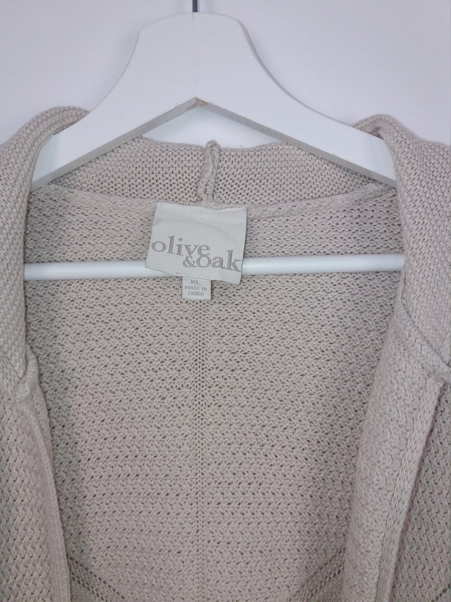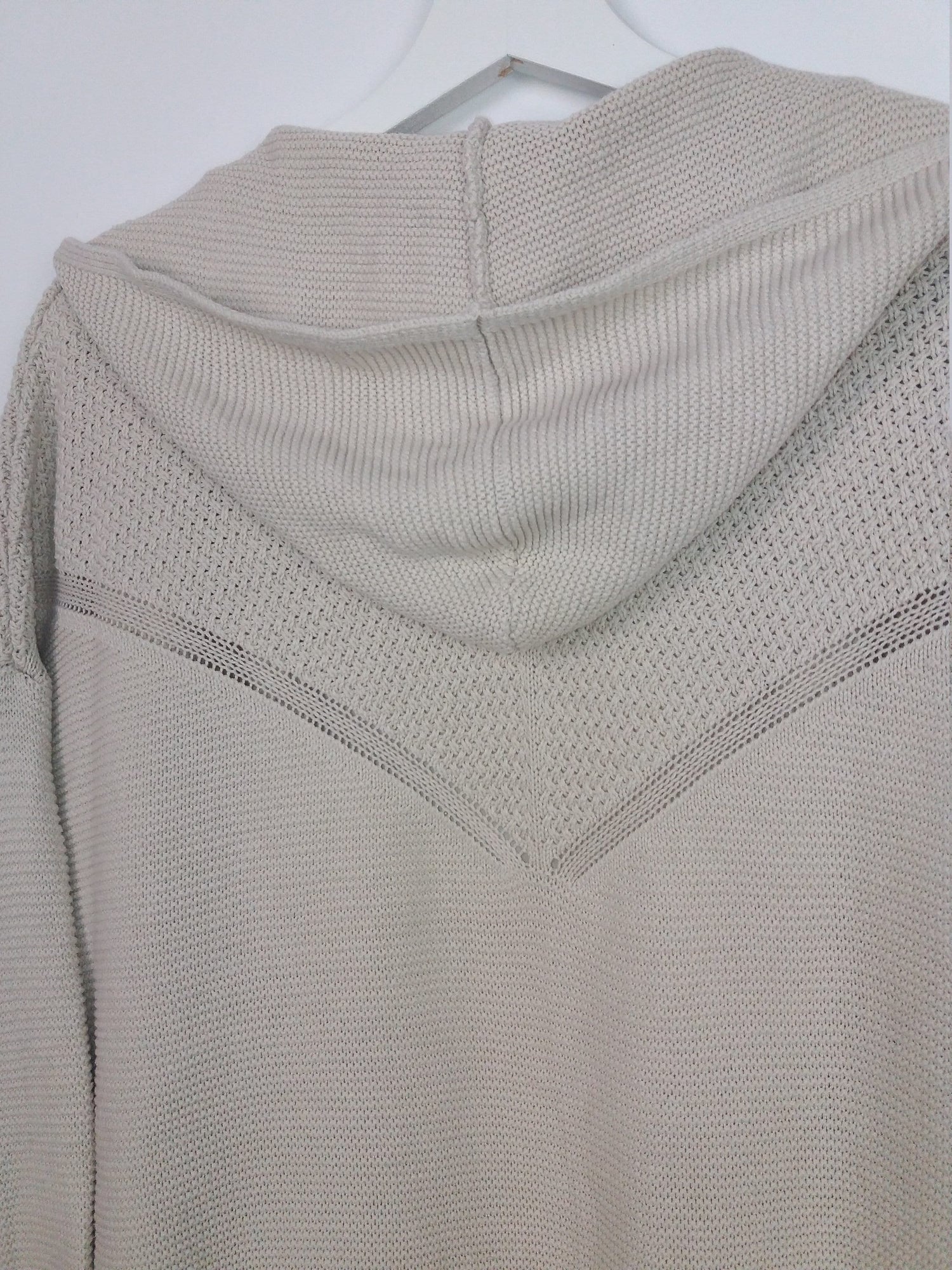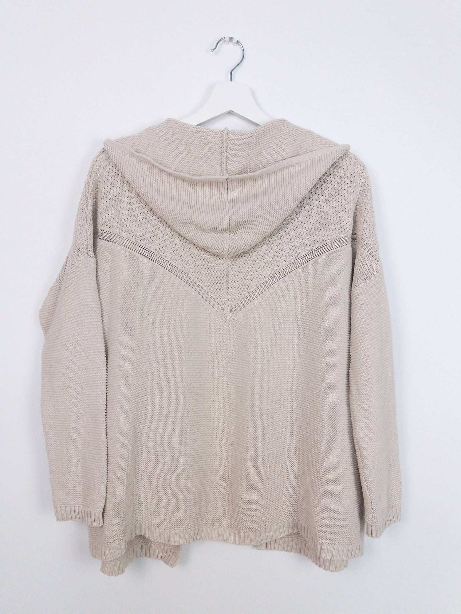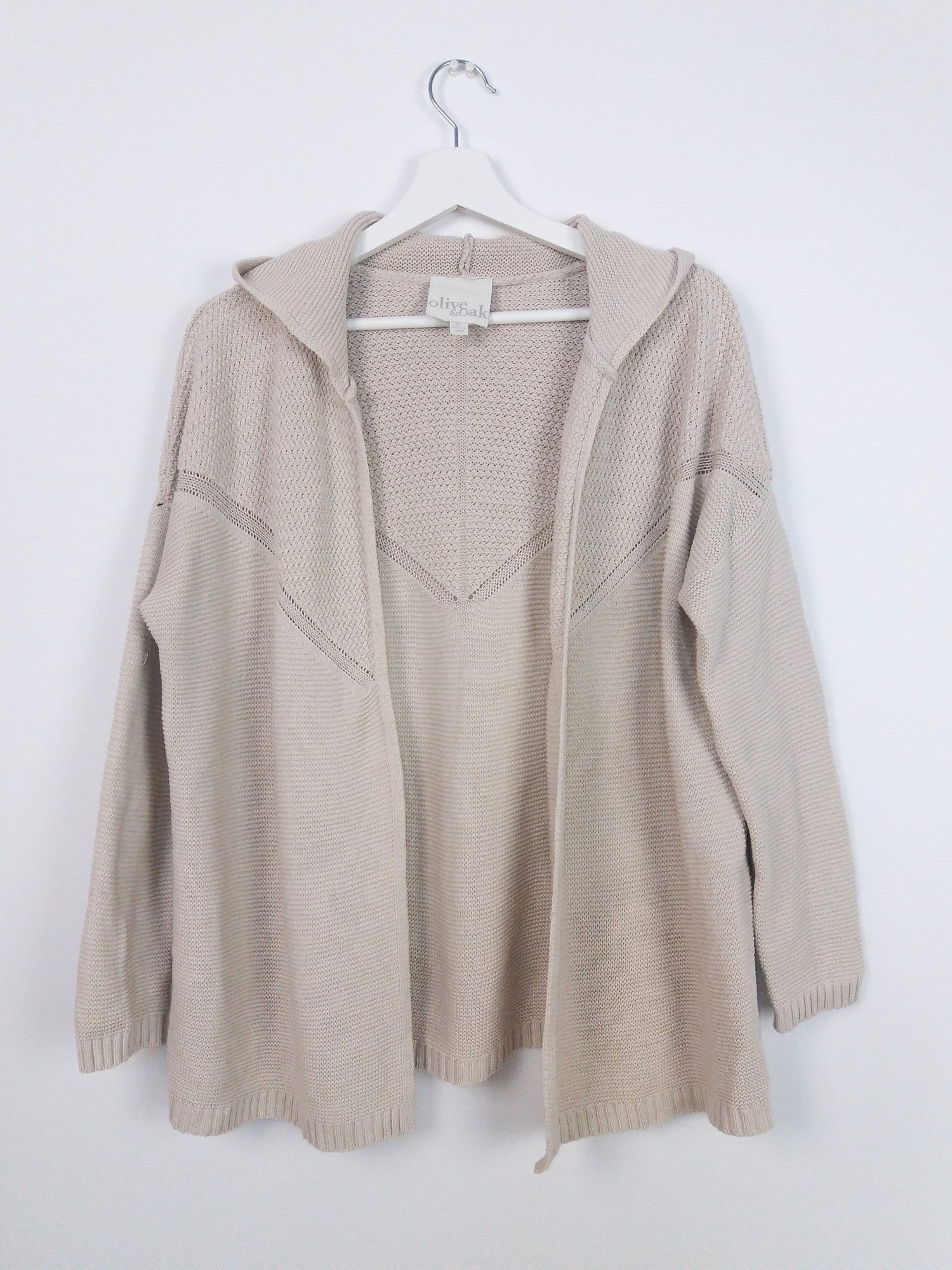 Gorgeous Olive & Oak hooded cardigan, cotton and acrylic blend, light and comfortable, soft beige with delicate knit pattern on the back.