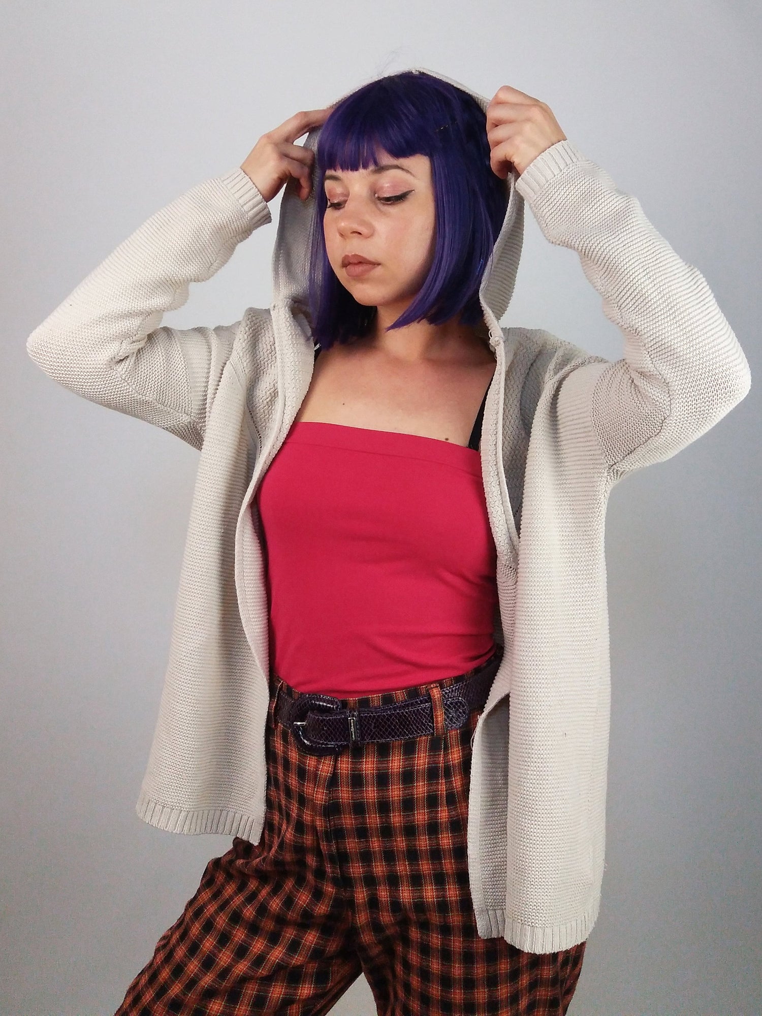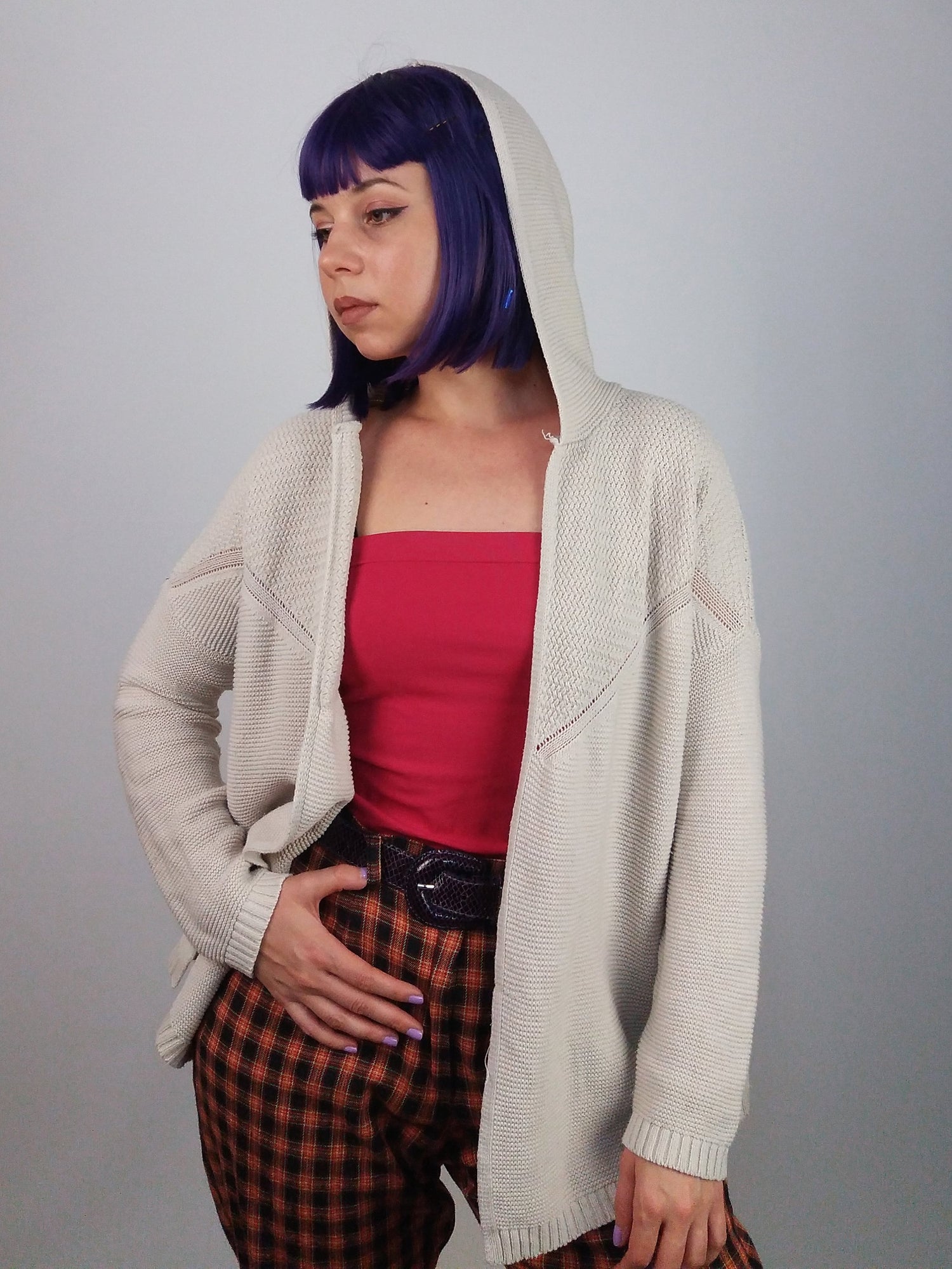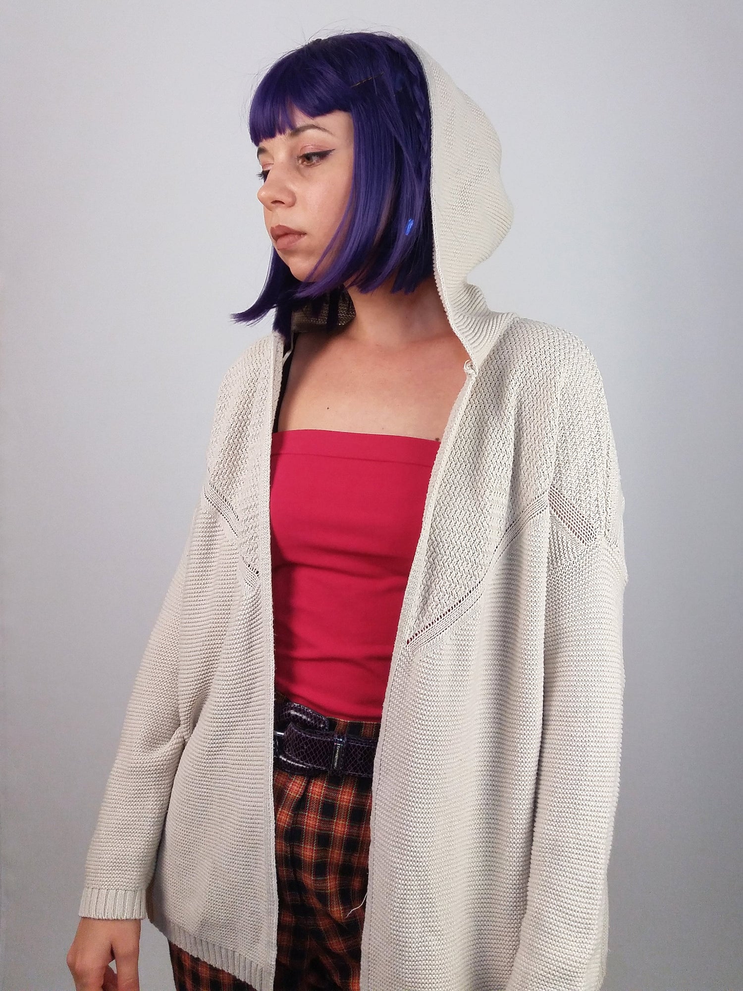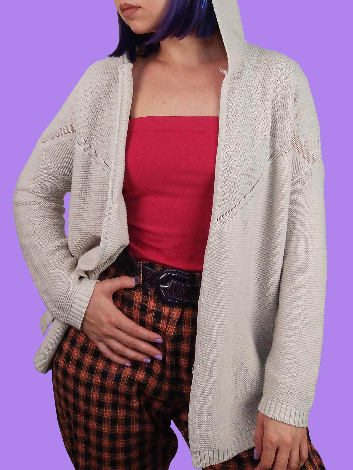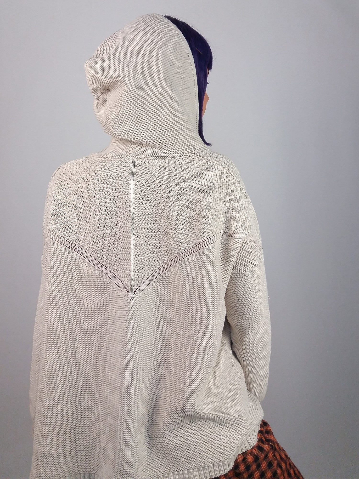 Gorgeous Olive & Oak hooded cardigan, cotton and acrylic blend, light and comfortable, soft beige with delicate knit pattern on the back.