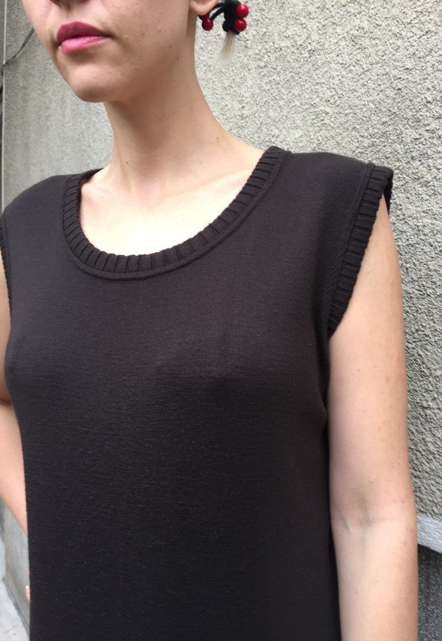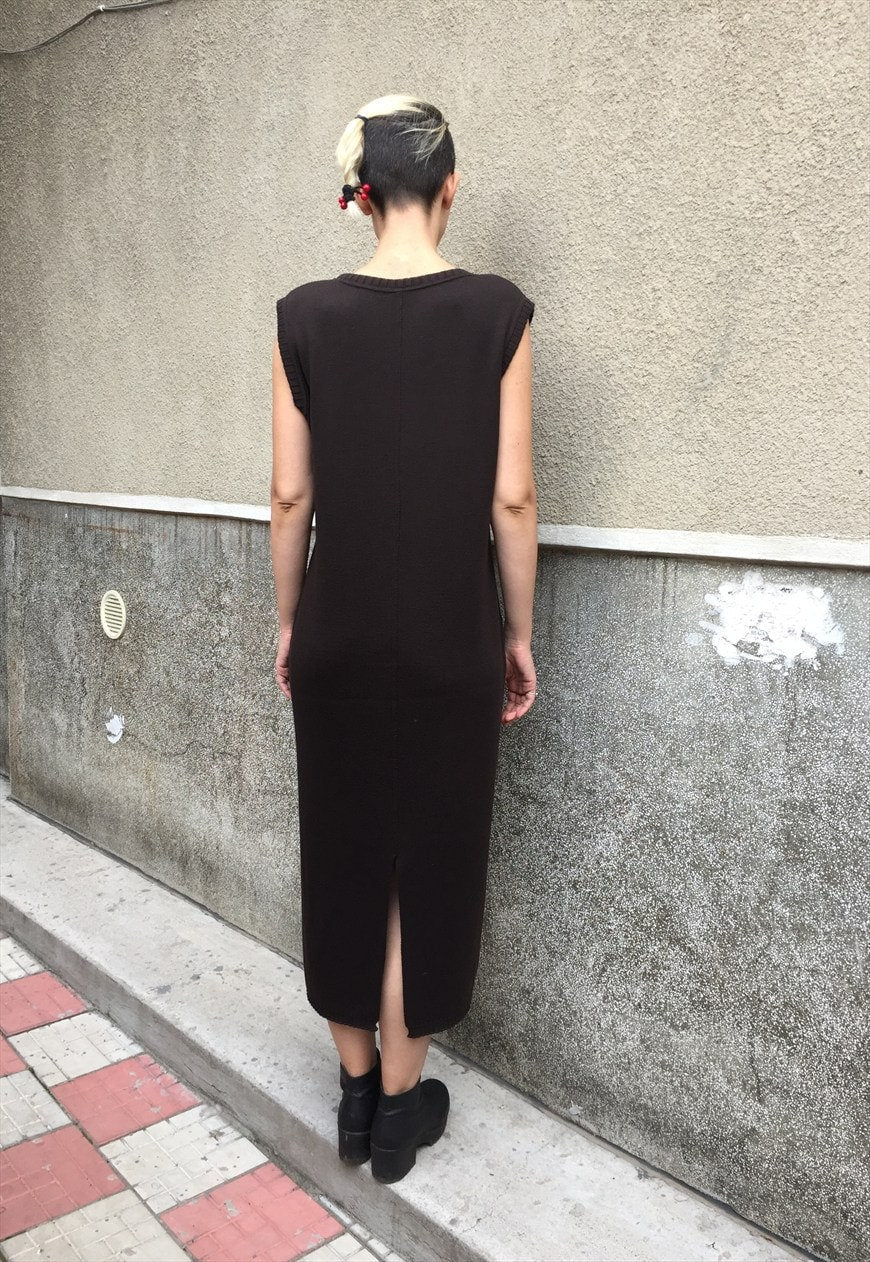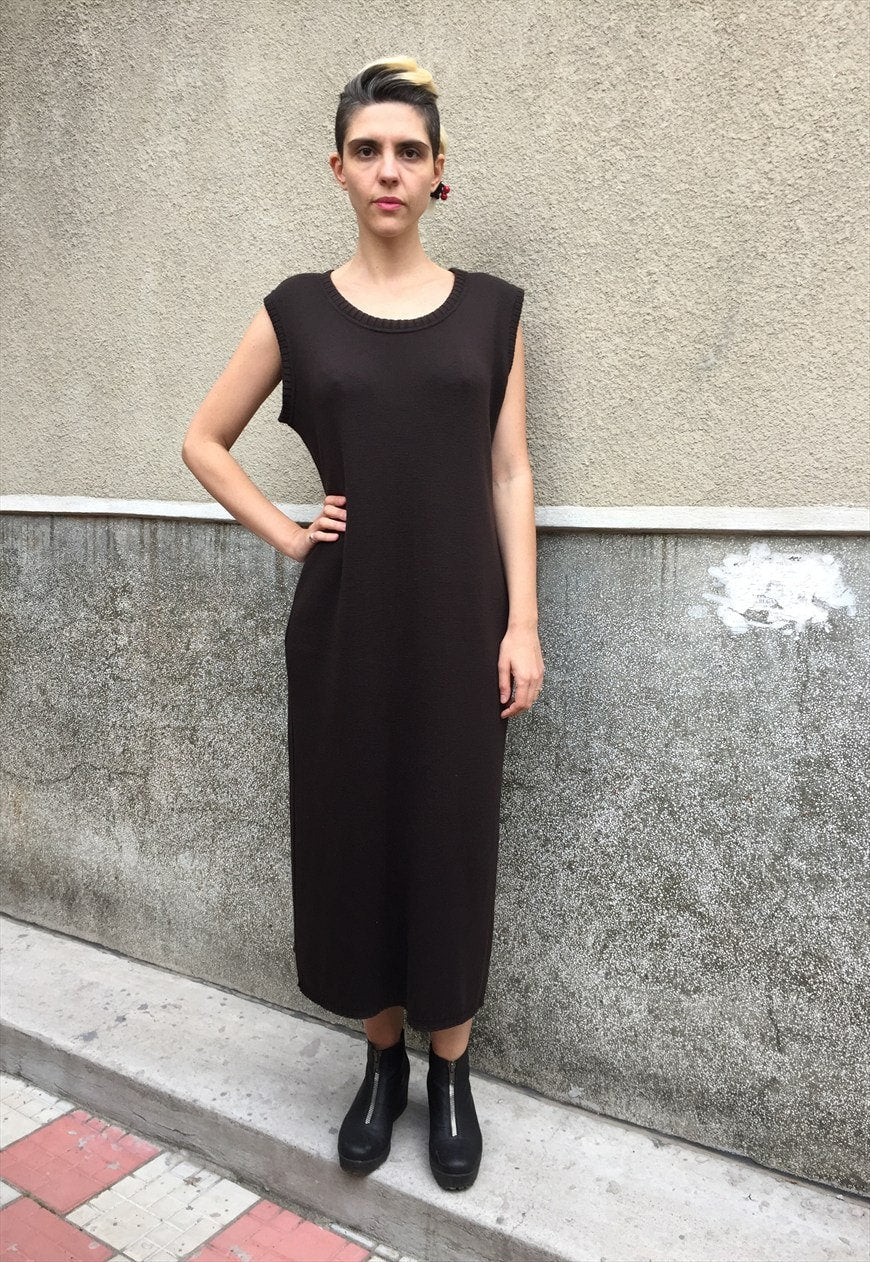 Beautiful 90's maxi dress, soft, heavy knit, chocolate brown. Wool and acrylic blend.