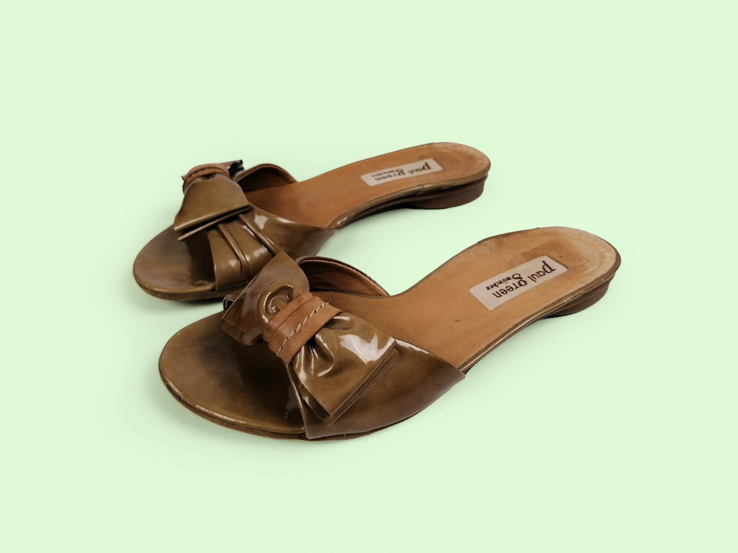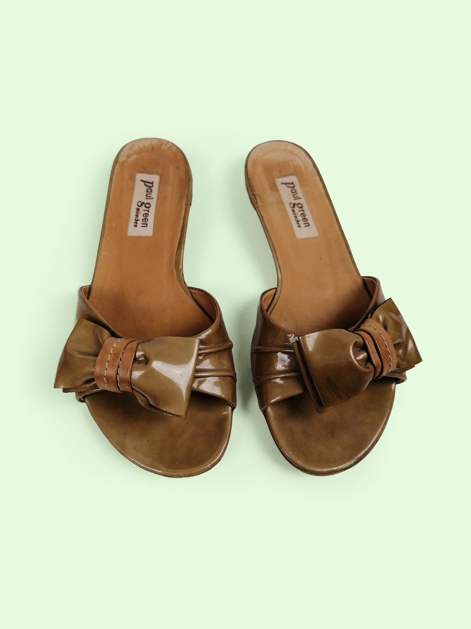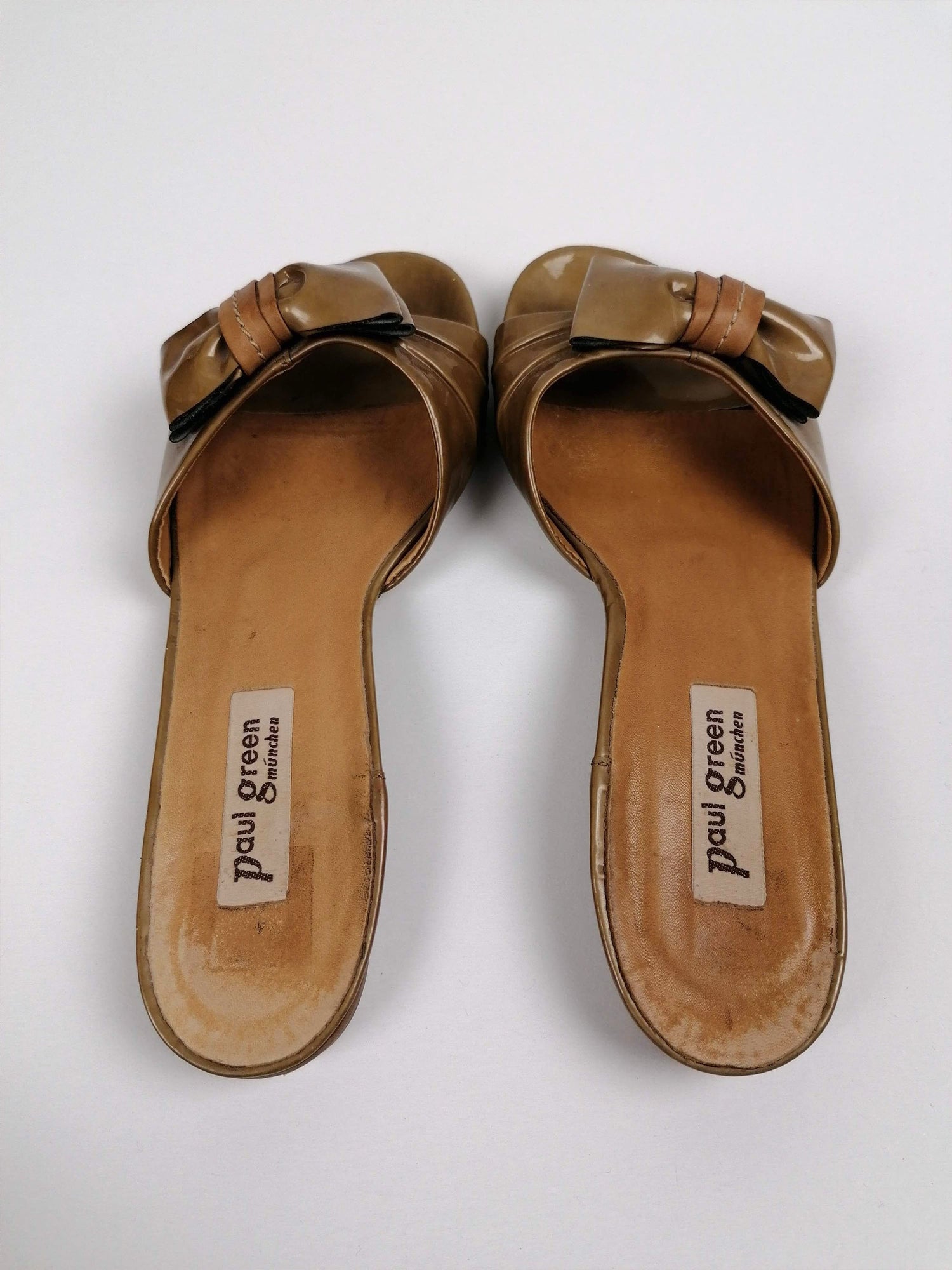 Beautiful vintage Paul Green Munchen shiny patent leather slides, made in Austria. Genuine leather, bow detail.