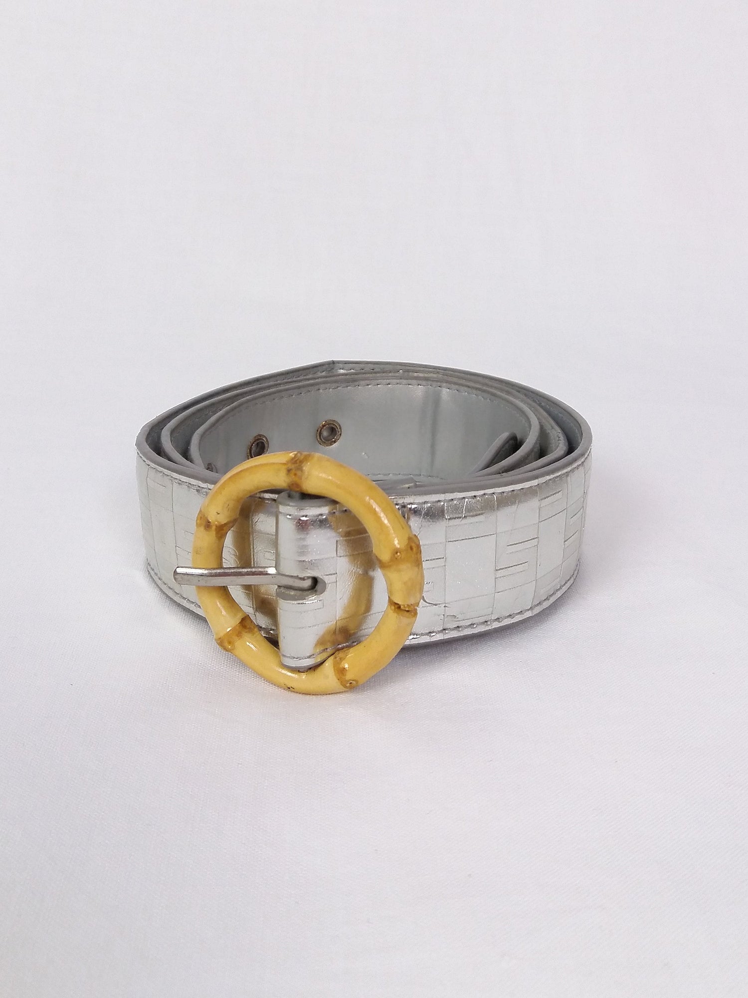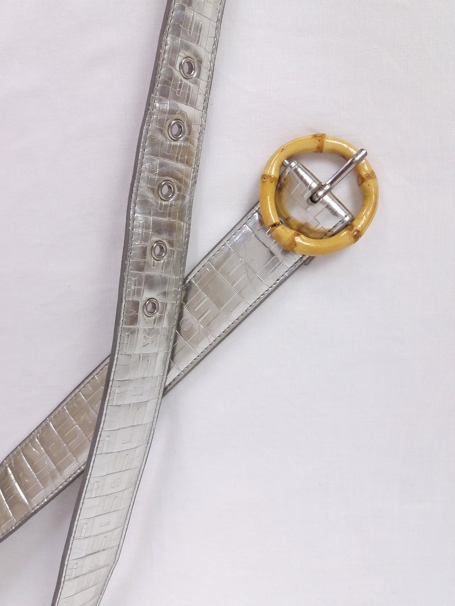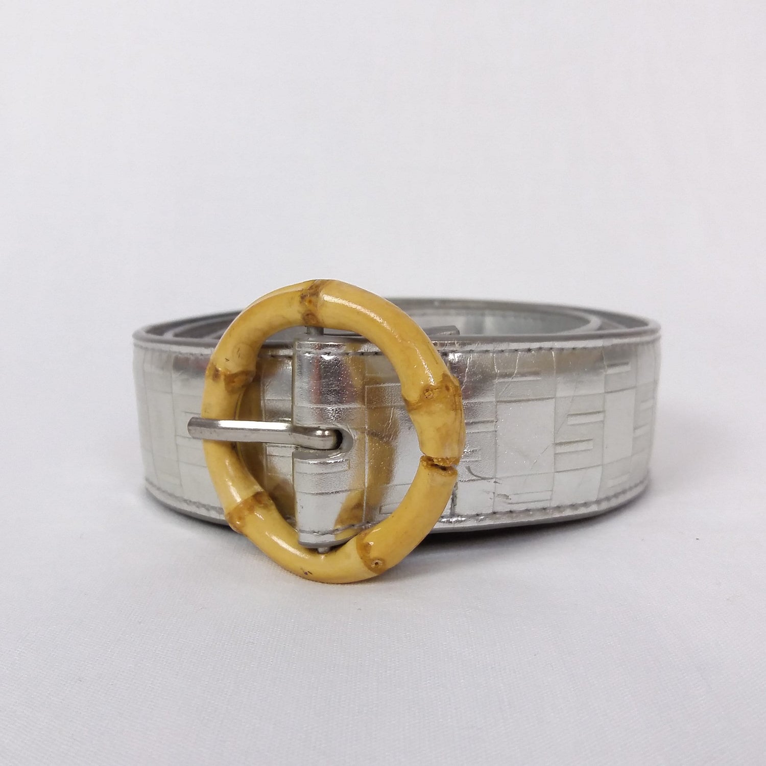 SISLEY Silver Faux Leather Belt Bamboo Buckle - size M