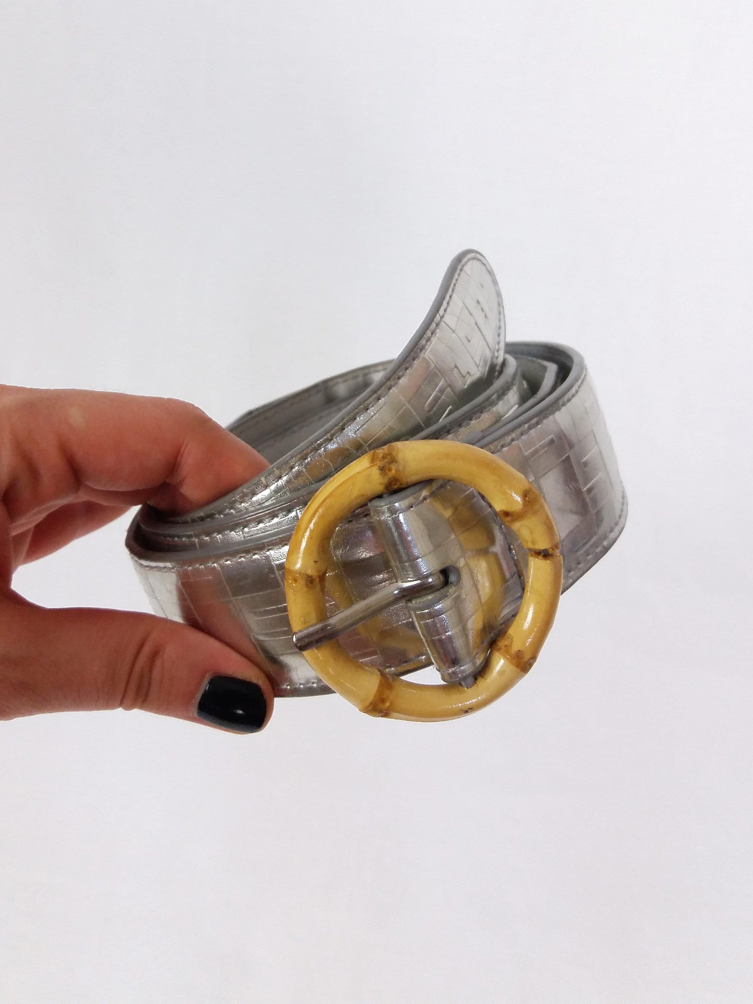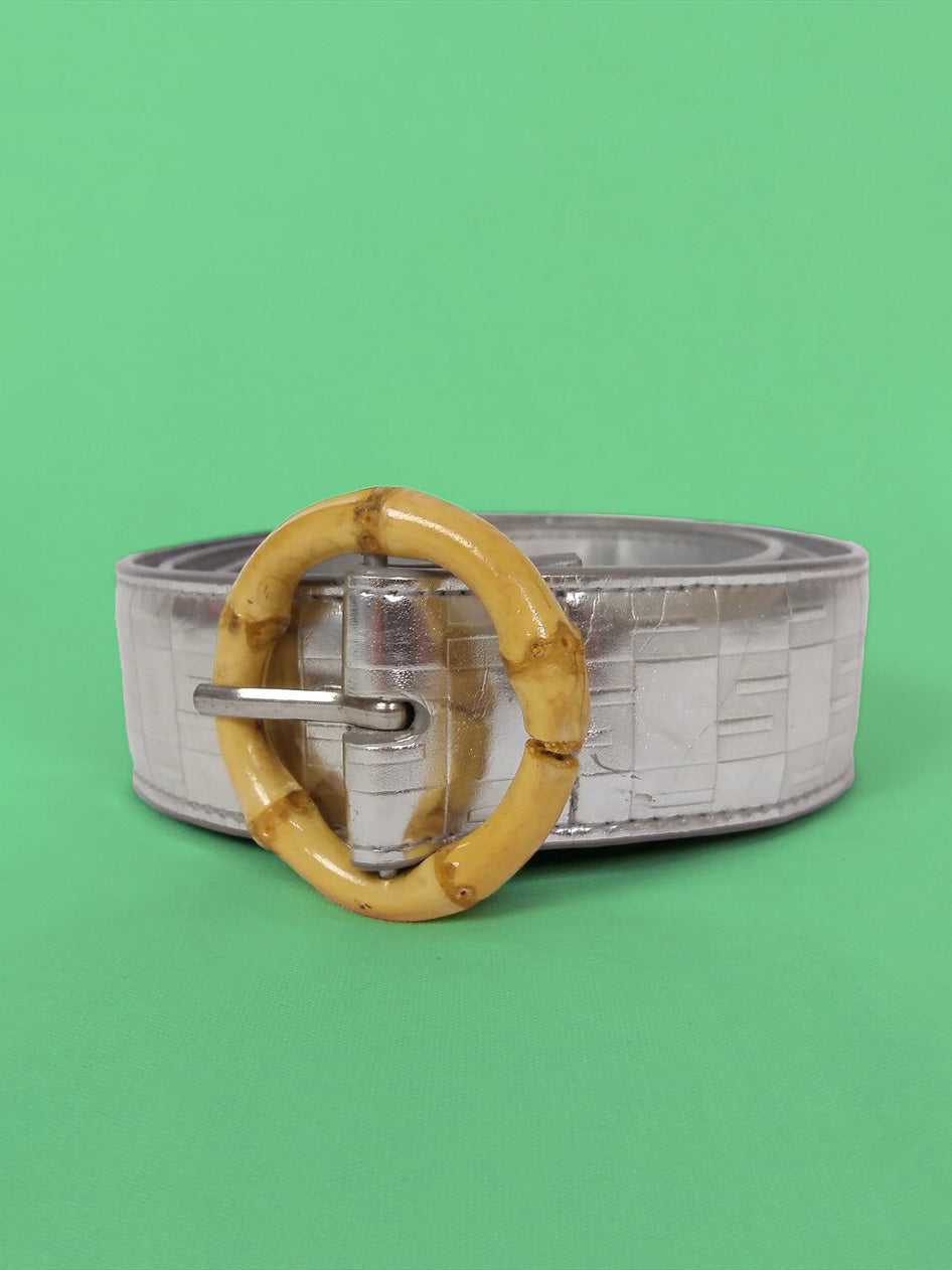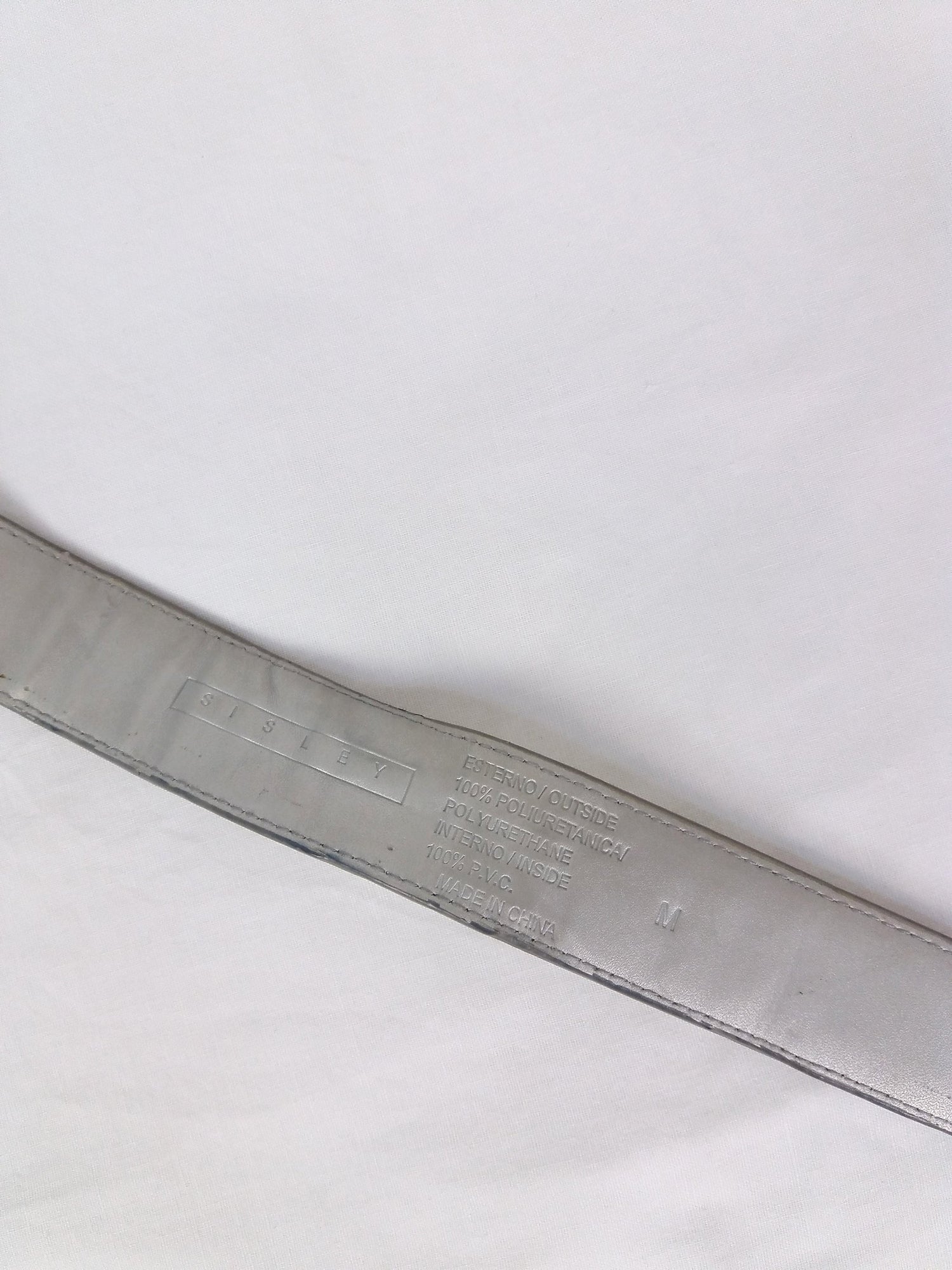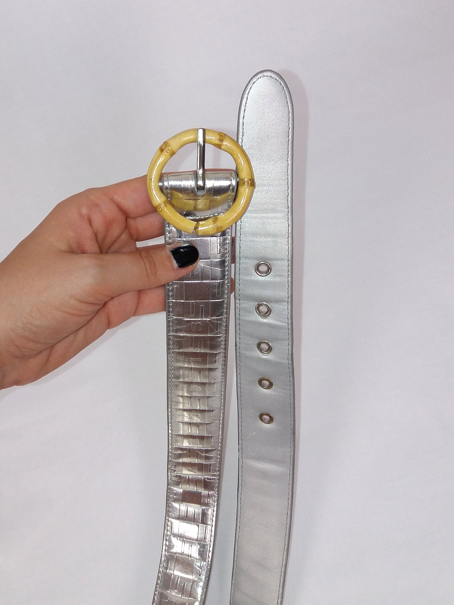 SISLEY Silver Faux Leather Belt Bamboo Buckle - size M