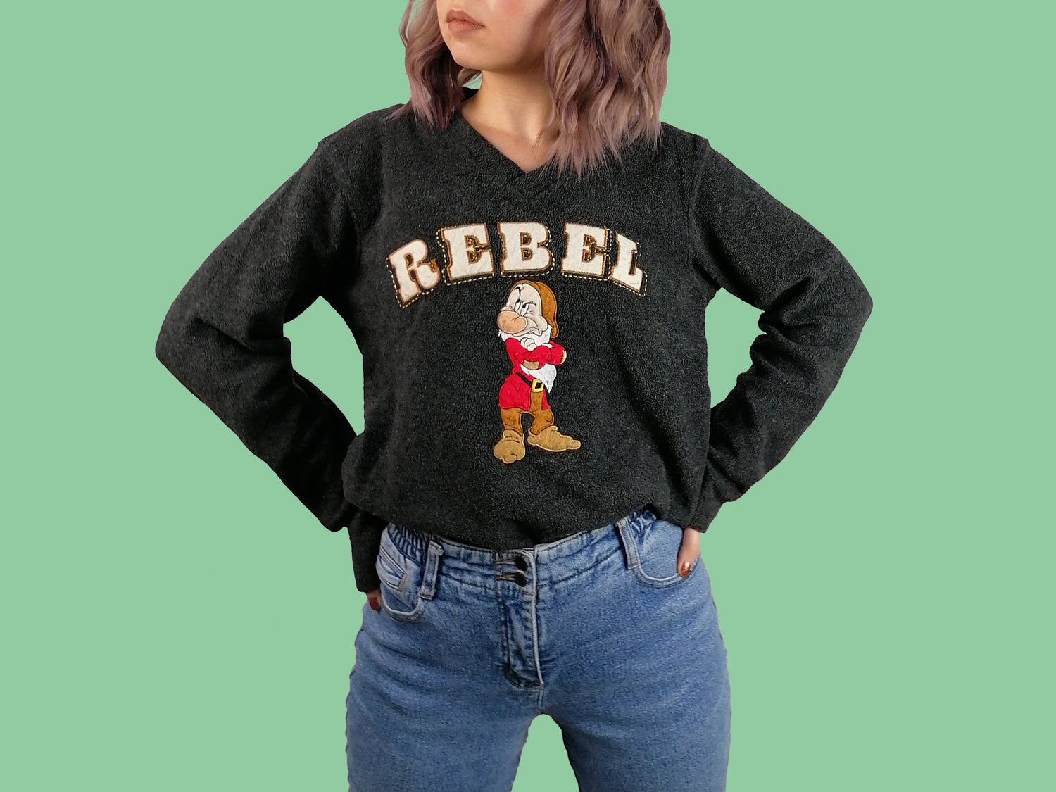 Gorgeous vintage 90's Grumpy Snow White fleece sweater. Super warm and comfortable.