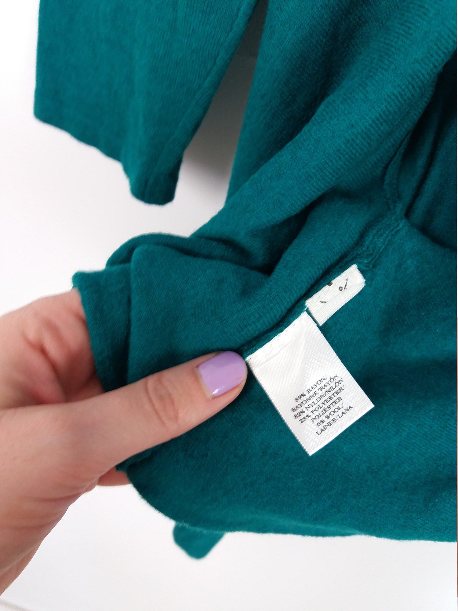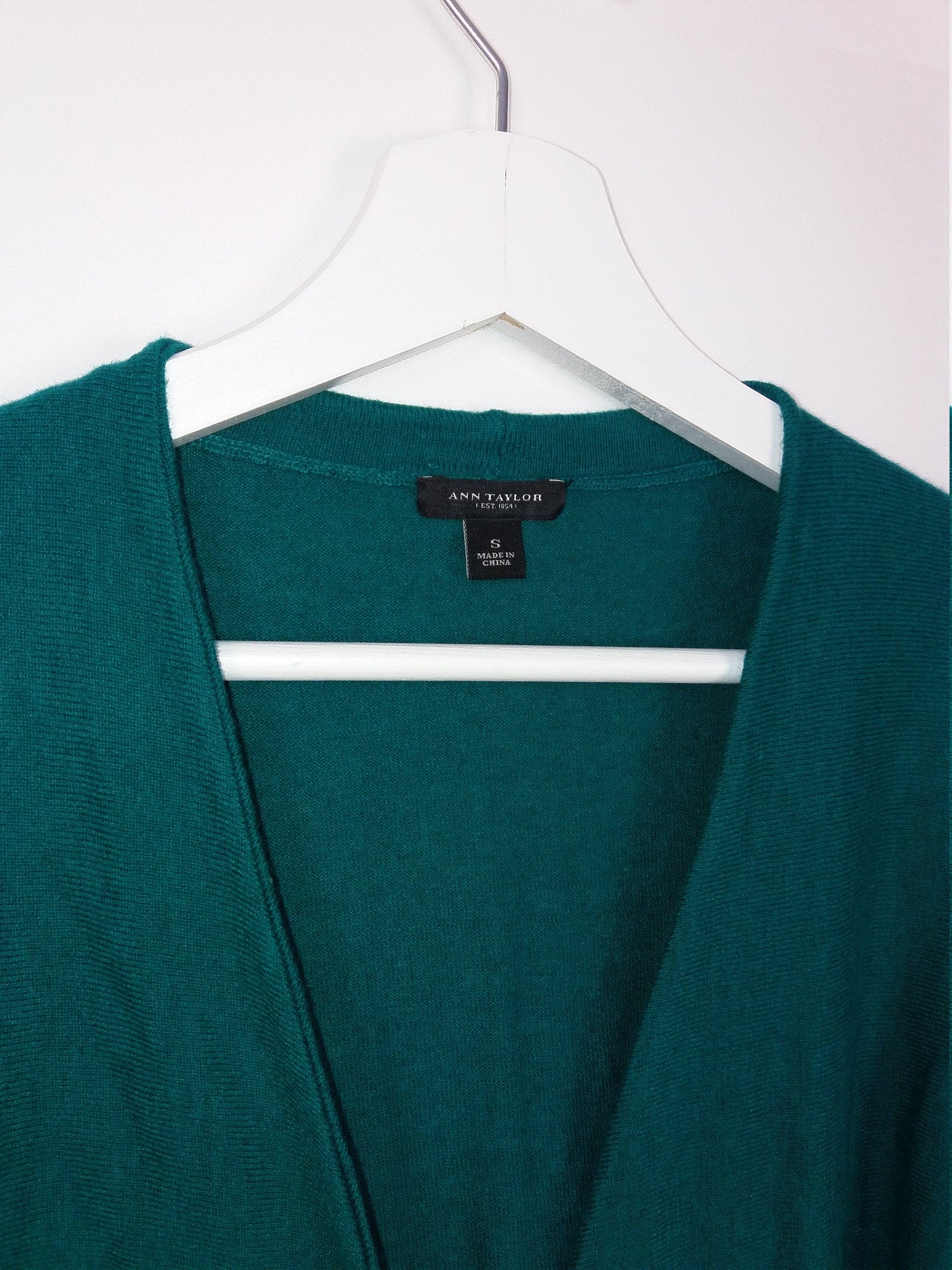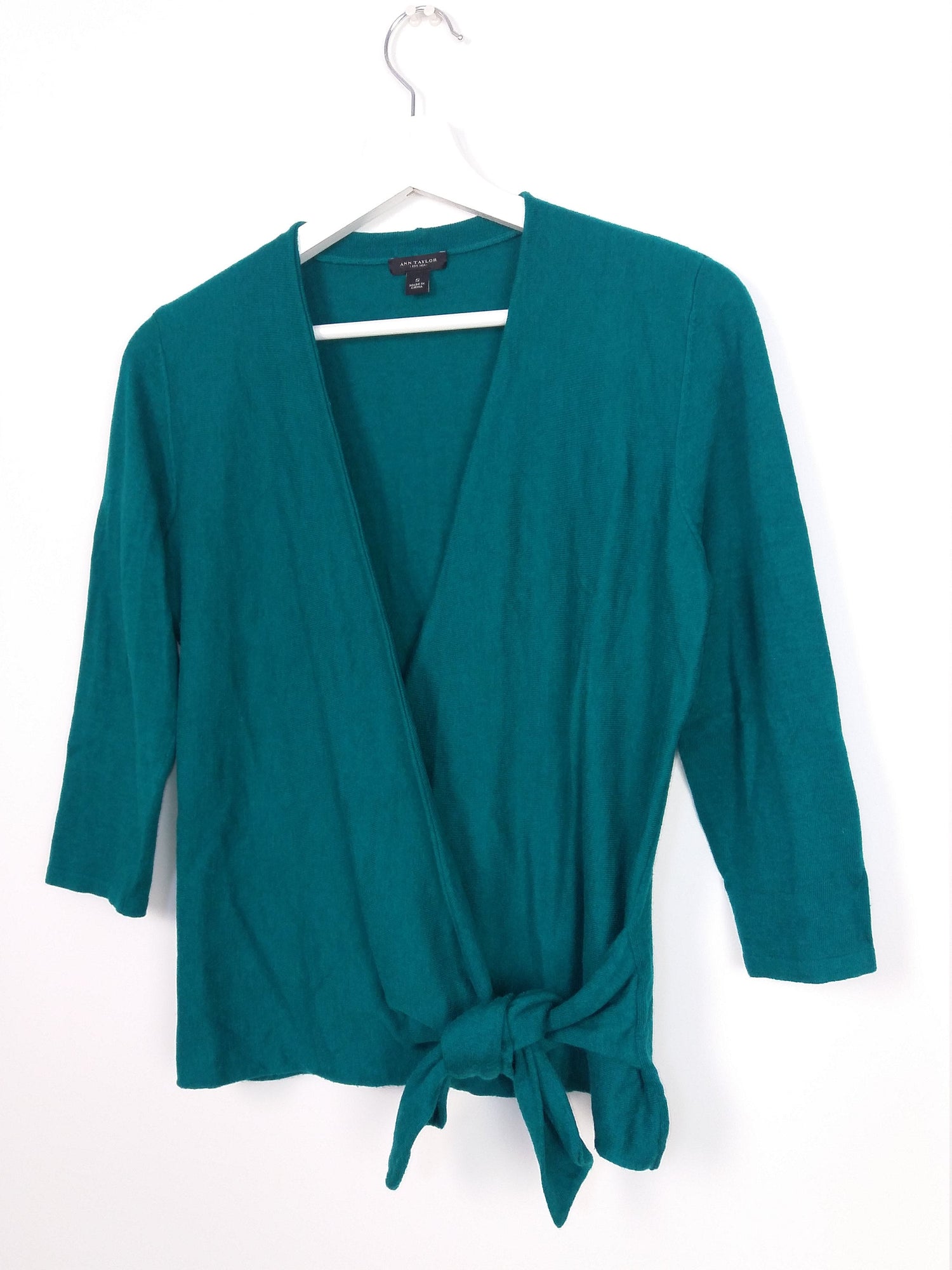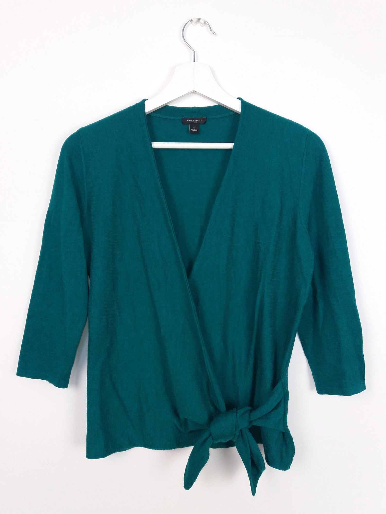 Gorgeous ANN TAYLOR soft knit wrap cardigan, tie detail, 3/4 sleeves, beautiful teal colour.
