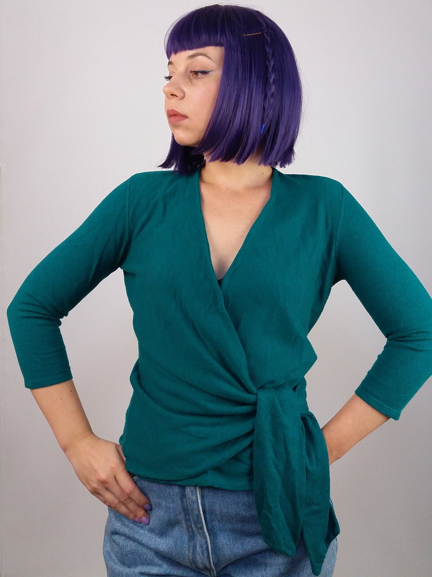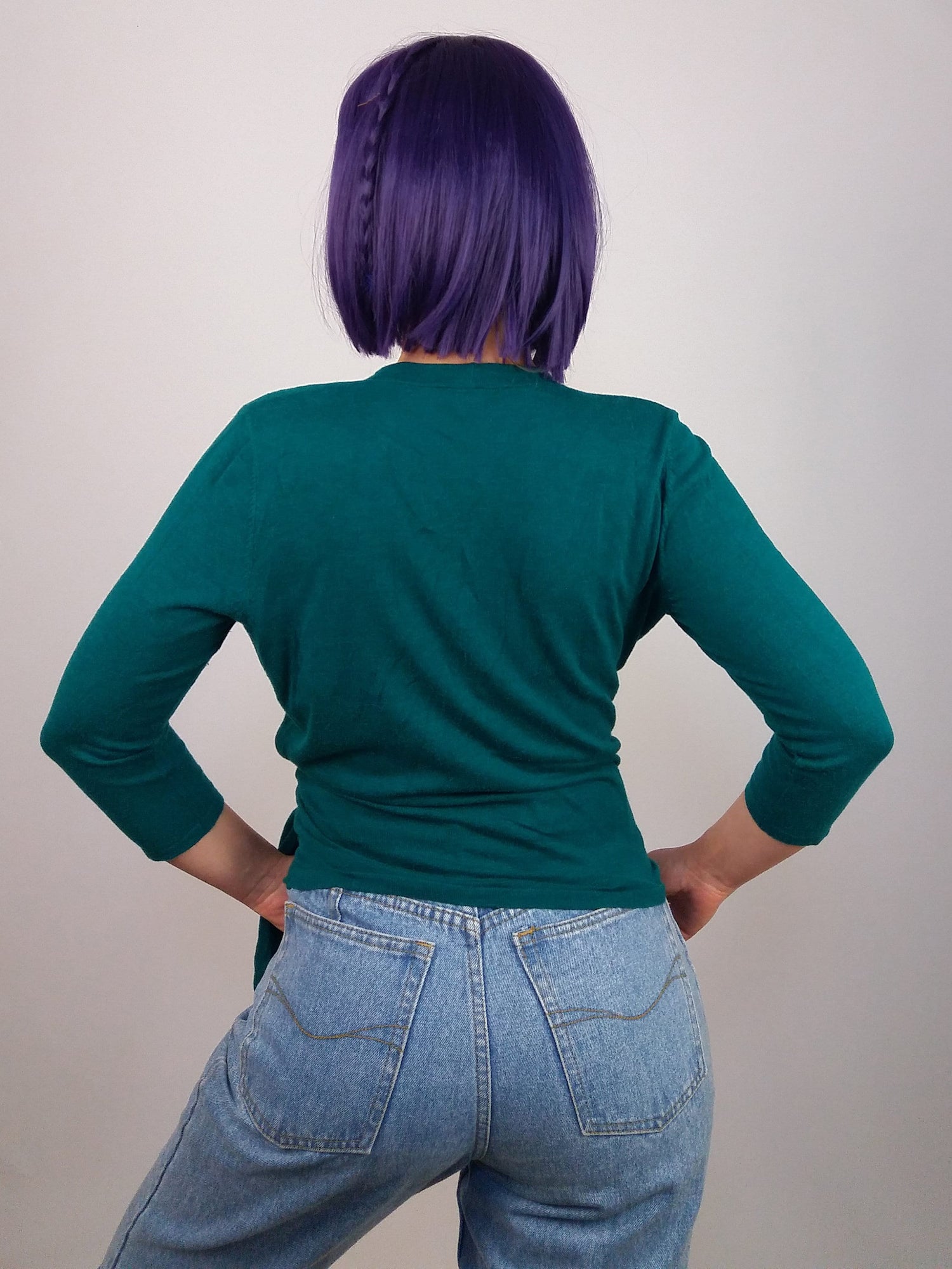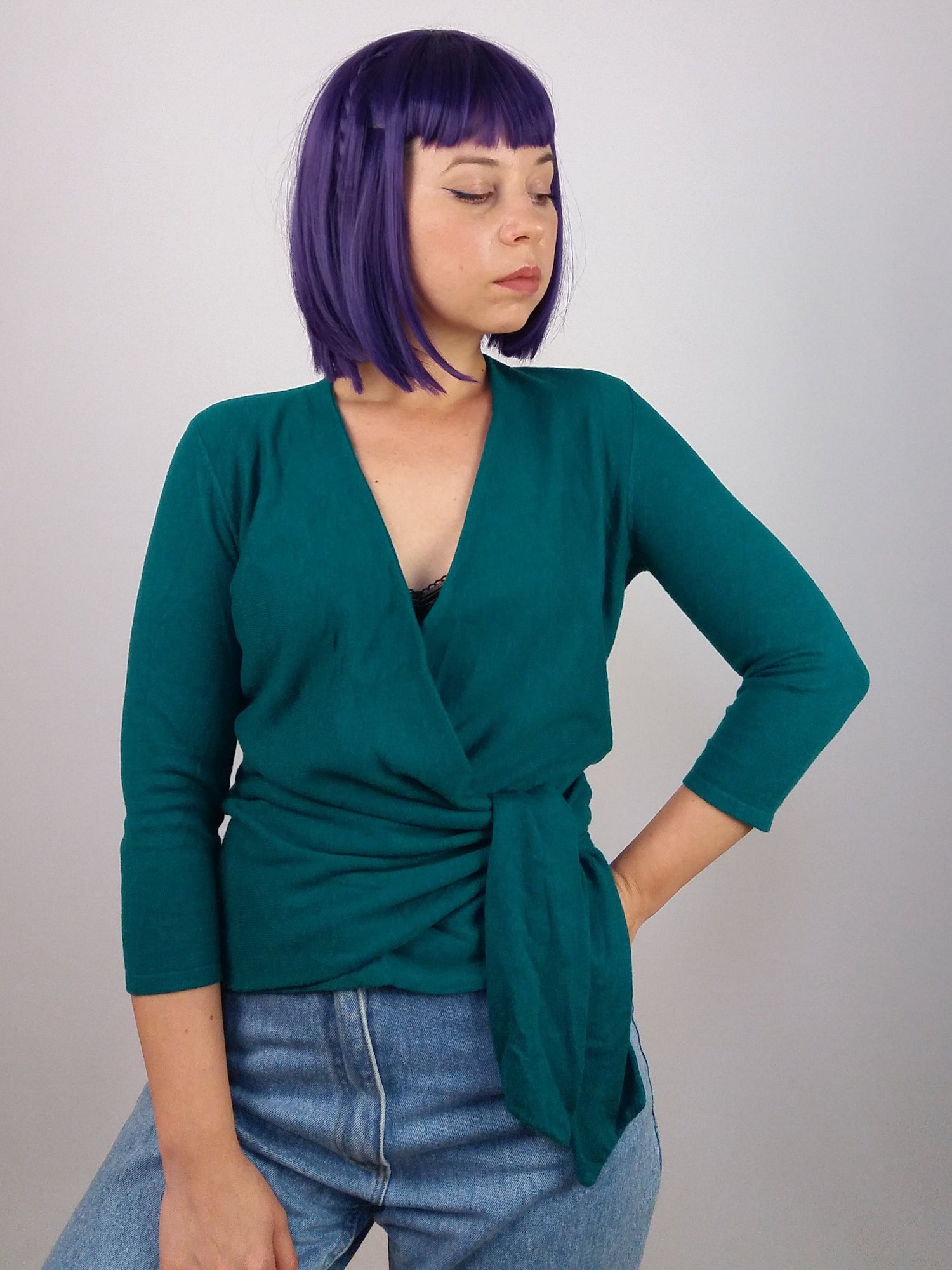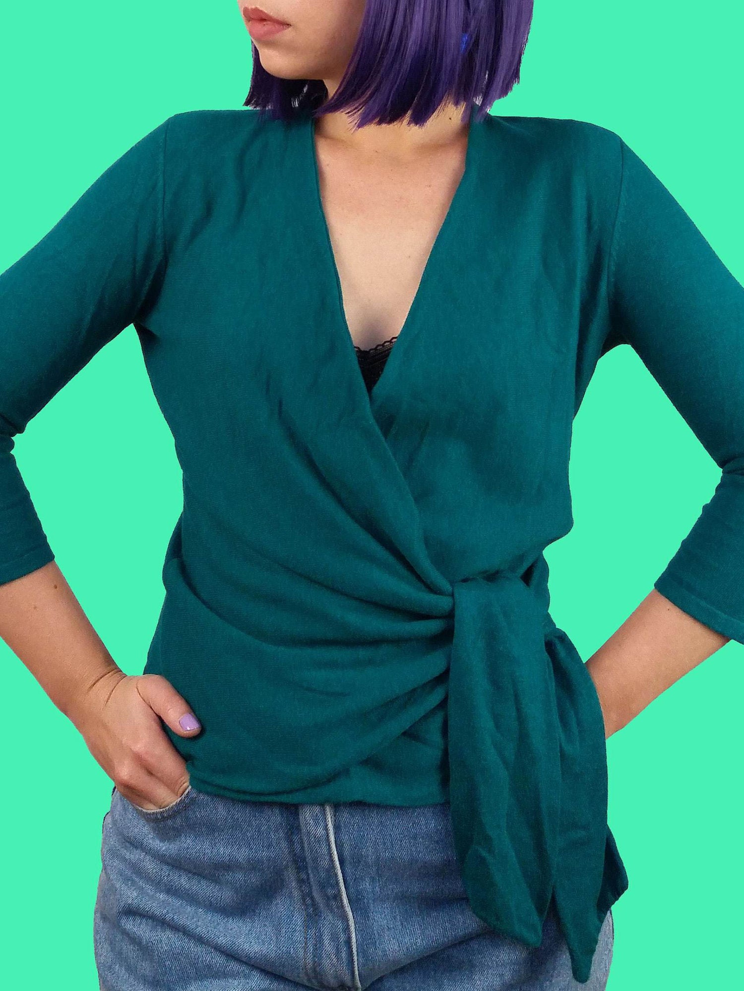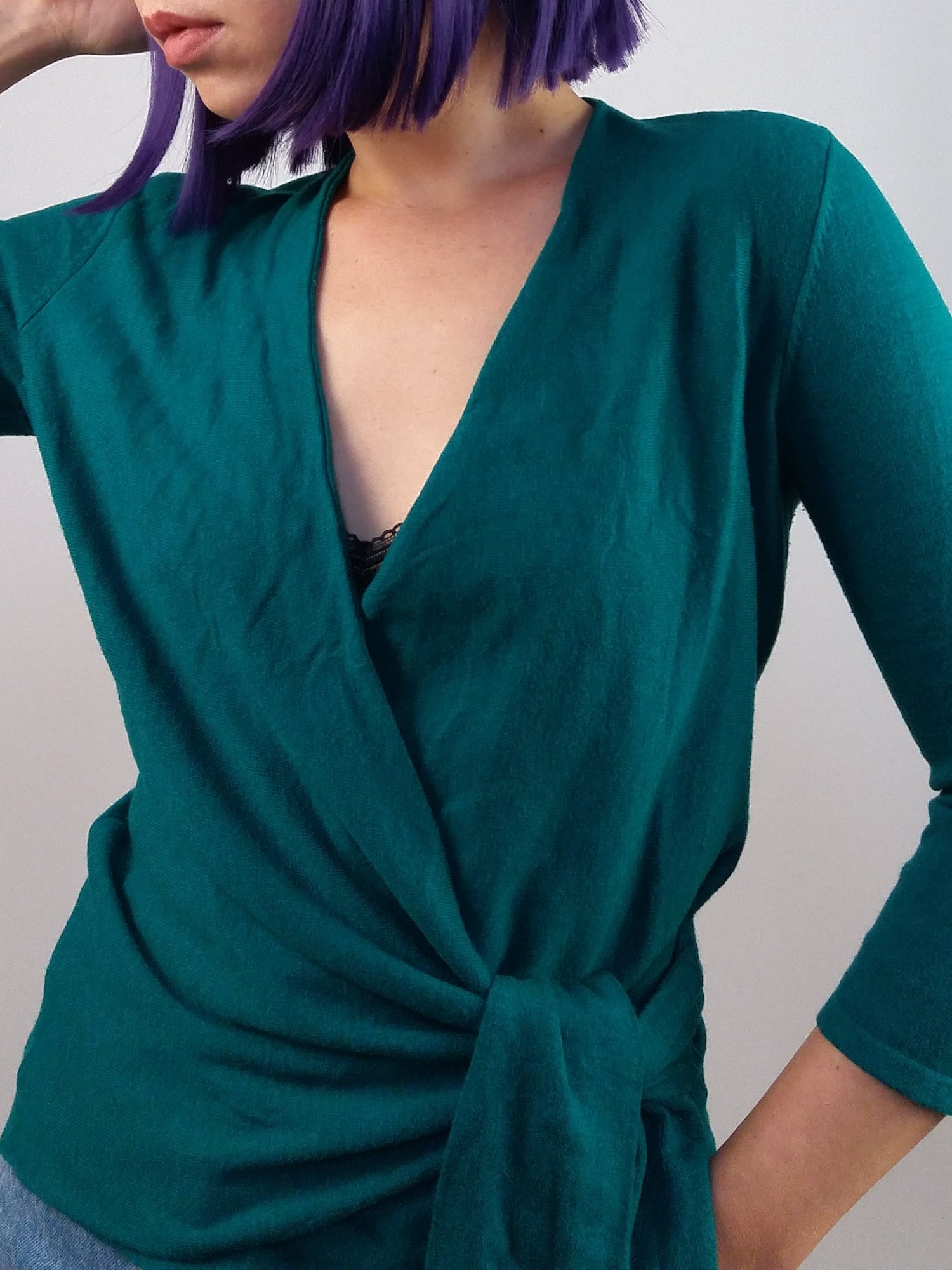 Gorgeous ANN TAYLOR soft knit wrap cardigan, tie detail, 3/4 sleeves, beautiful teal colour.