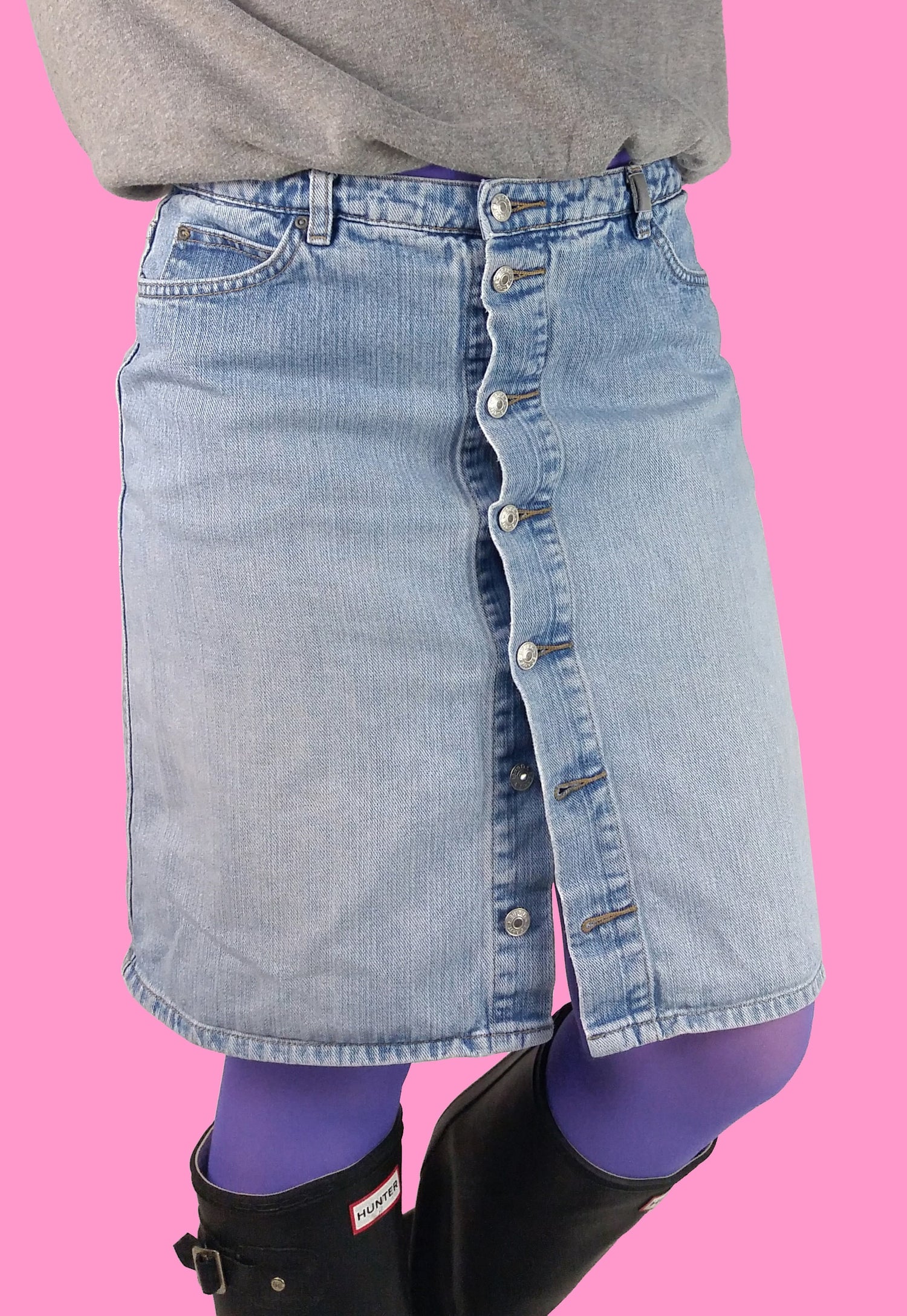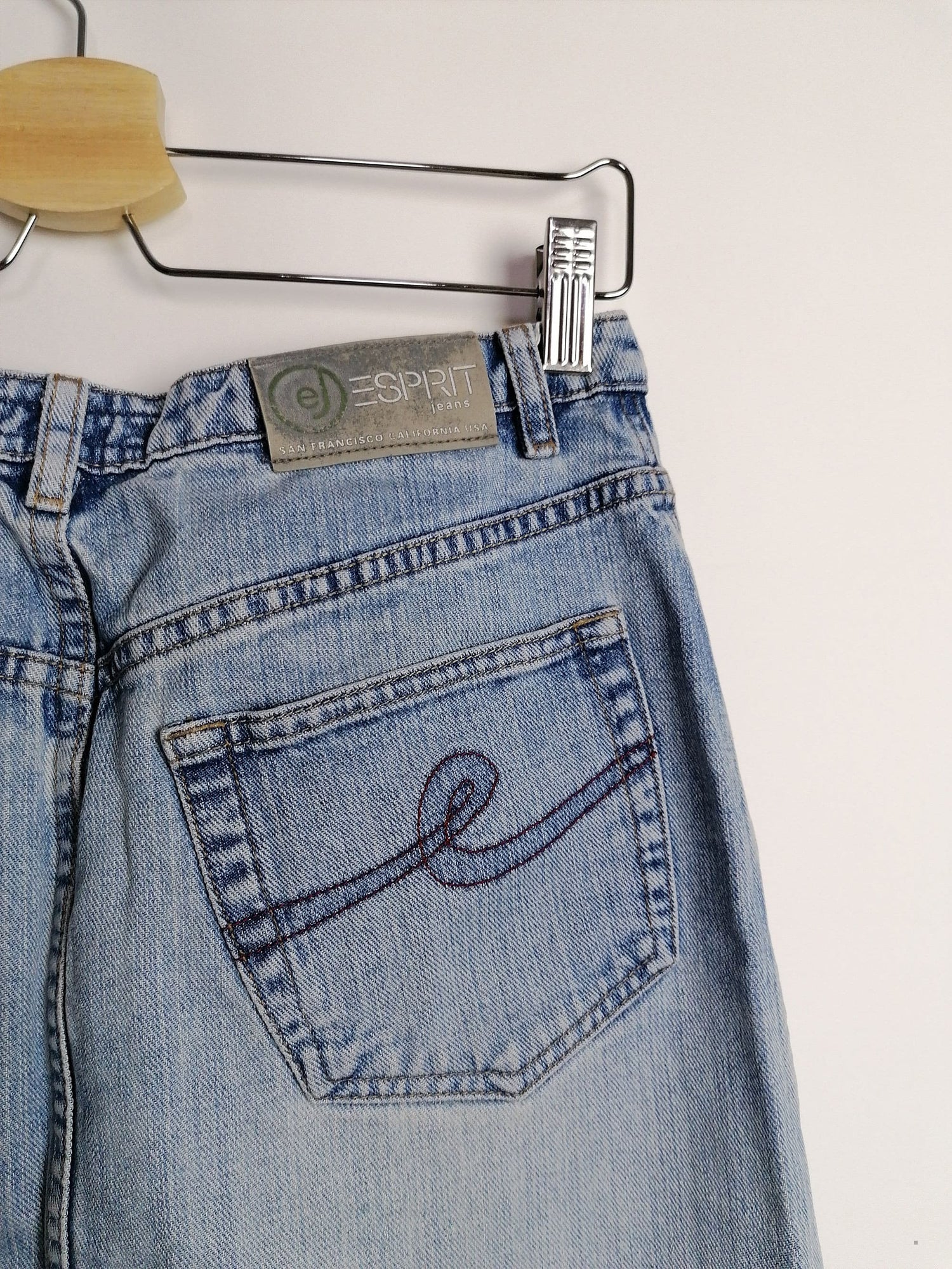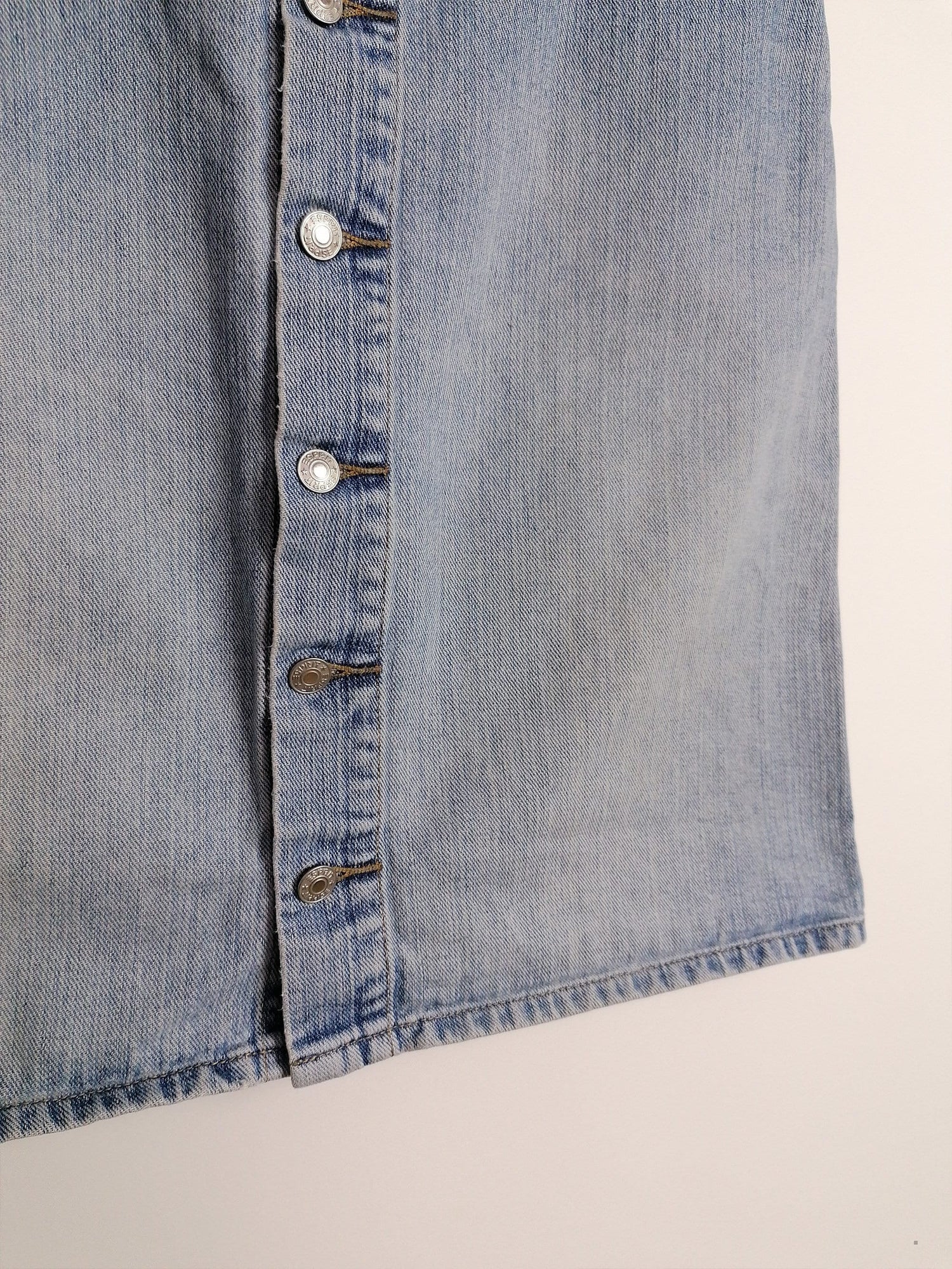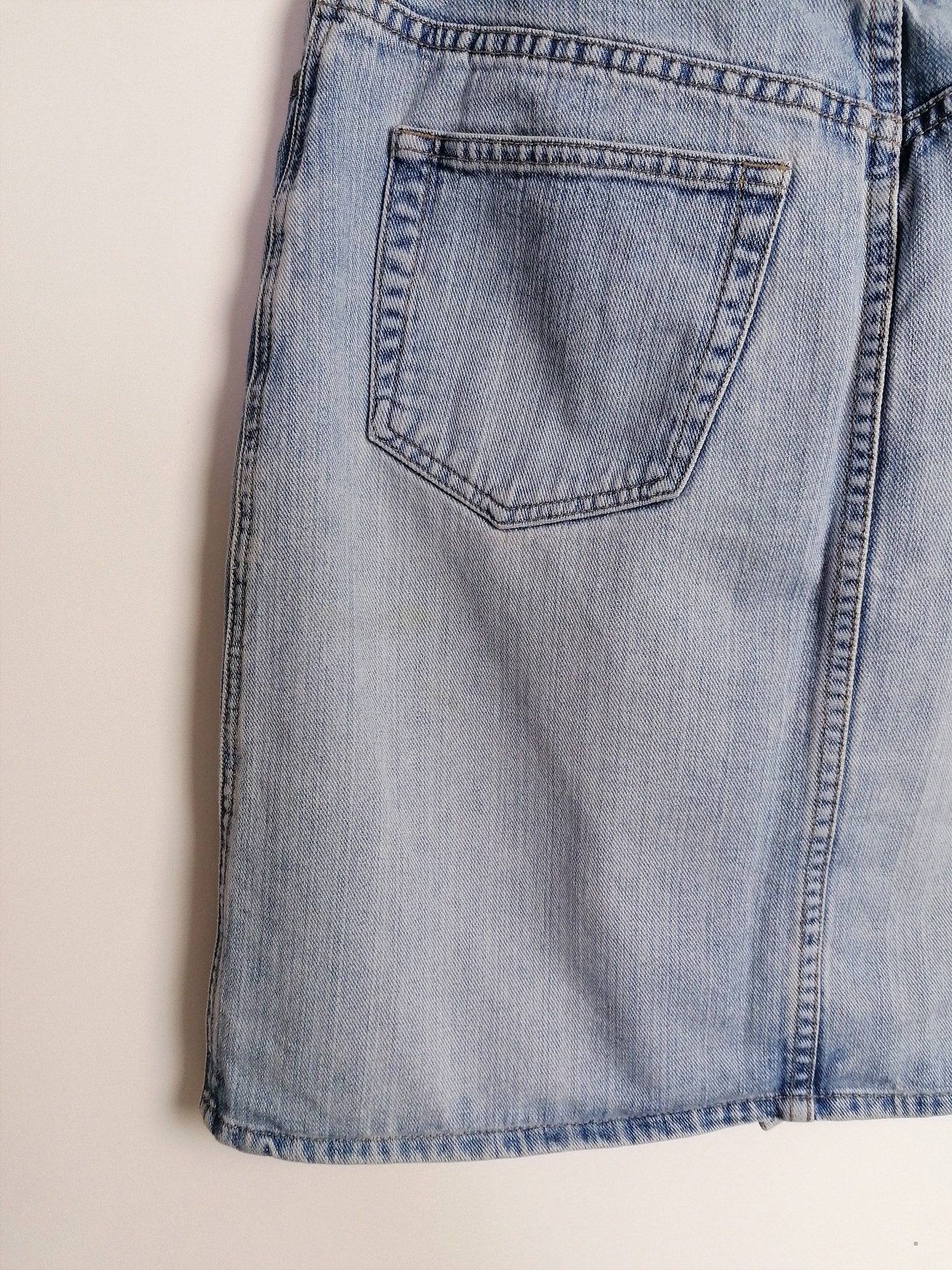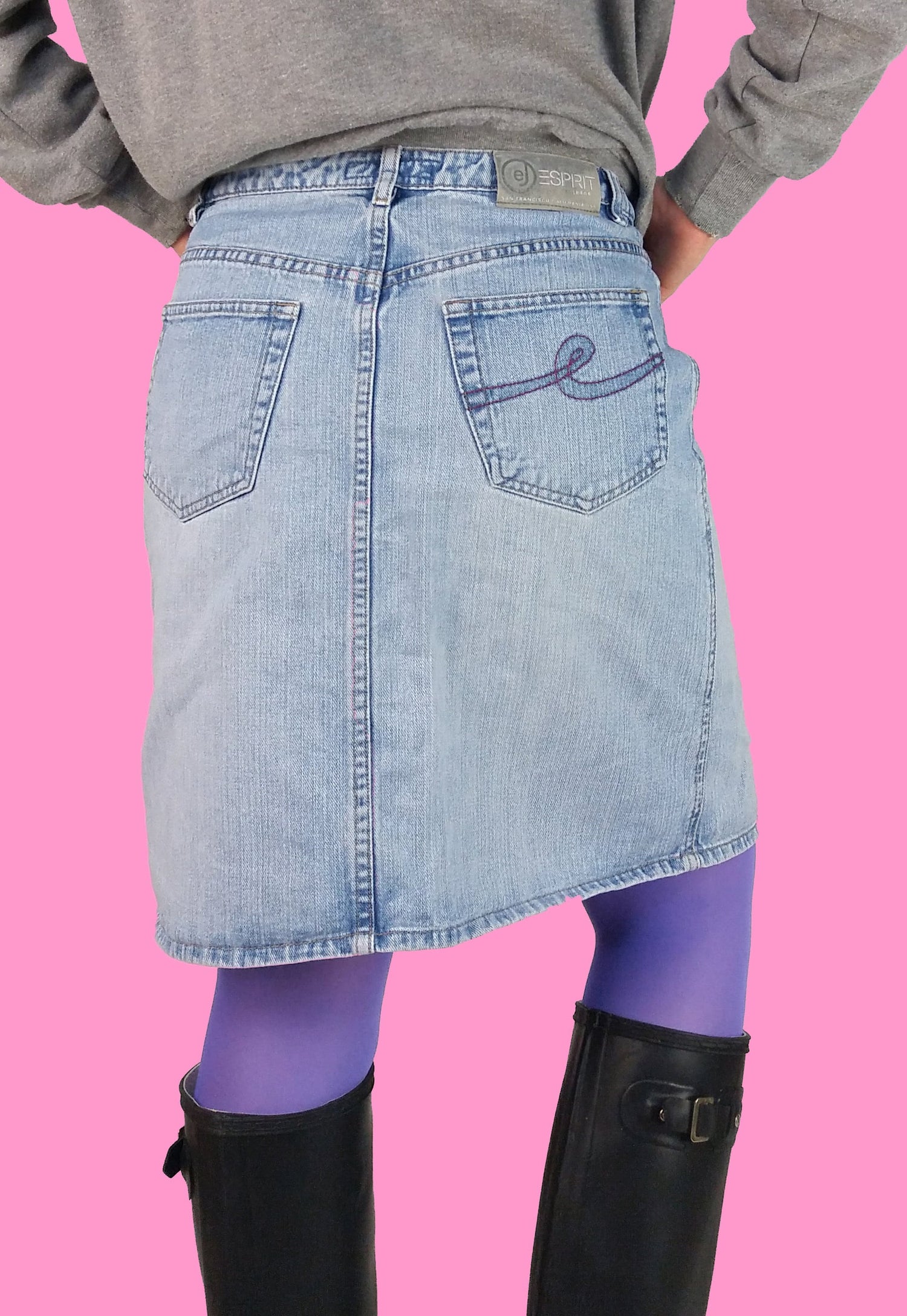 Gorgeous 90's Esprit denim skirt, front buttons. Quality denim, light stonewash.