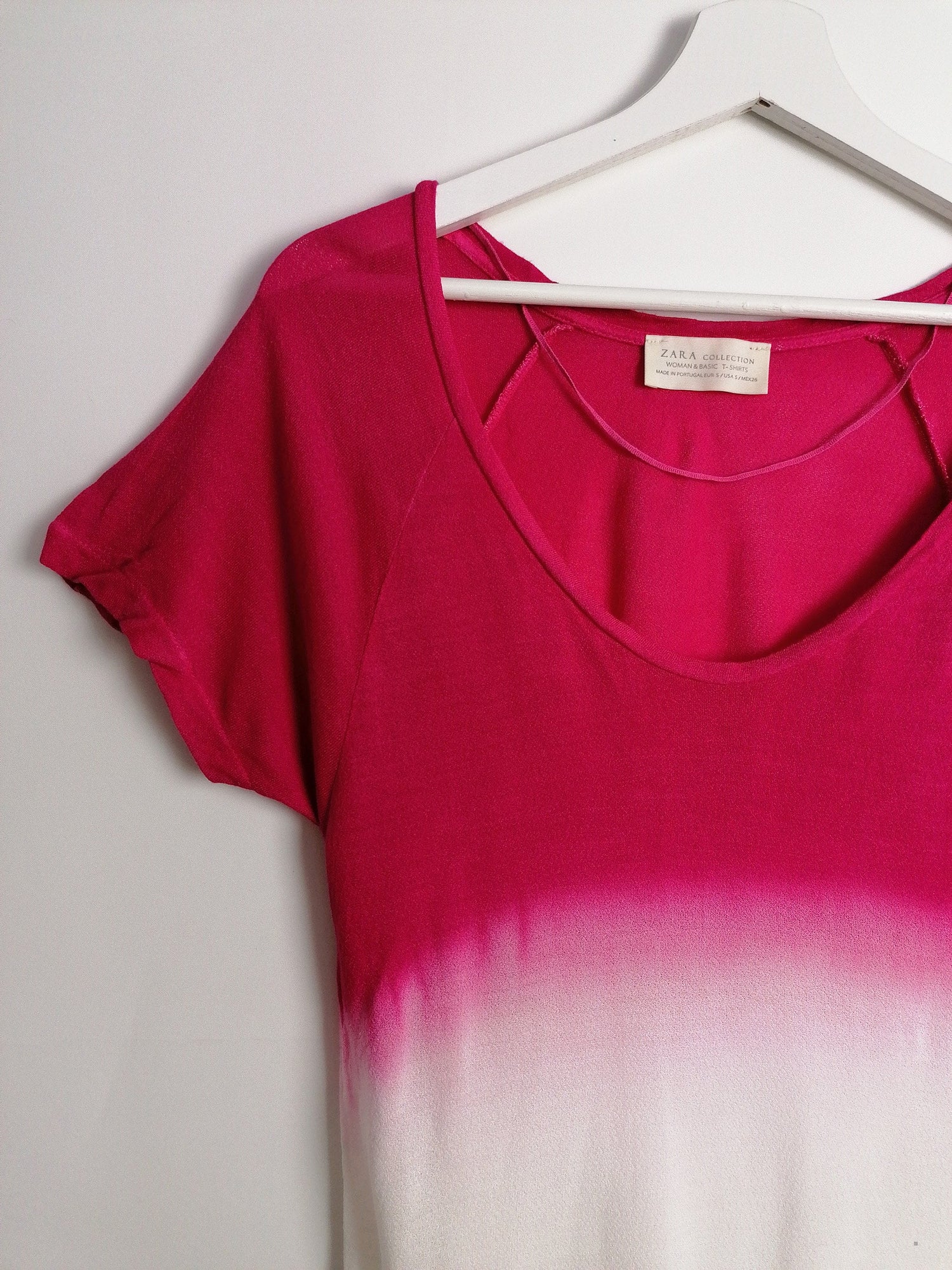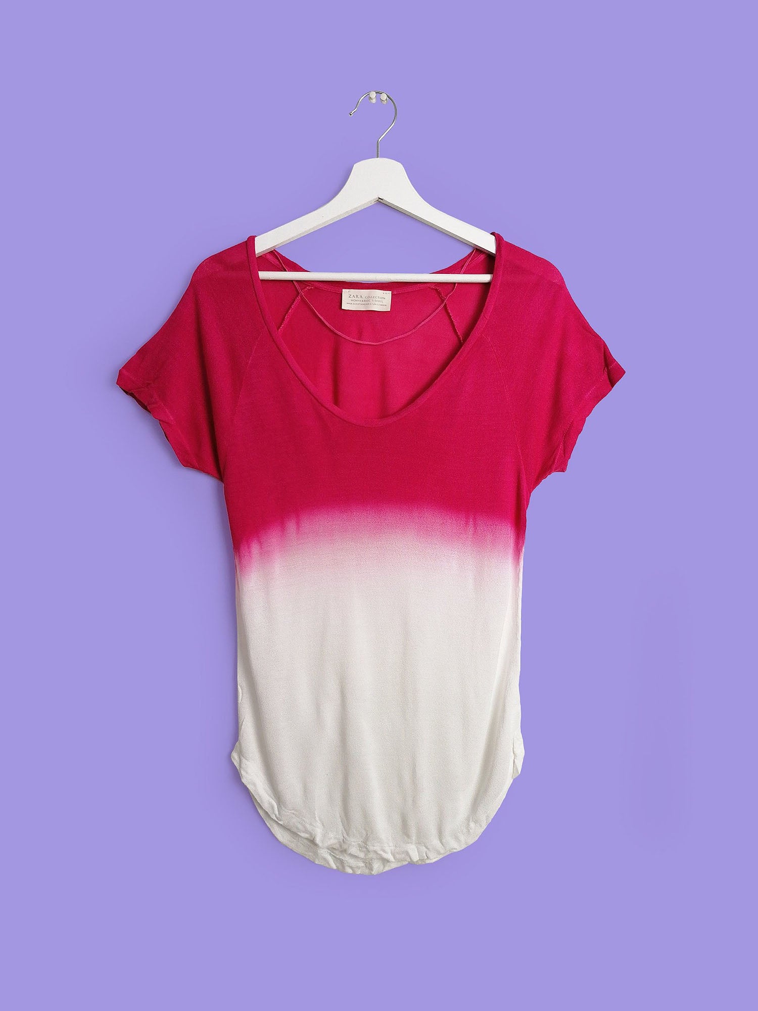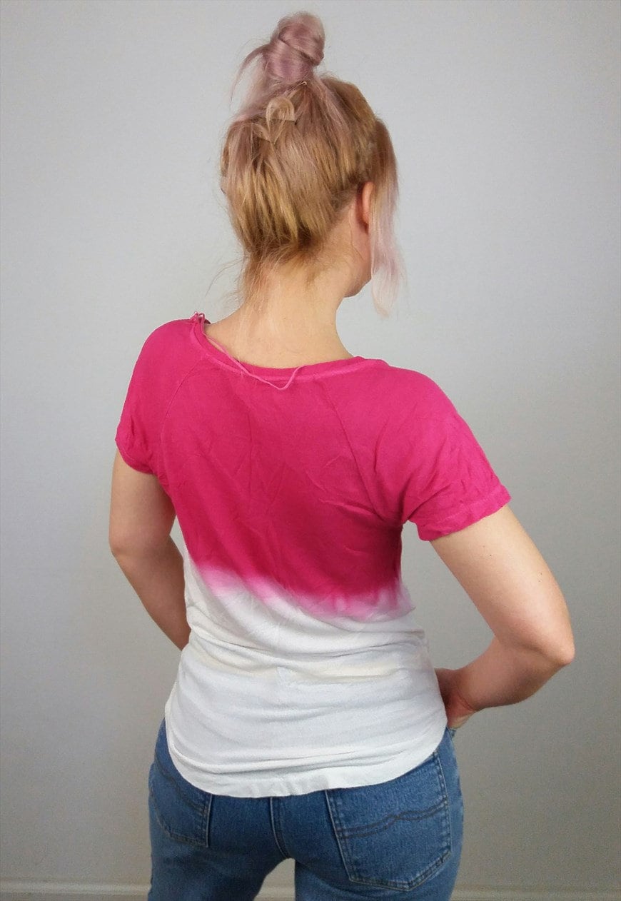 Vintage loose top, softest stretch knit fabric, easy and light, beautiful ombre pink on white, slightly see-through, large boat neck.