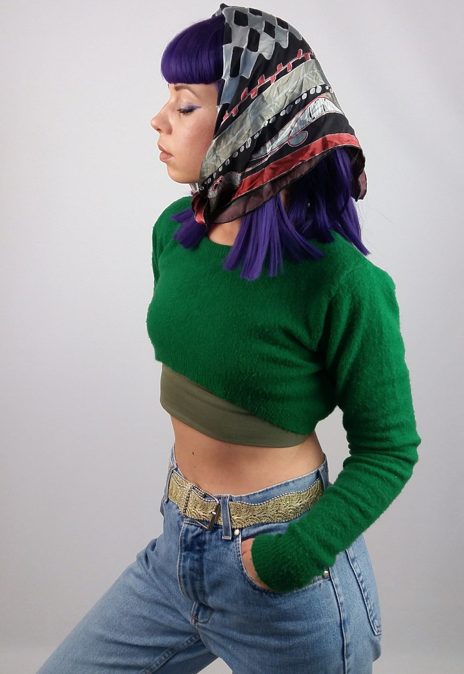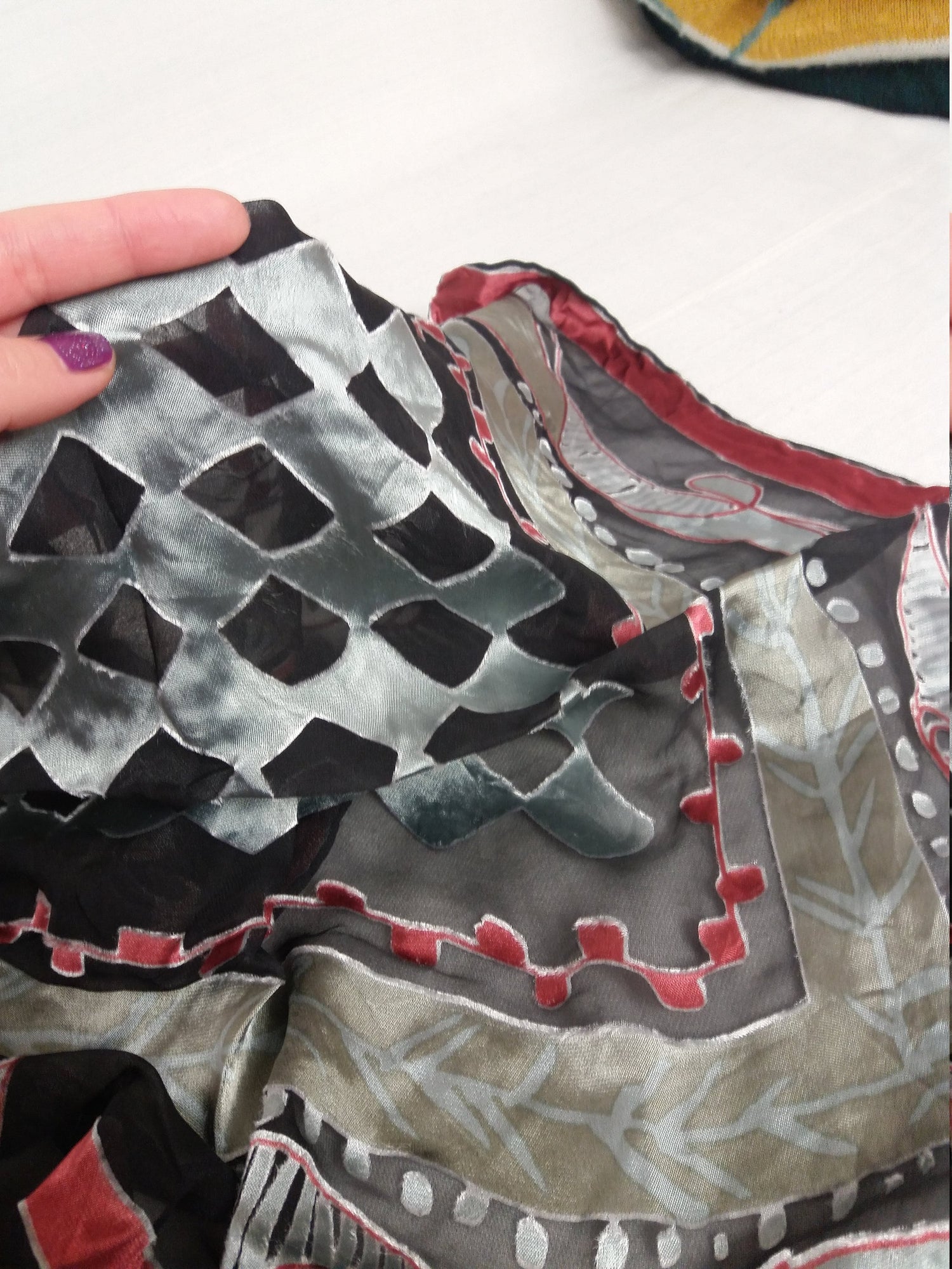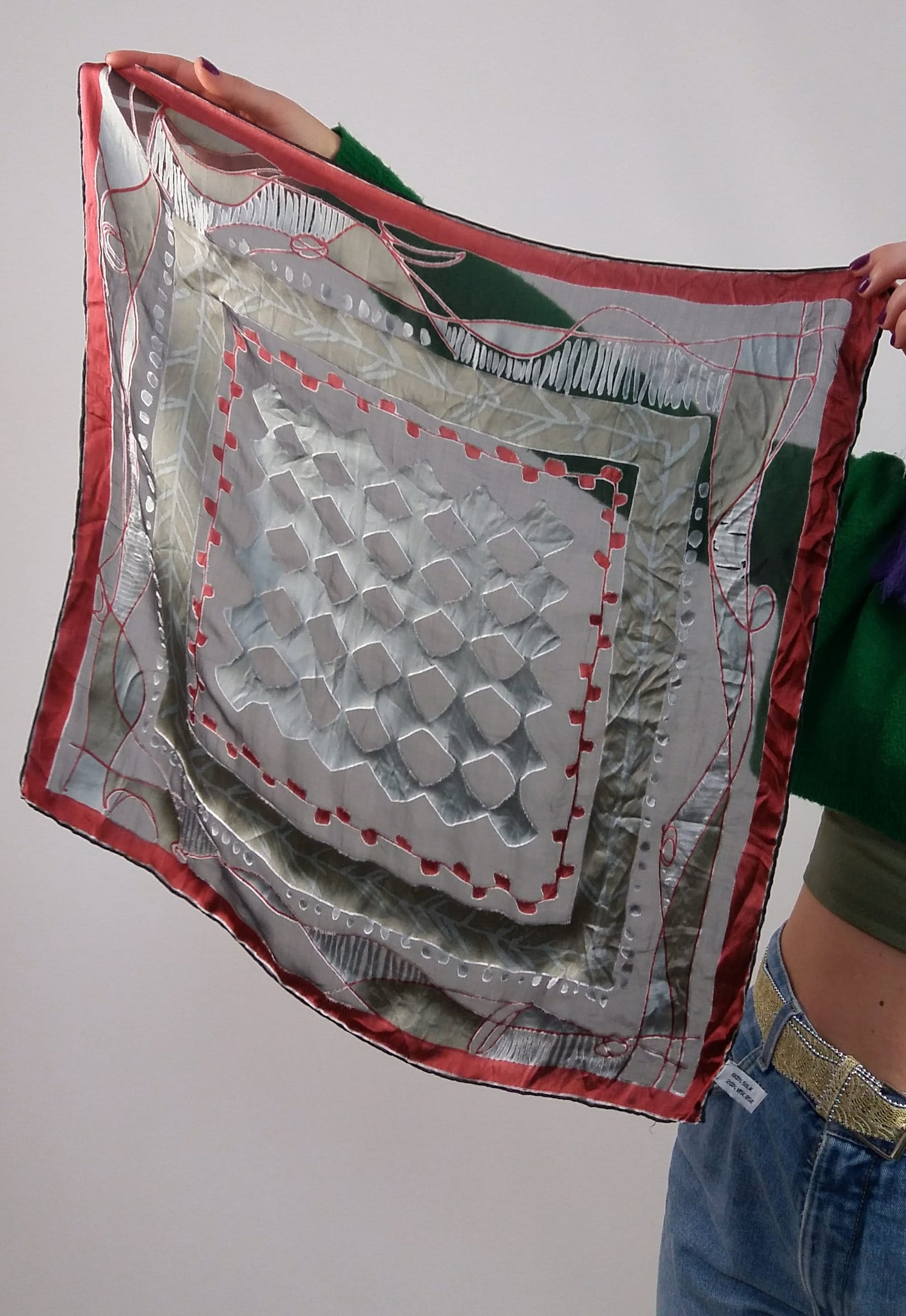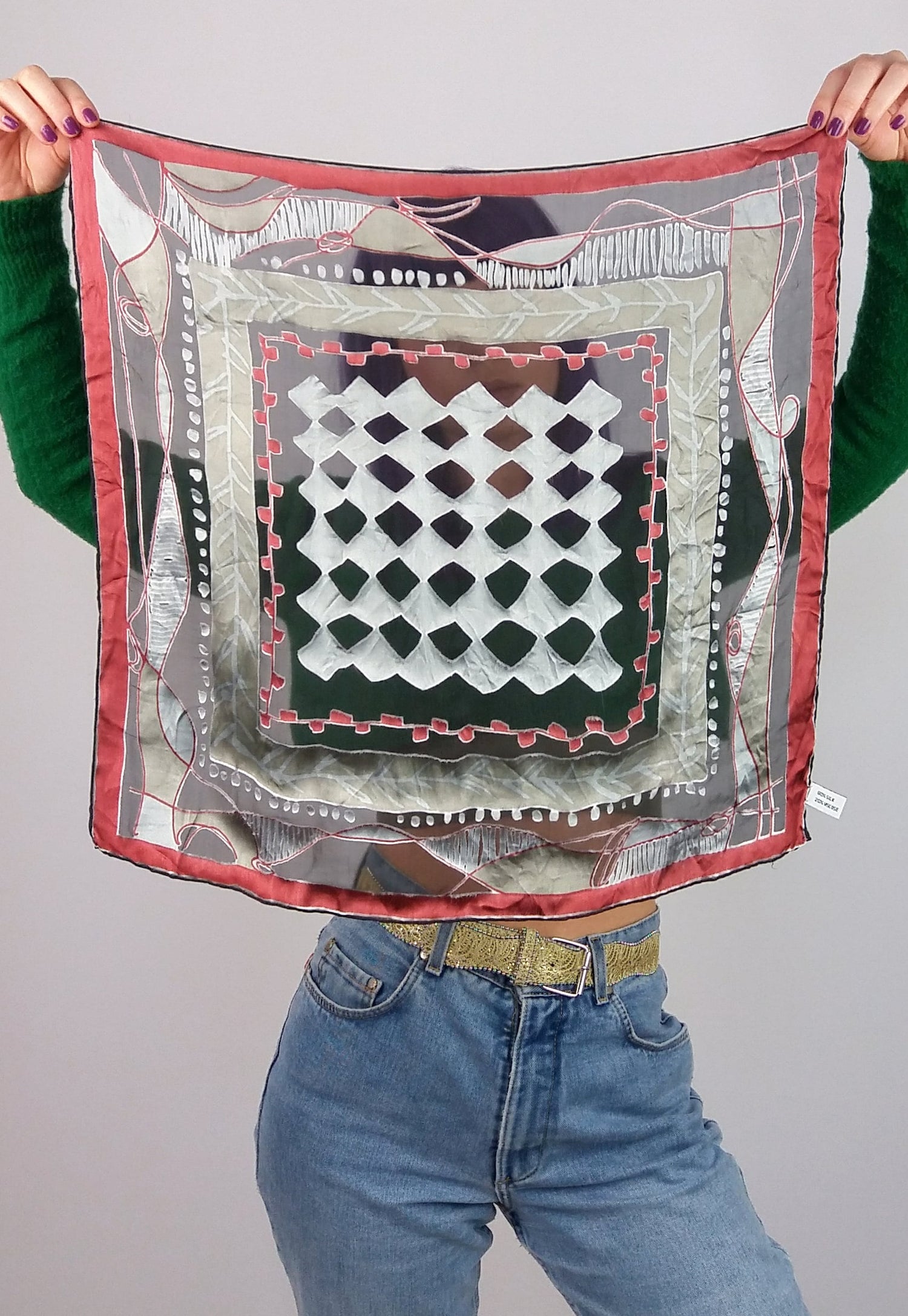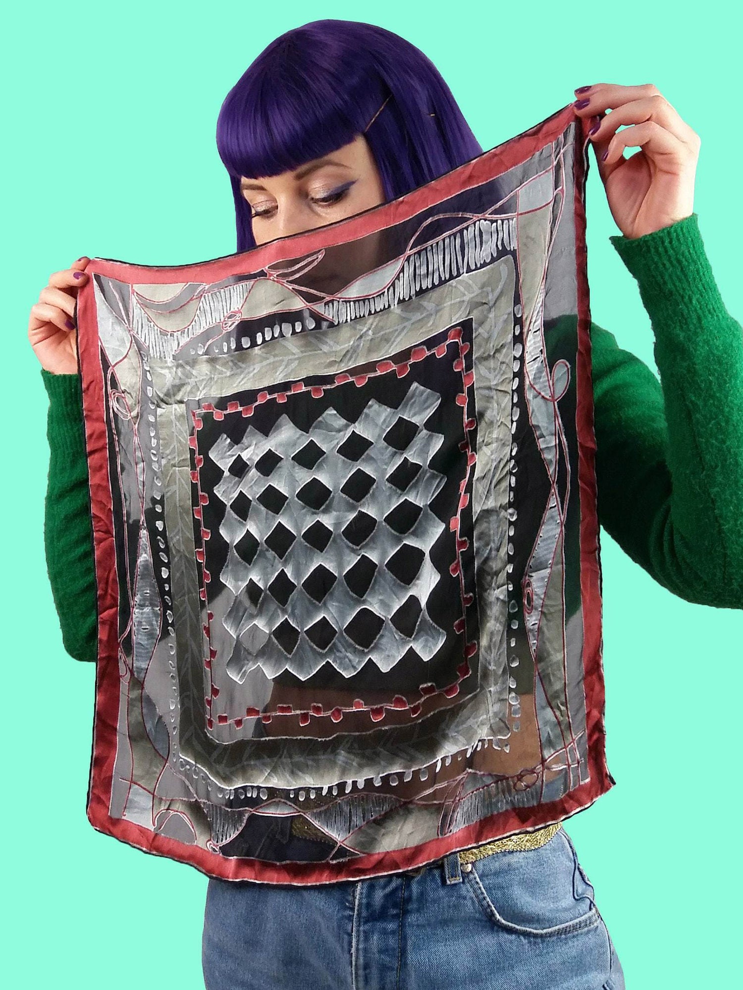 Gorgeous vintage square scarf, retro pattern.