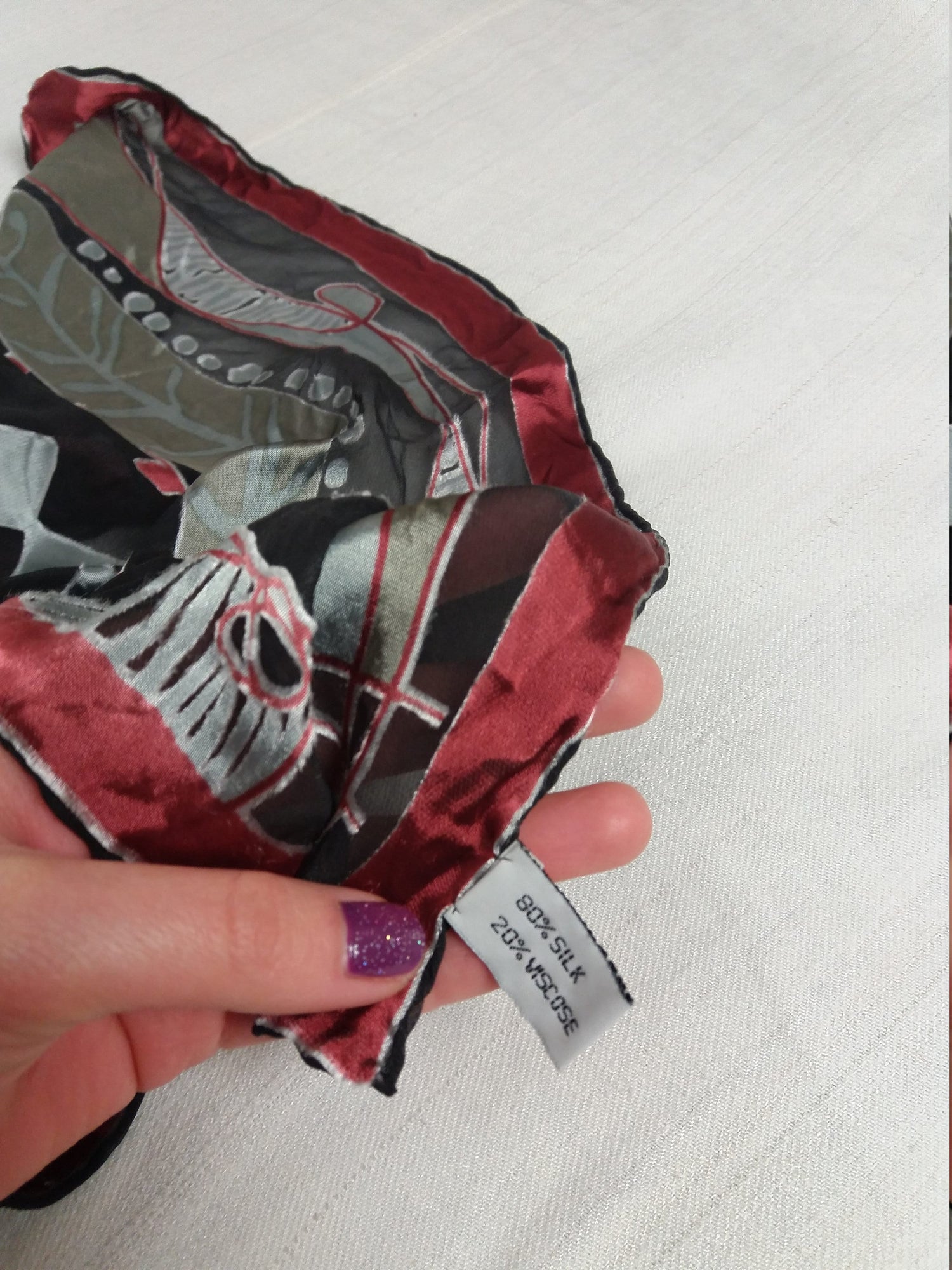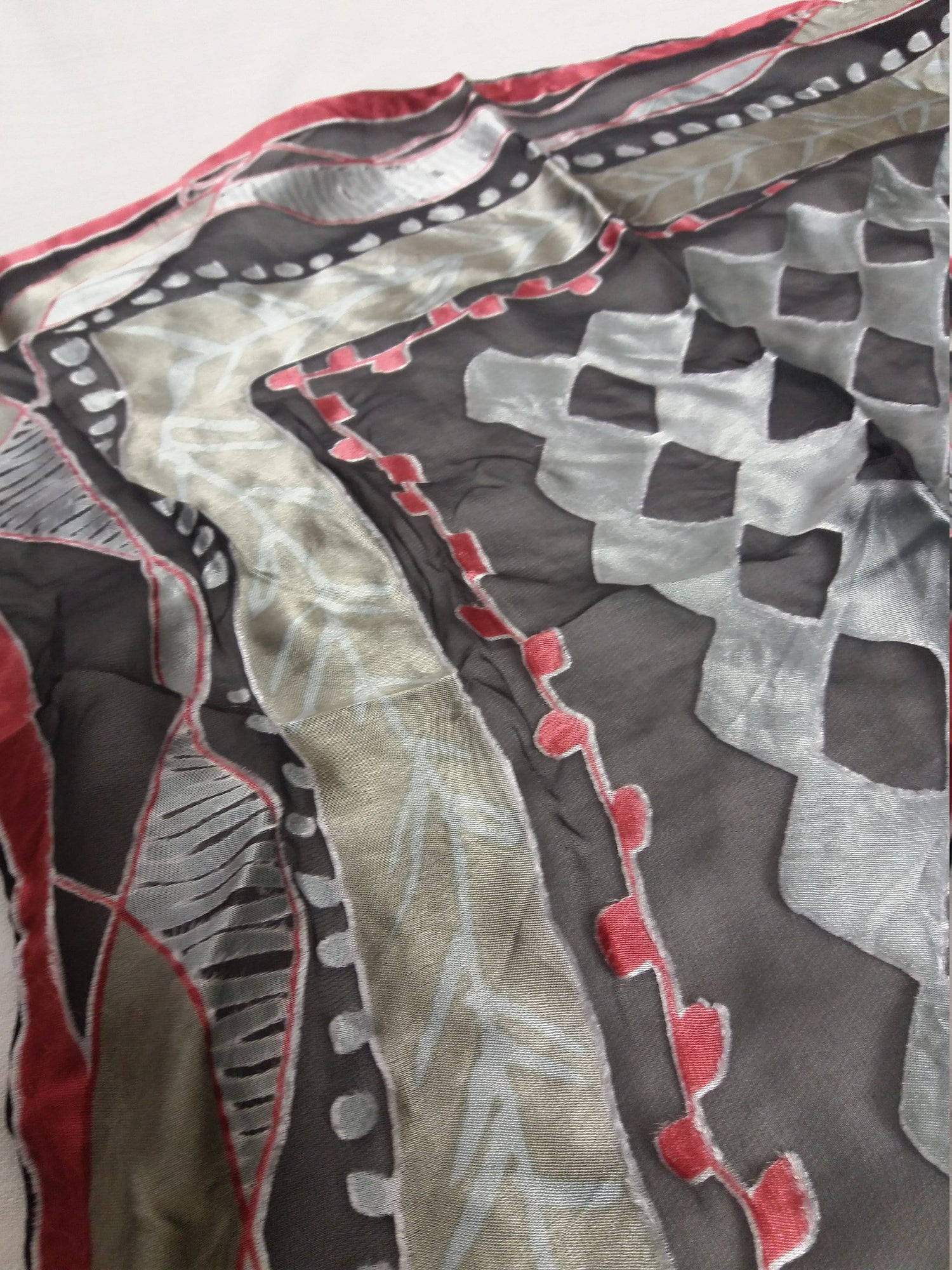 Retro Silky Scarf Silver Red