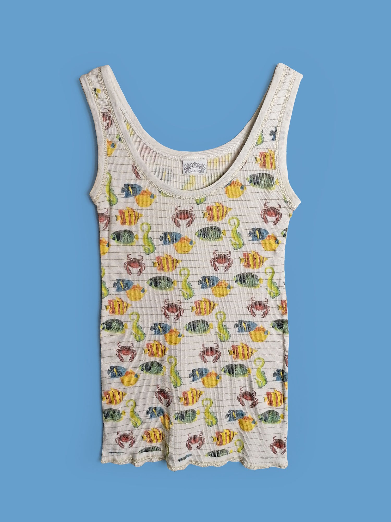 Vintage Y2K Ribbed Tank Top Fish Print - M