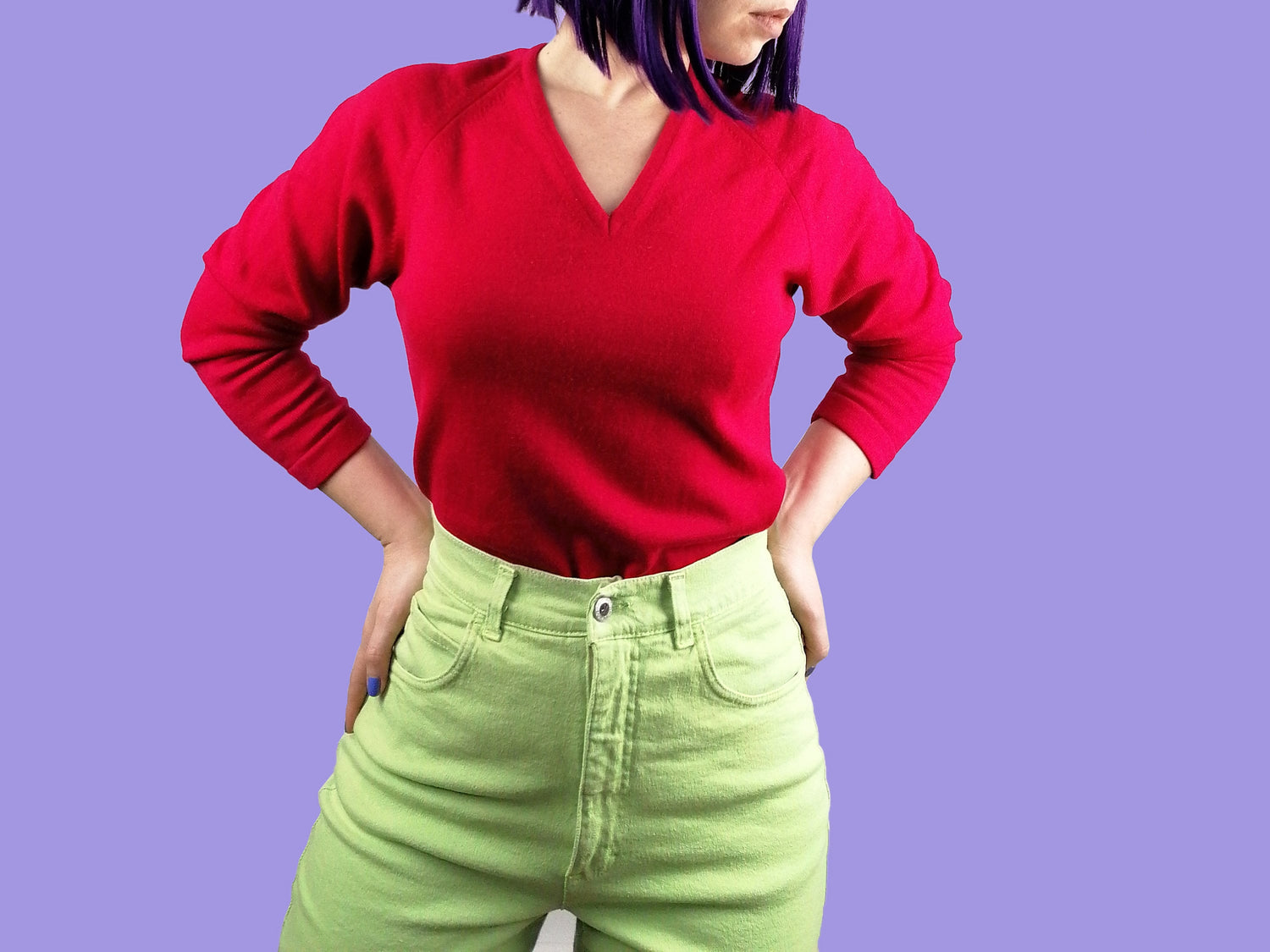 Gorgeous 80's virgin wool sweater in hot pink, 3/4 sleeves.