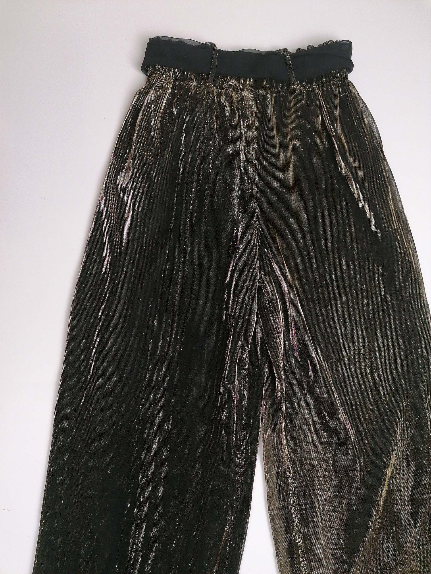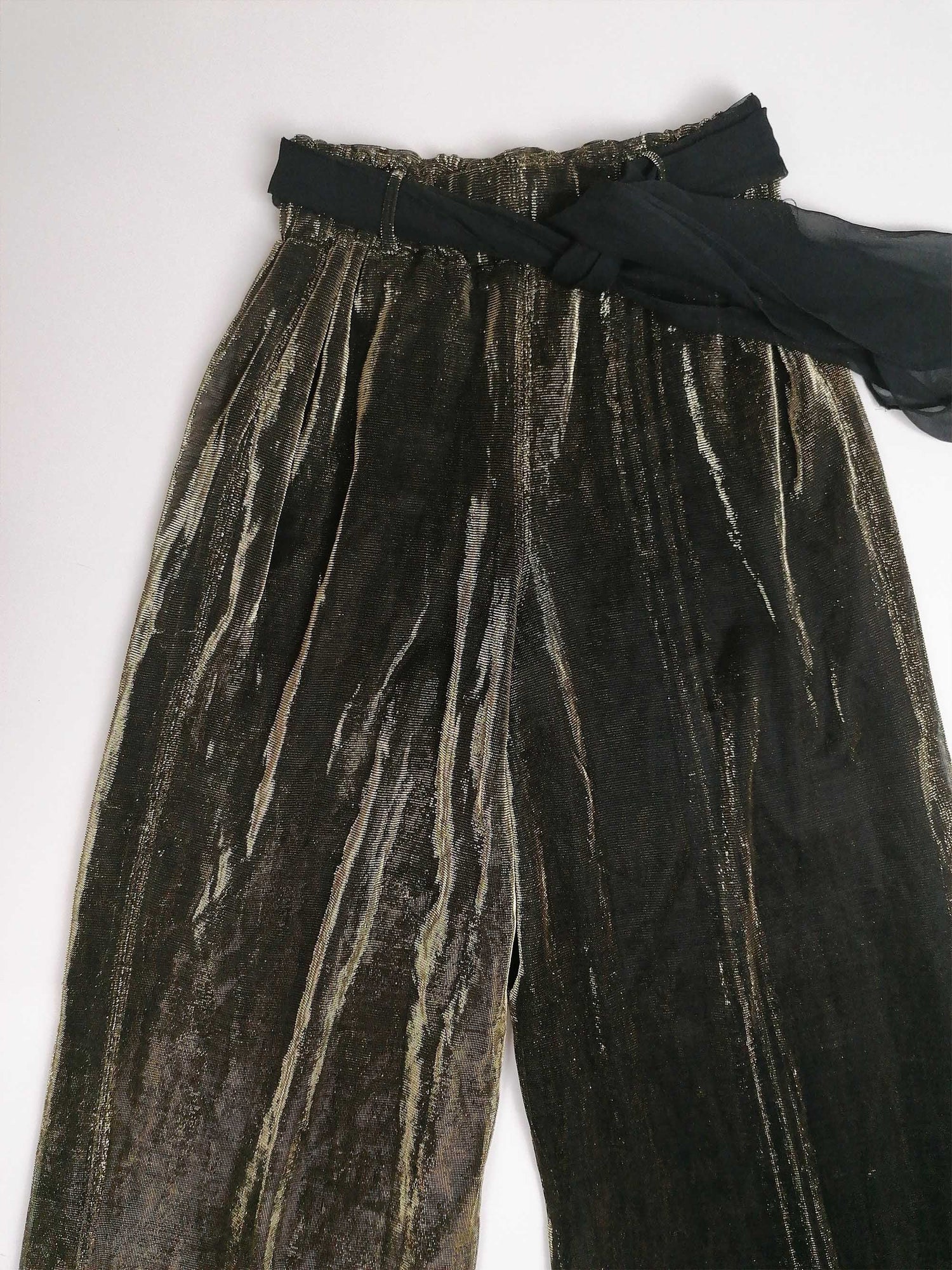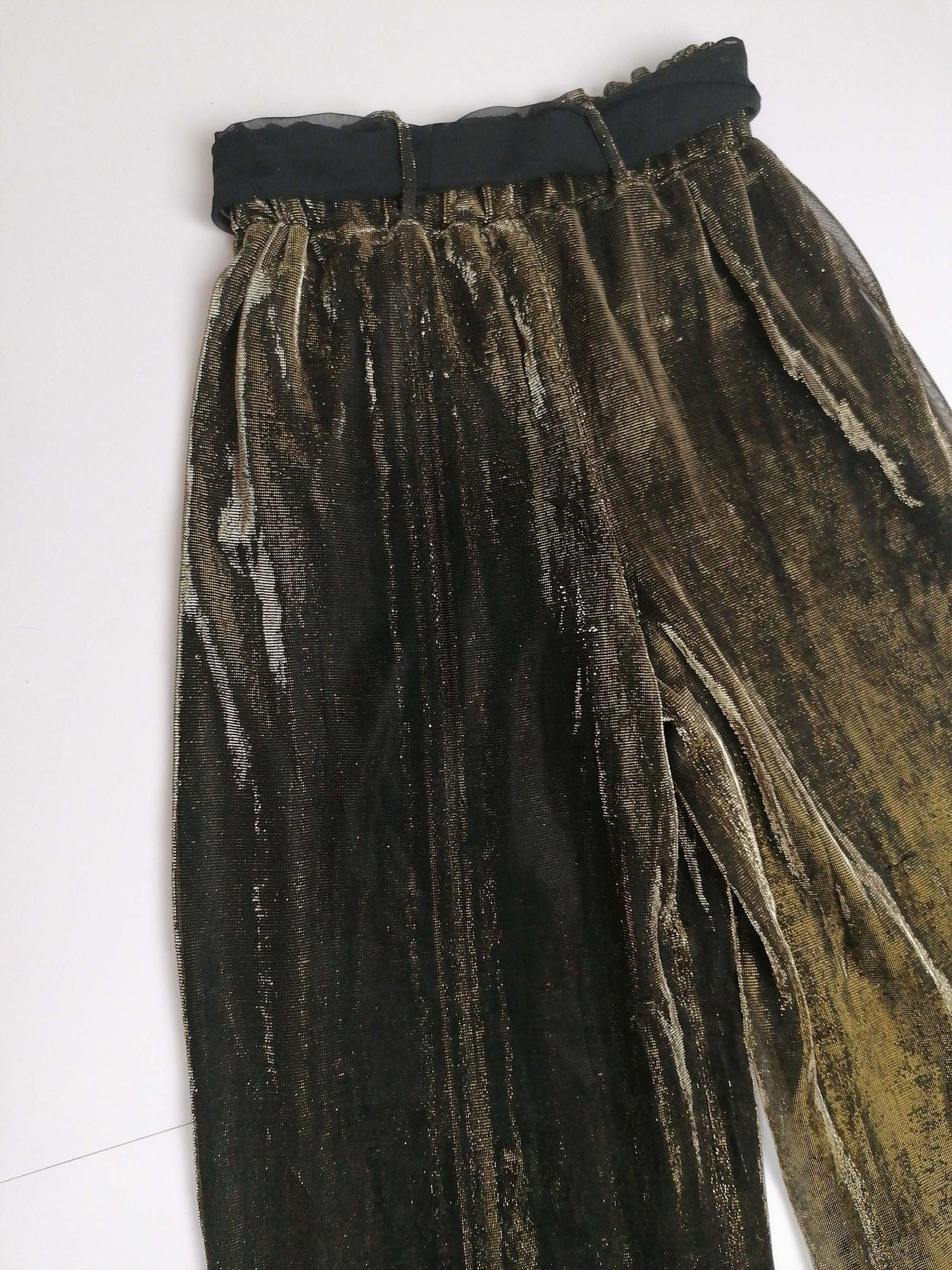 Stunning 80's 90's high waist wide leg trousers, double-layered, top layer is a gold thread micro-mesh.