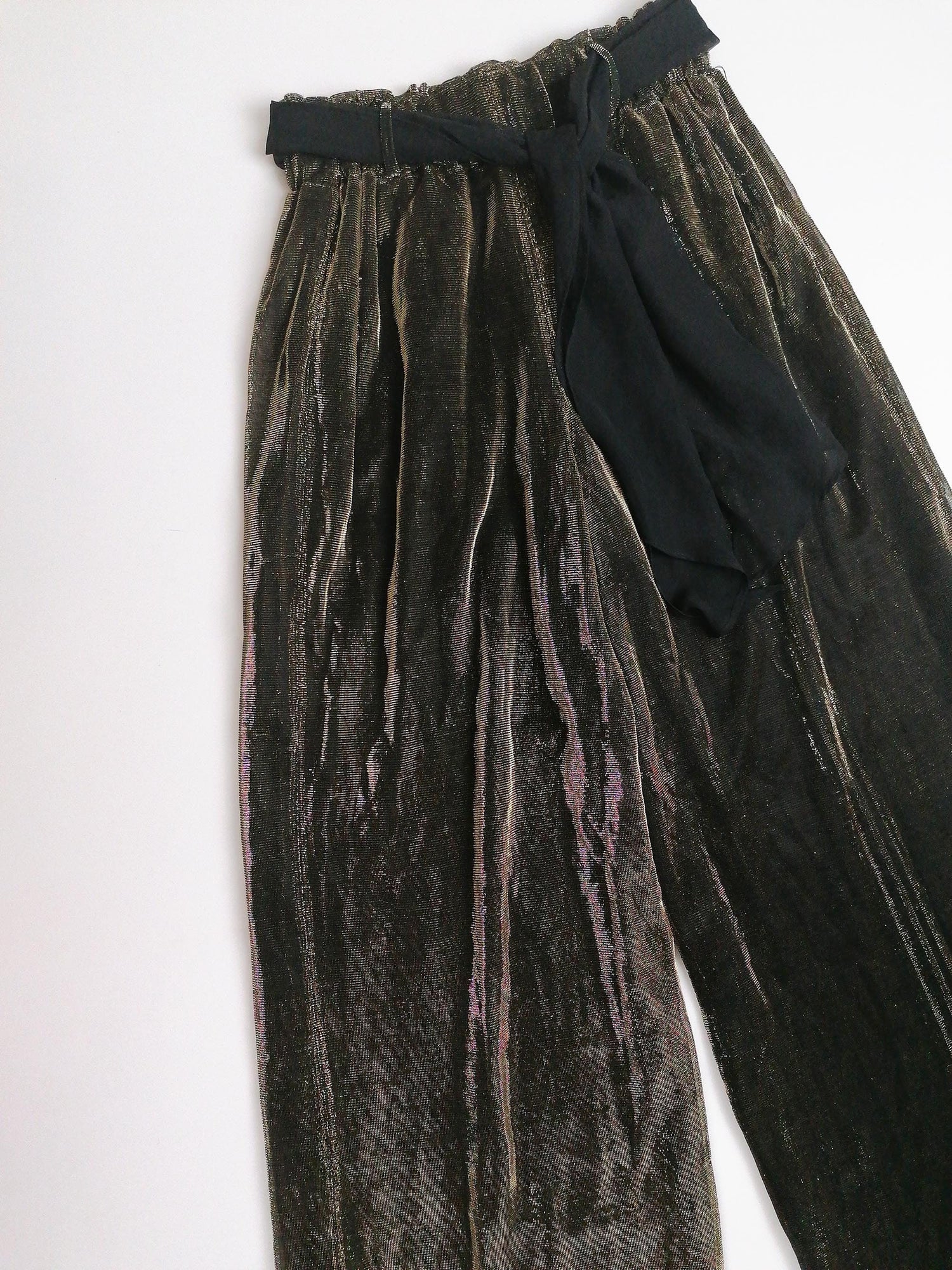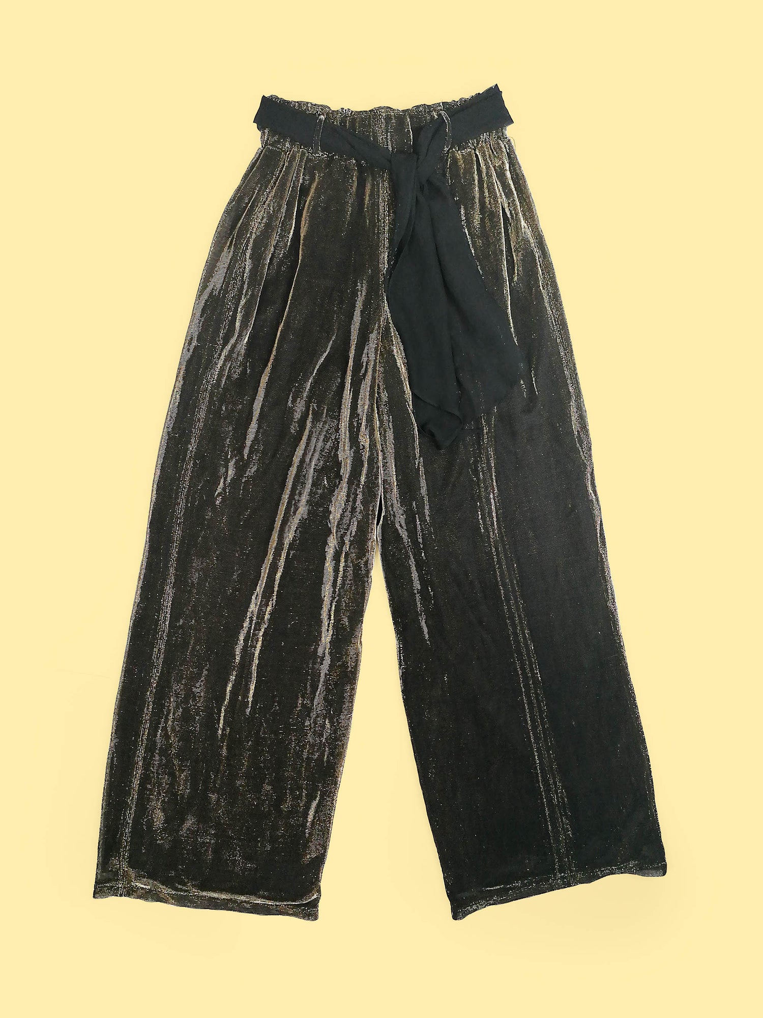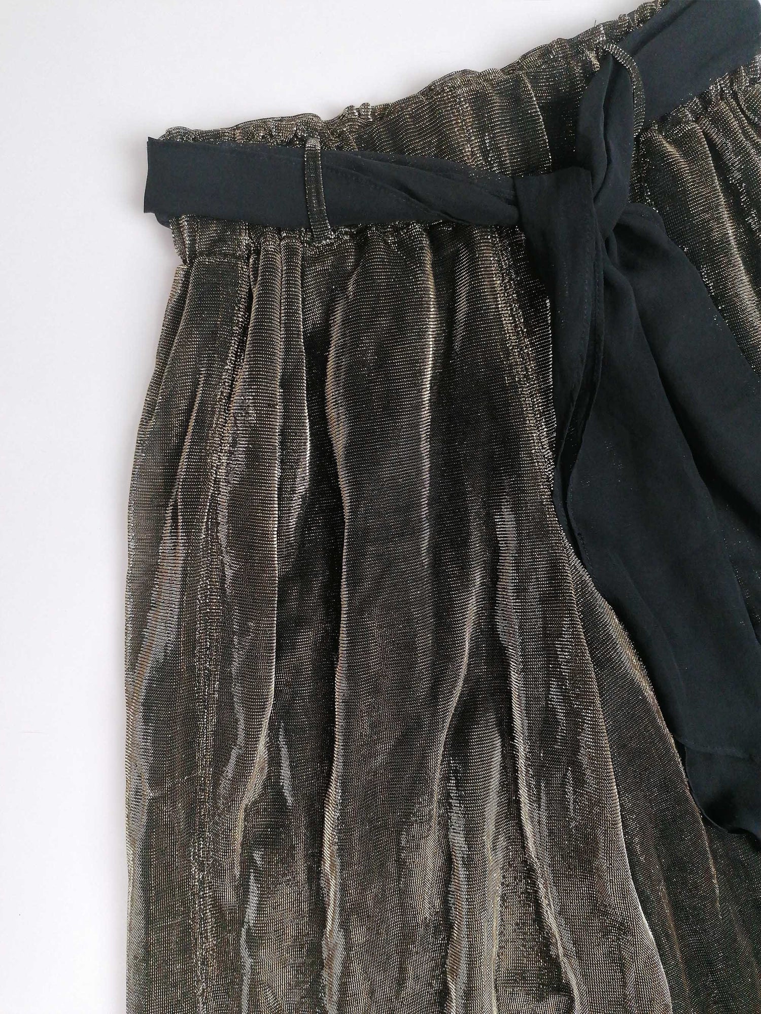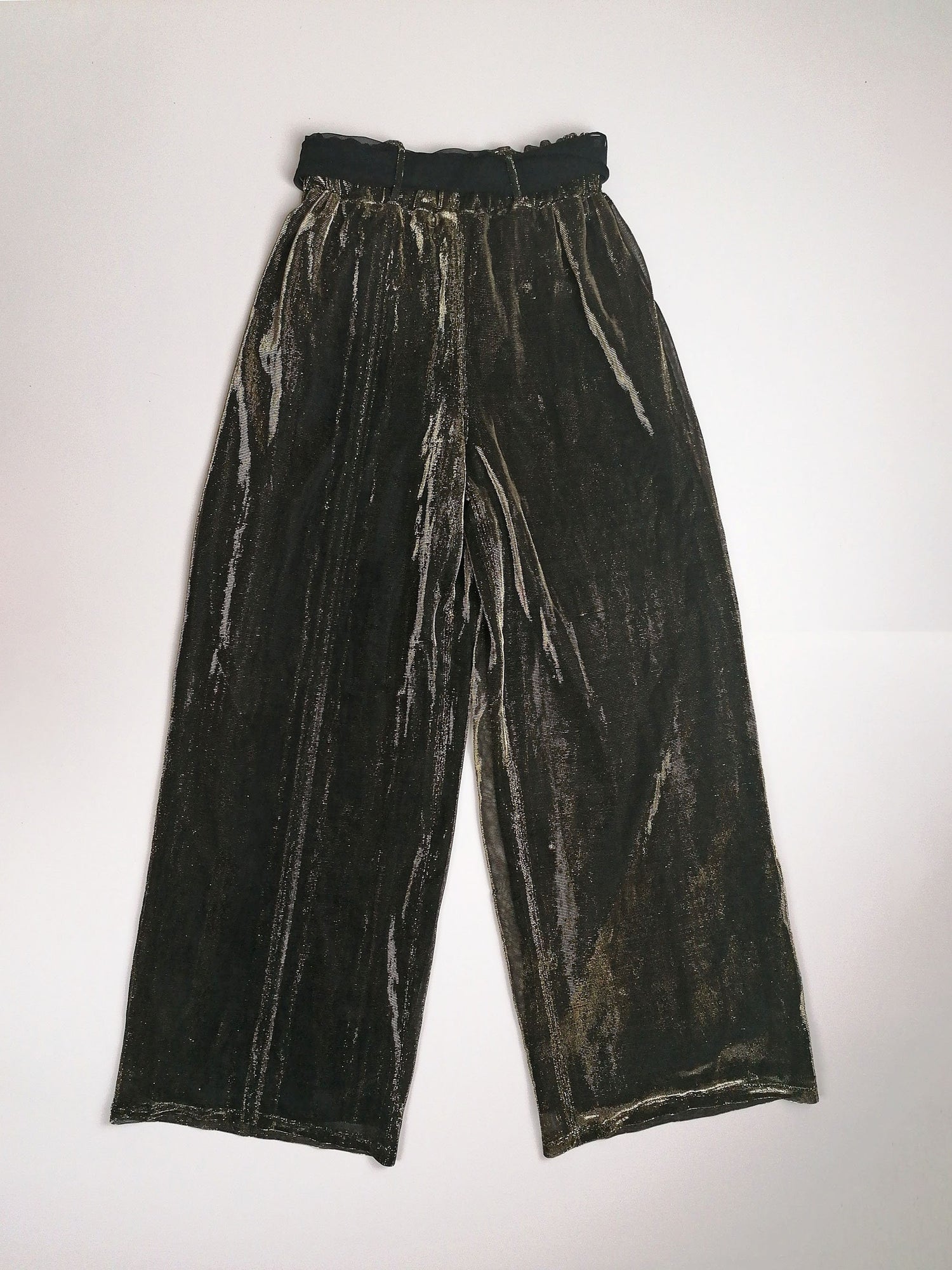 Stunning 80's 90's high waist wide leg trousers, double-layered, top layer is a gold thread micro-mesh.
