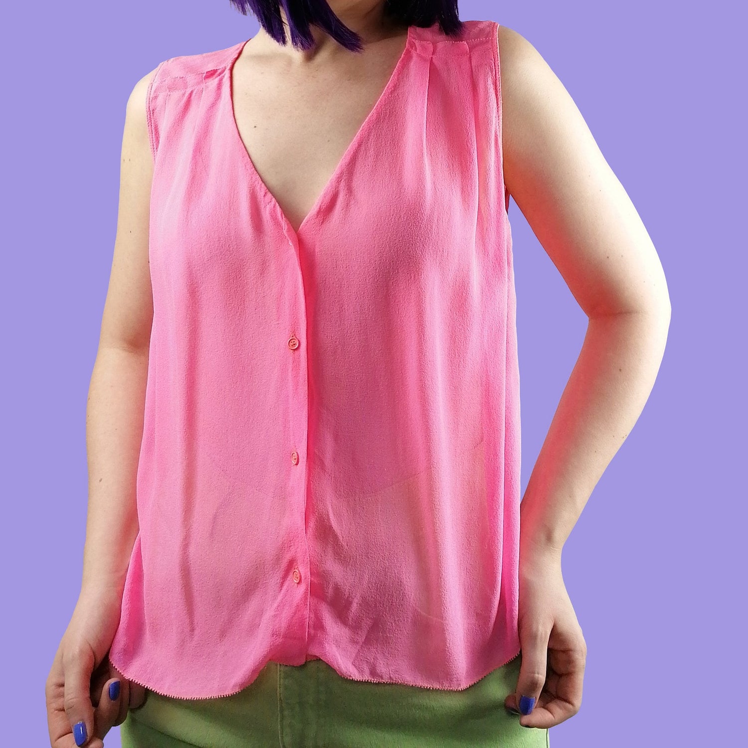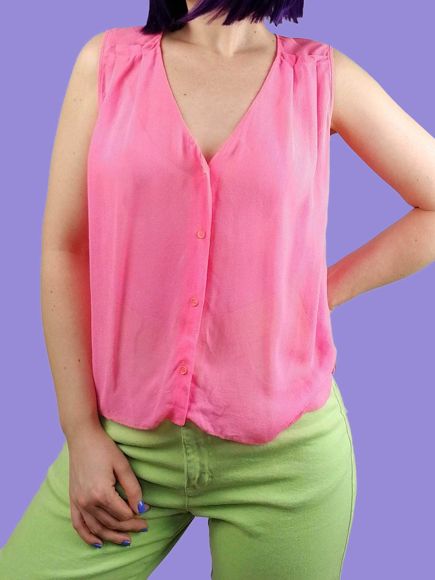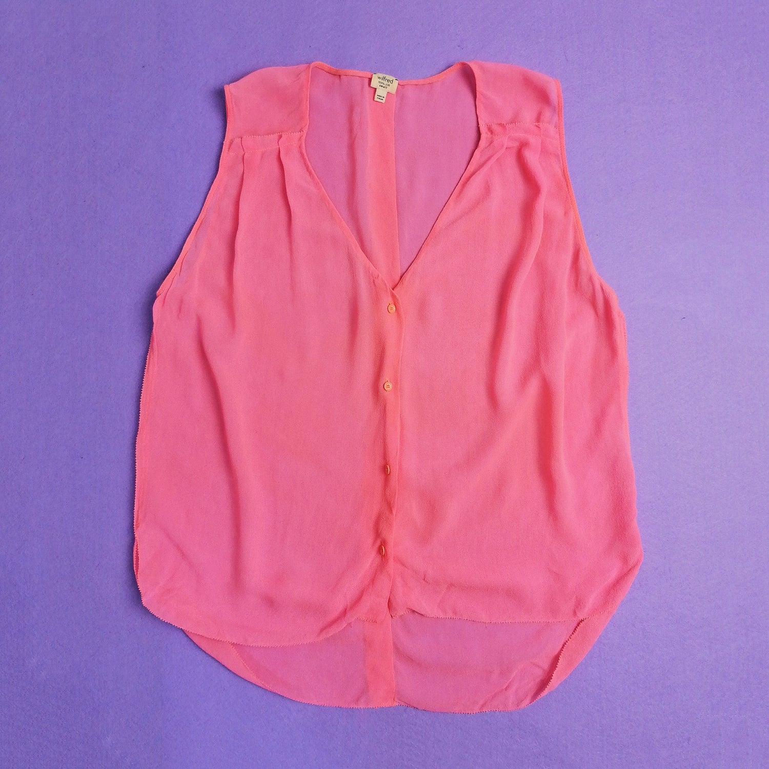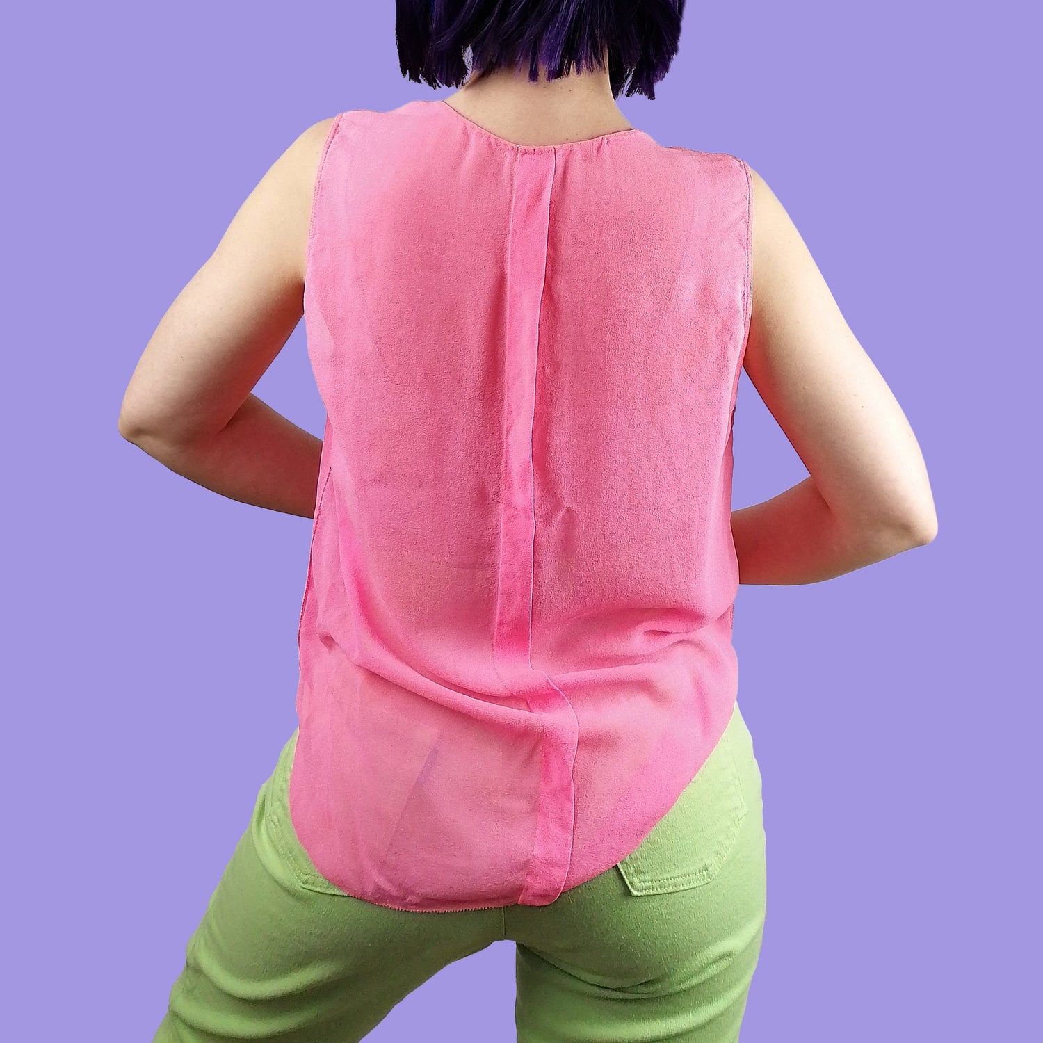 Gorgeous quality silk vest button-up, super breathable, sheer fabric. Beautiful cut, pleat detail on back.