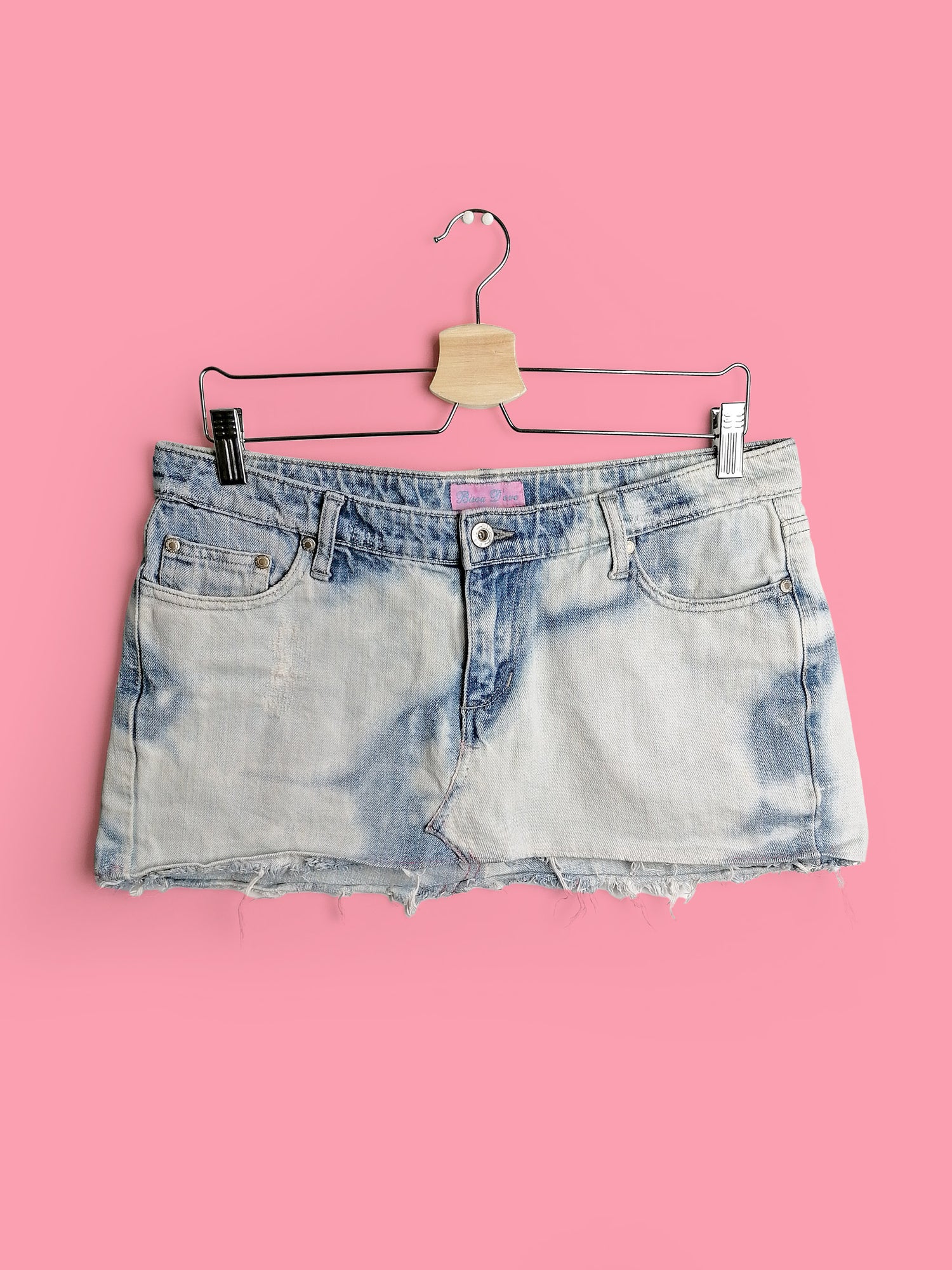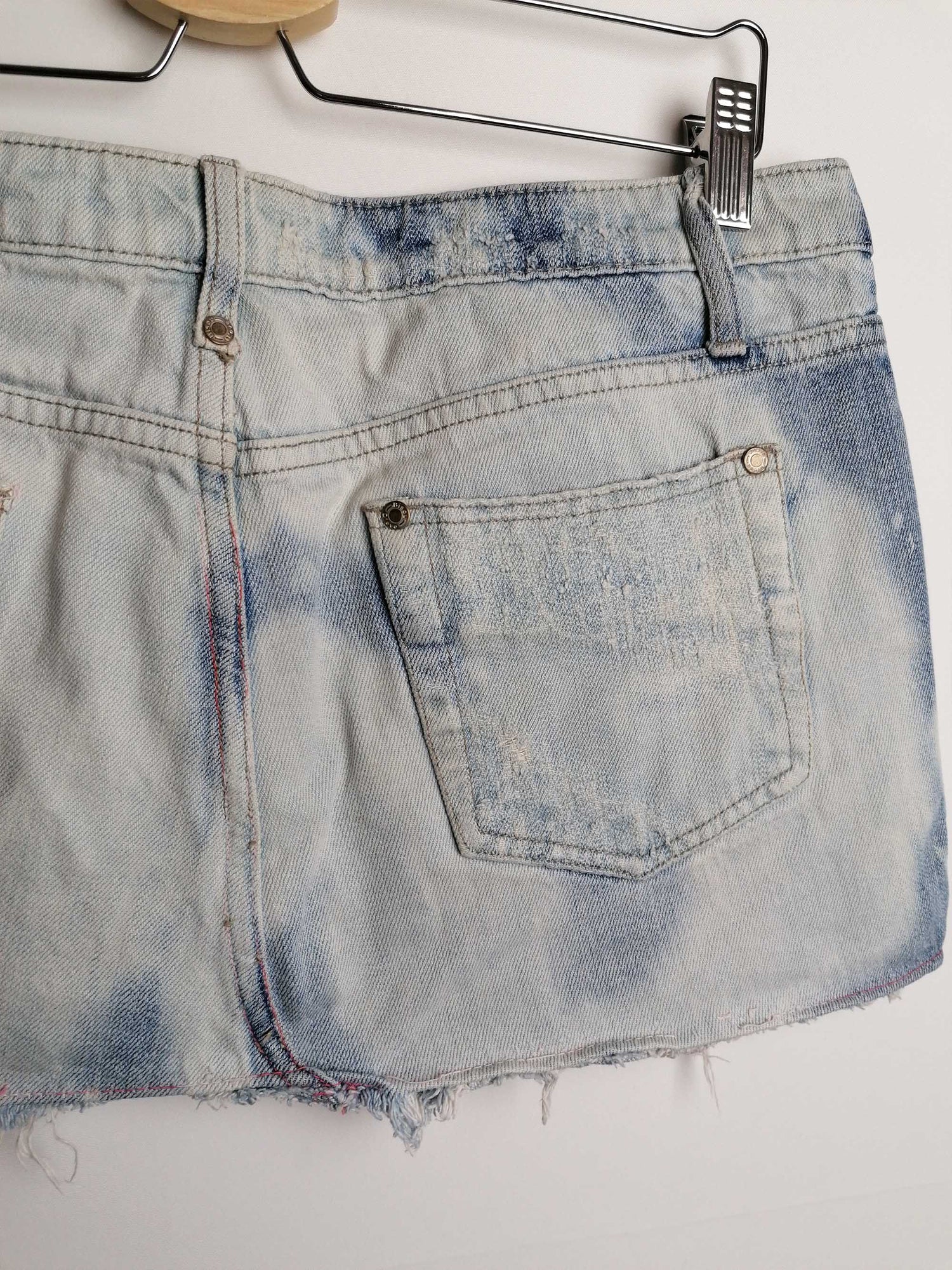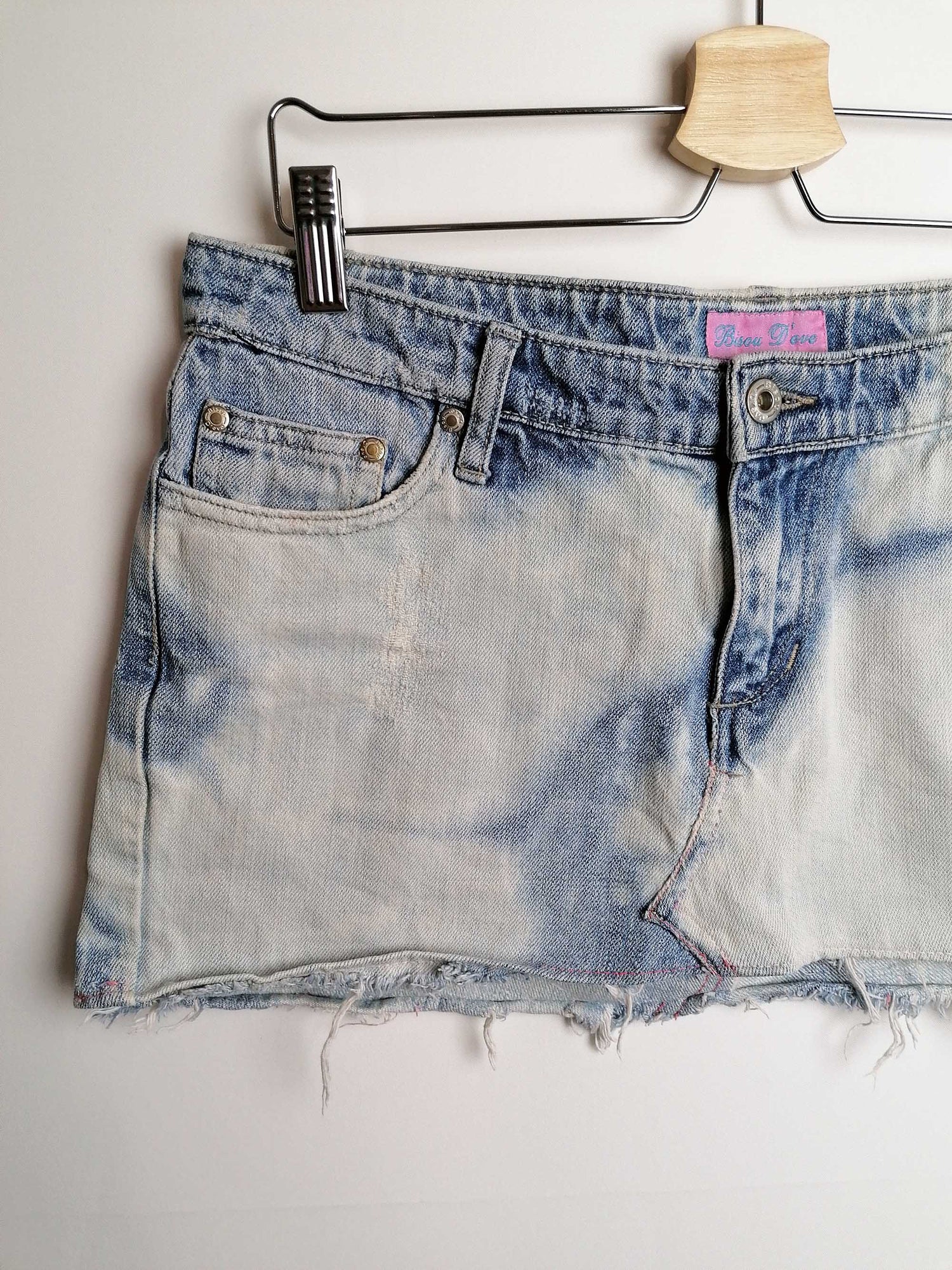 Y2K Denim low waist mini-skirt frayed hem - size M