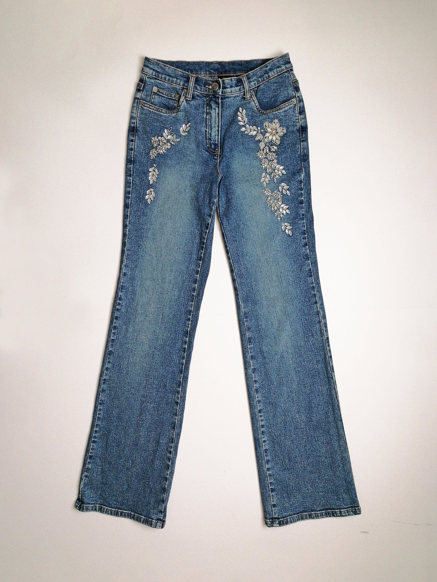 Y2K MADELEINE Embroidery Jeans - size M - 36/UK 10