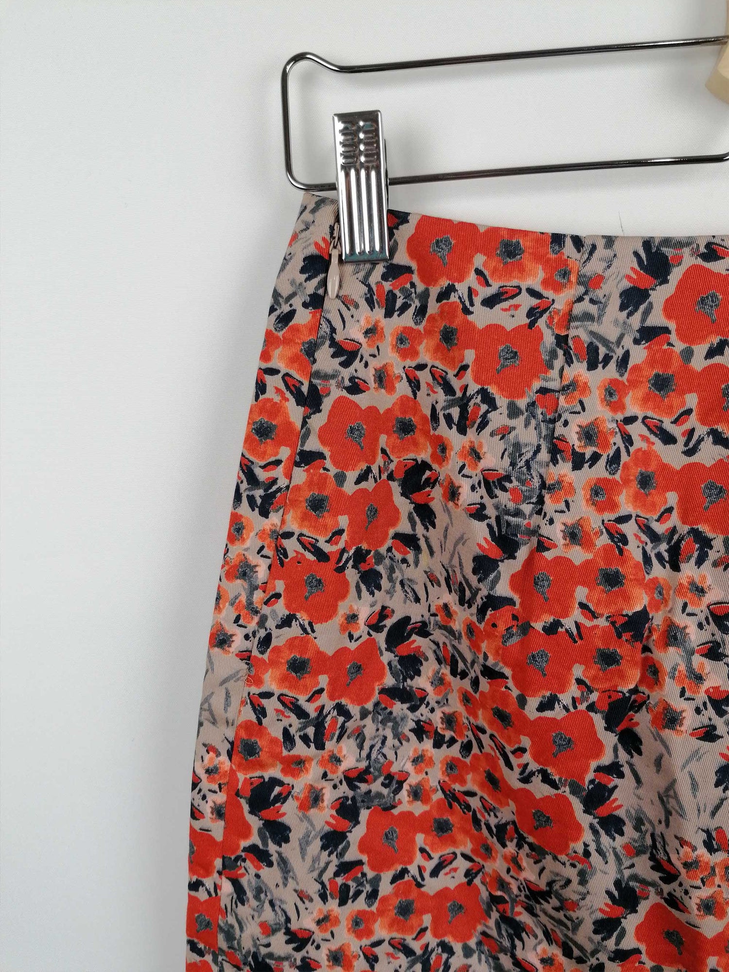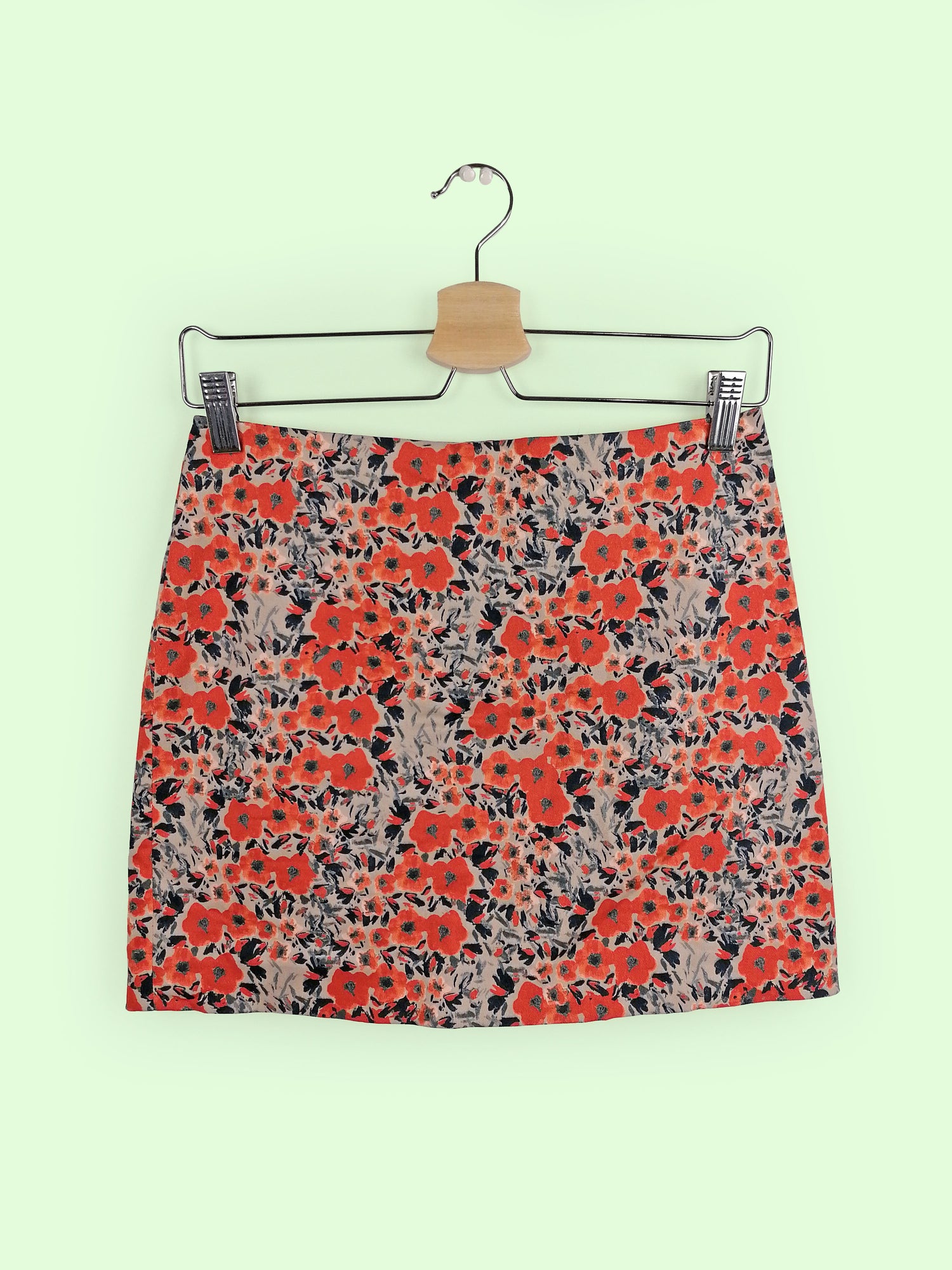 Y2K Mini Skirt Cotton Flowers Pattern Orange - size S