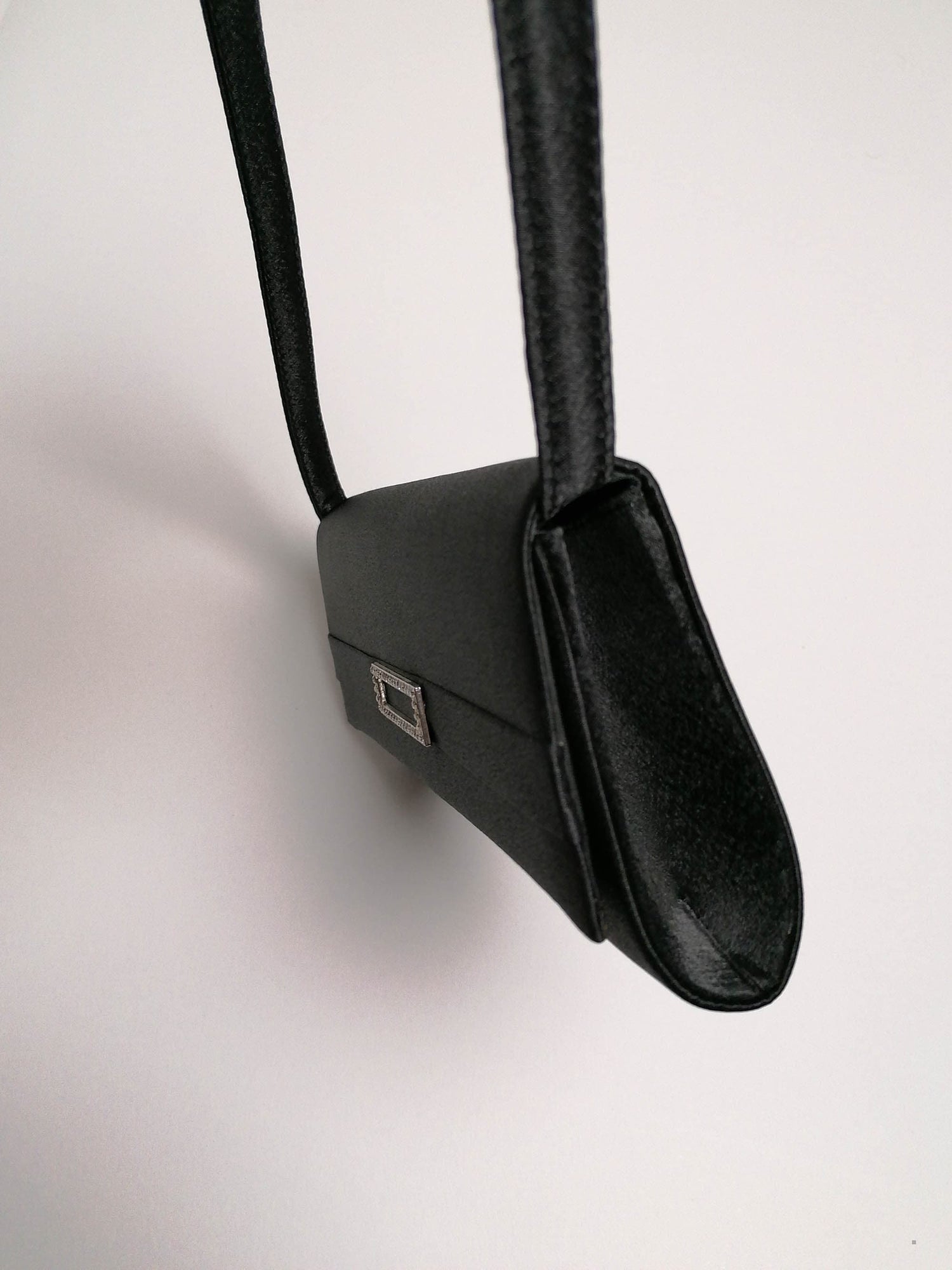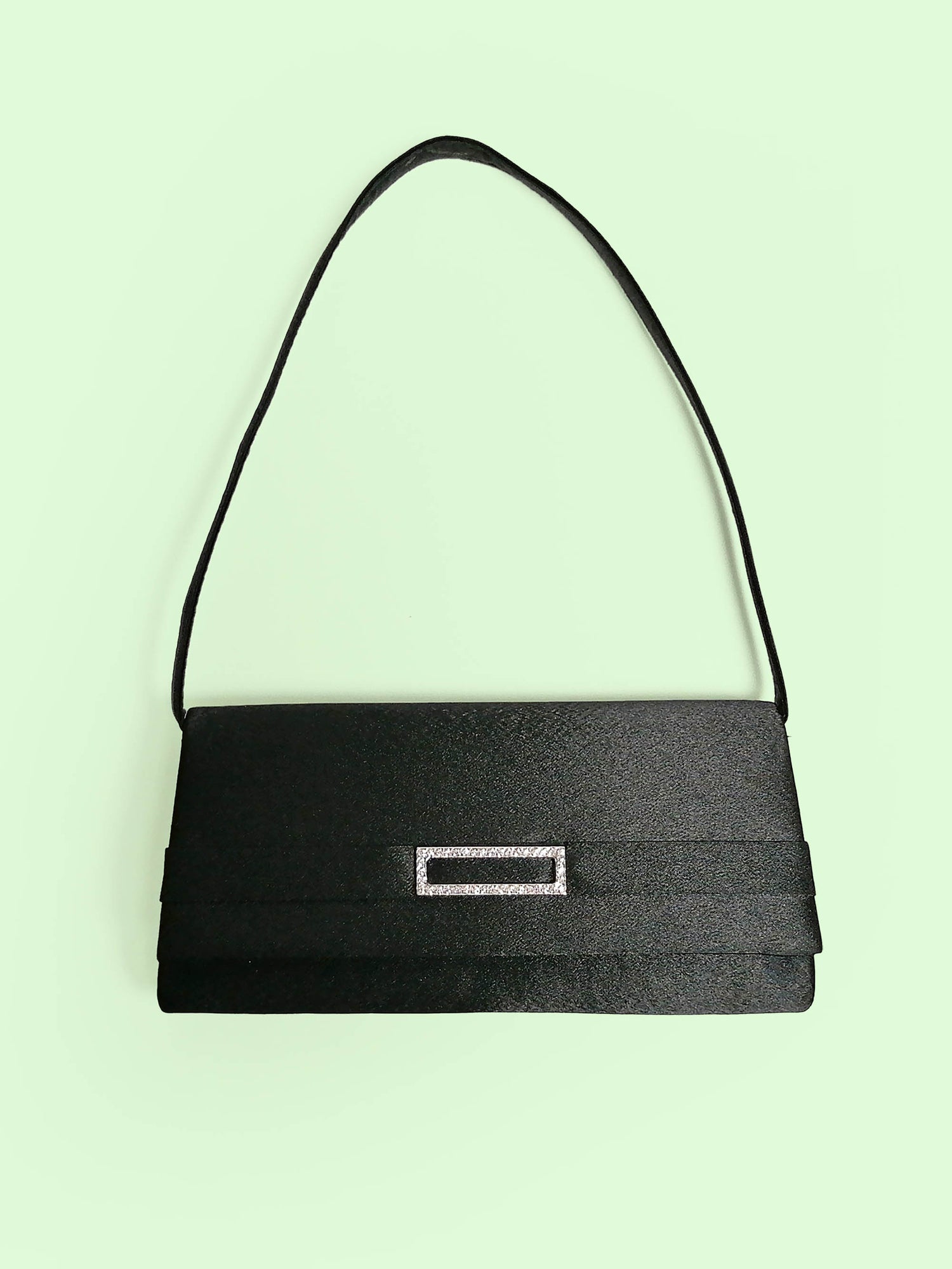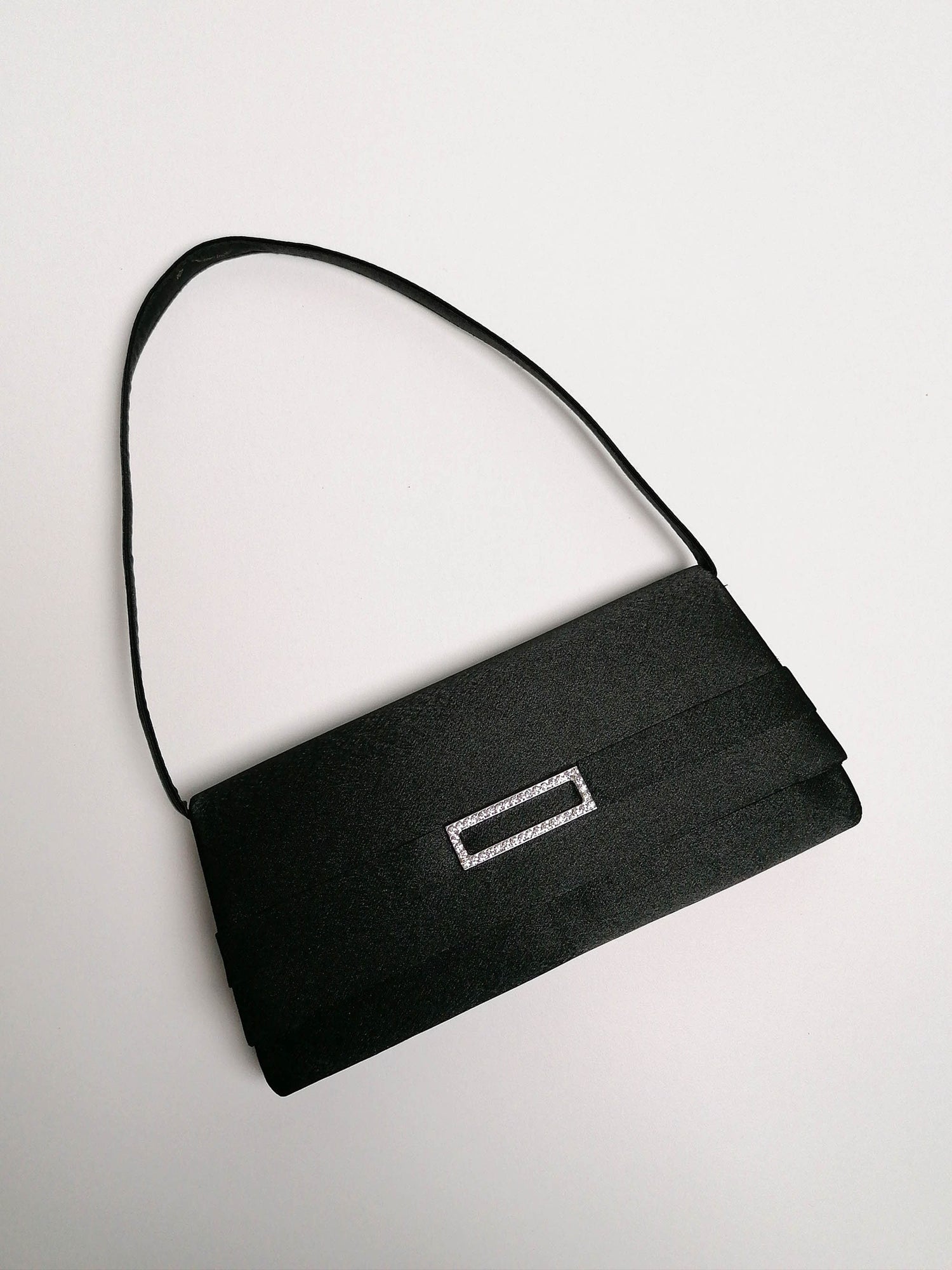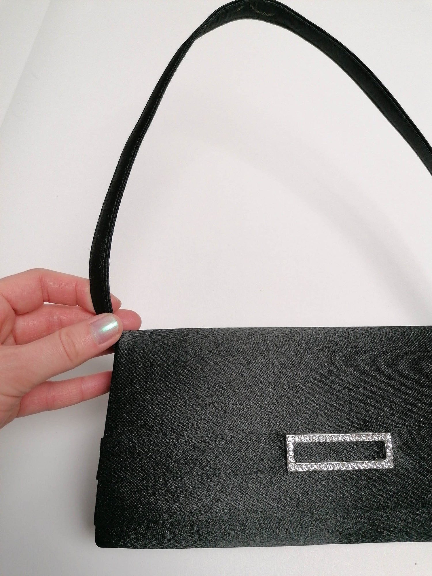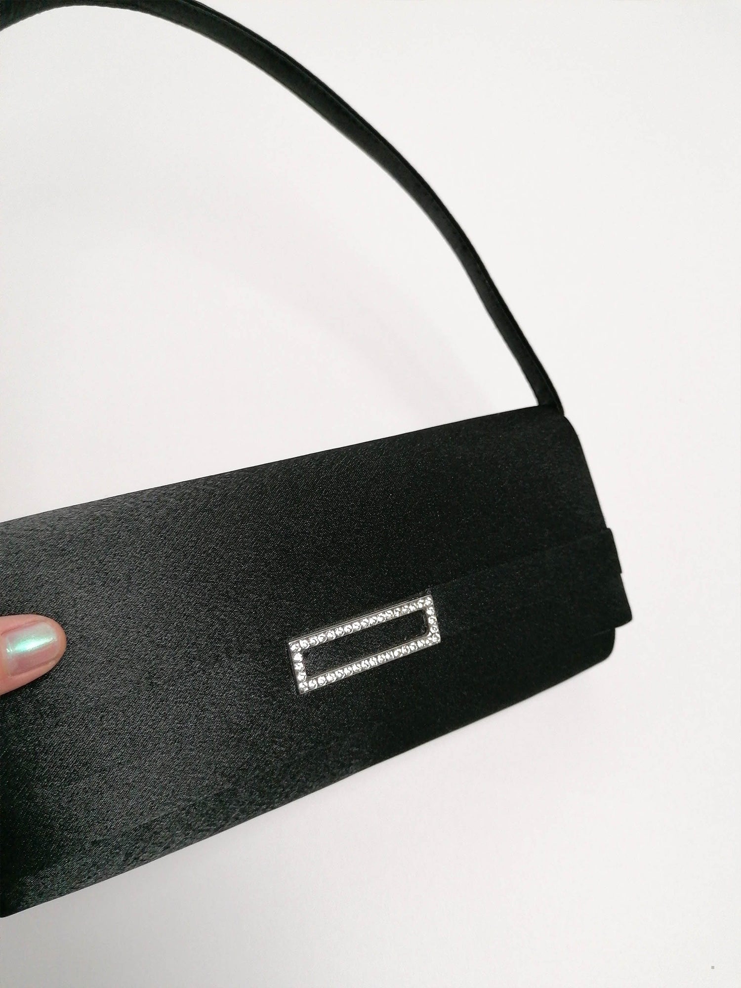 Beautiful Y2K small baguette bag, shiny fabric, sparkly rhinestones detail.