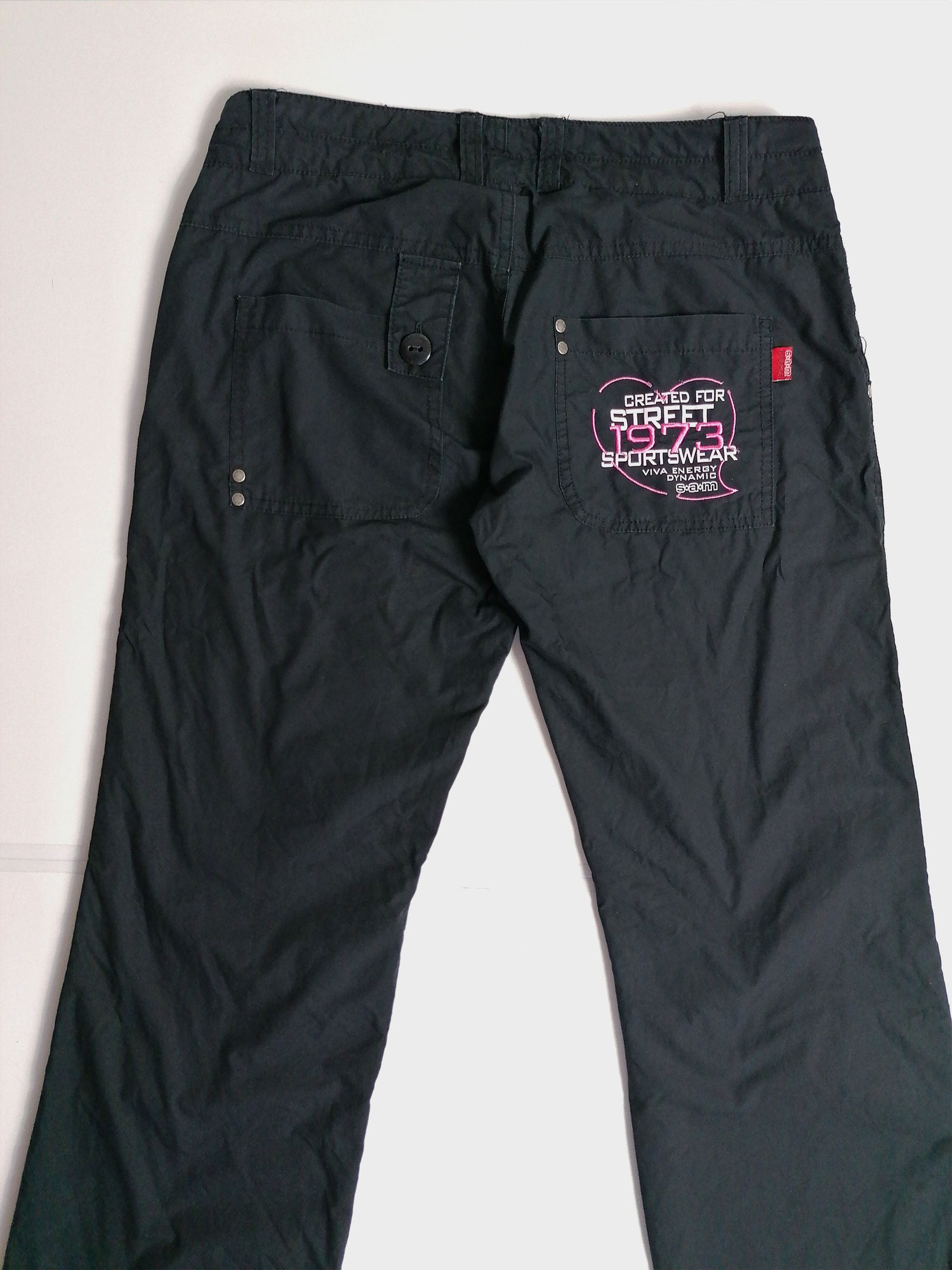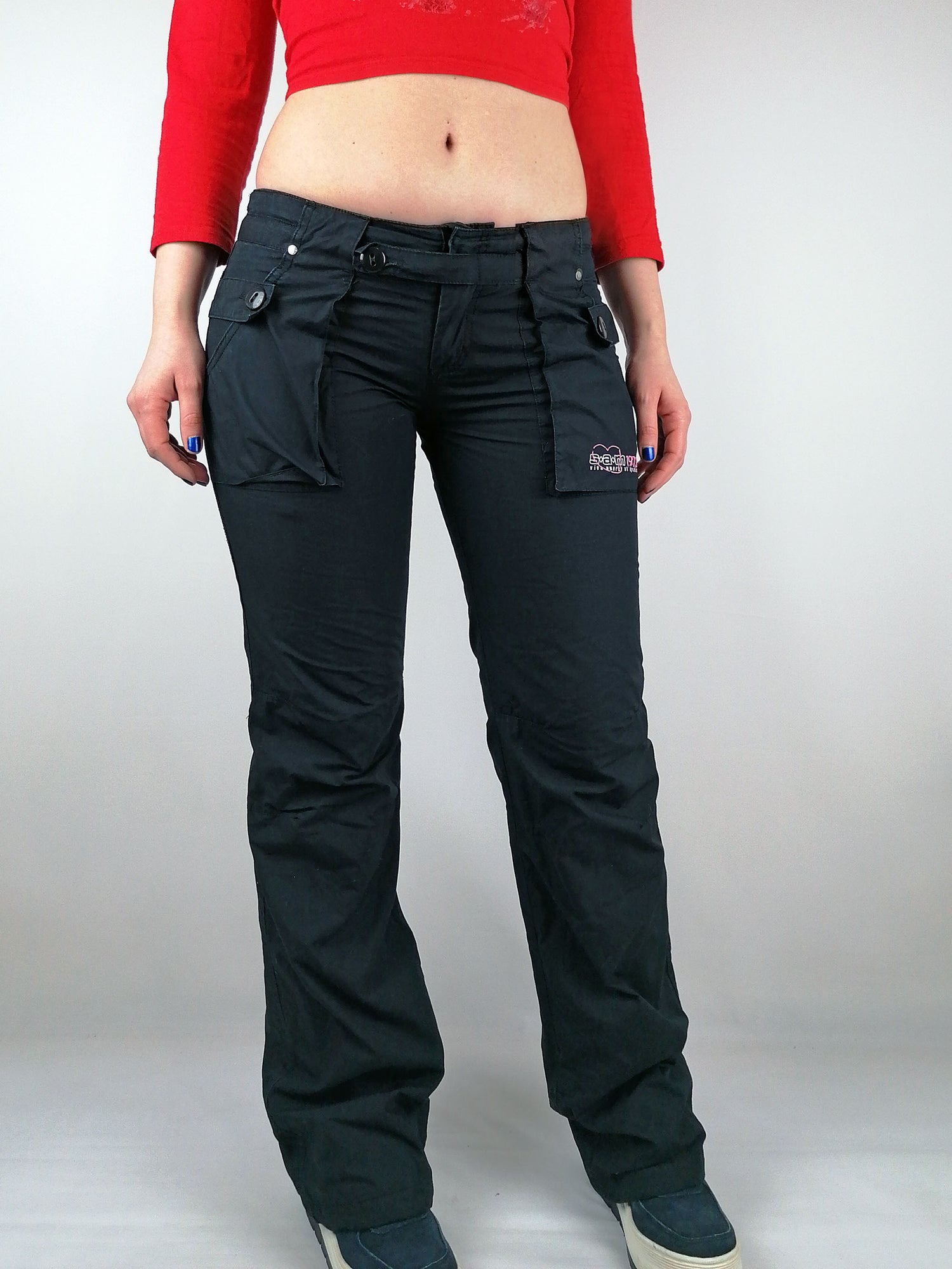 Vintage Y2K ultra low-waist cargo-style pants, slightly flared leg.