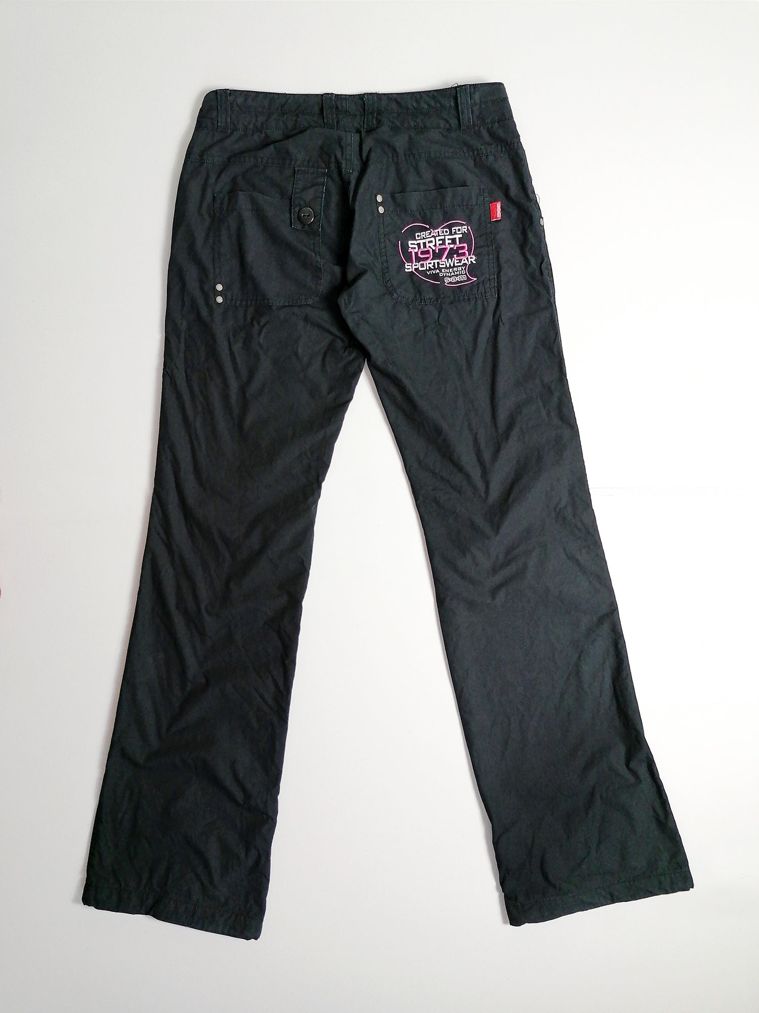 Y2K Soft Shell Low-Waist Flared Black Cargo Pants - size XS