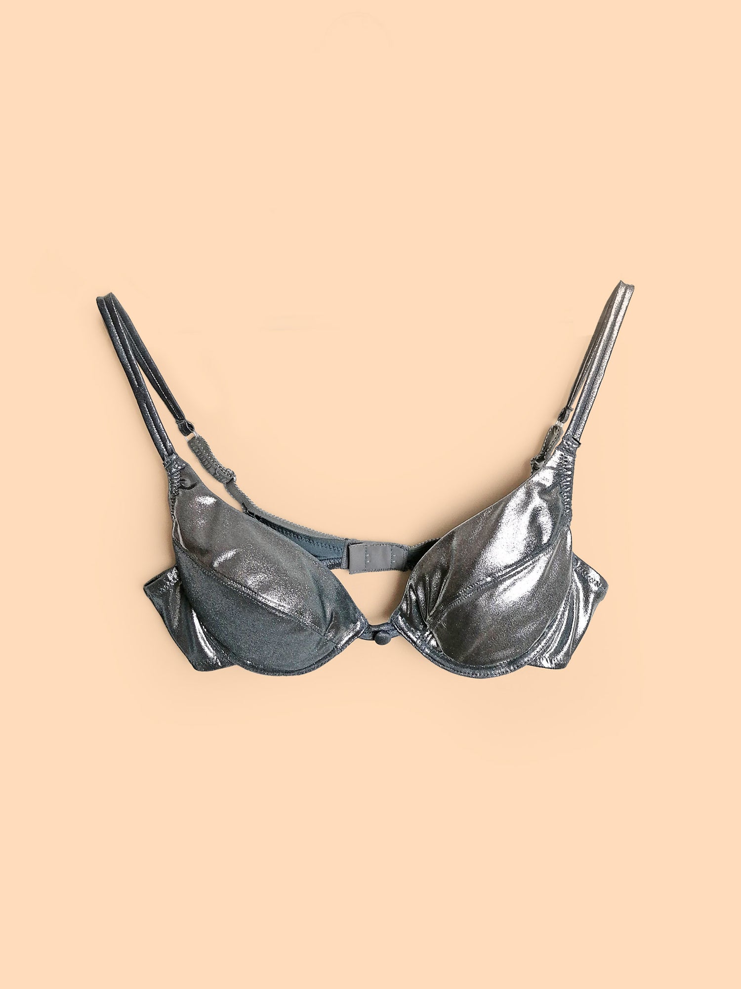 Y2K Vintage Shiny Metallic Bra - size 75 B